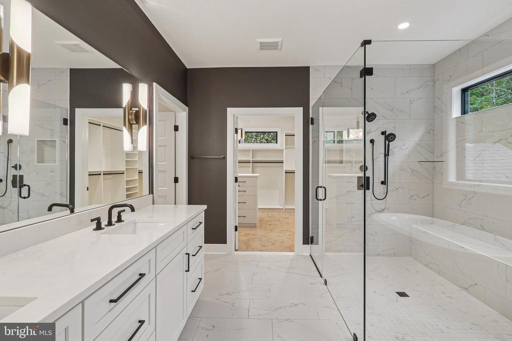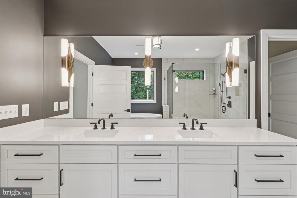 Introducing 5224 Trunnion Trail, an extraordinary new construction estate in the highly desirable Cannon Bluff community of Woodbridge. Built by Mike Garcia Construction, one of Northern Virginia’s top home builders since 1981, this residence sits on over 3.5 private acres and combines timeless craftsmanship with today’s most sought-after luxury amenities. From the moment you arrive, the home’s elegant stone and siding exterior and designer garage doors set the tone for what lies within. Step inside to discover 10-foot ceilings on the main level and 9-foot ceilings upstairs, creating an open and airy feel throughout. The centerpiece family room boasts a dramatic floor-to-ceiling stone fireplace with heat management that allows a TV to be mounted above. The chef’s JennAir kitchen is outfitted with premium appliances, leathered granite counters, and custom cabinetry, seamlessly connecting to the dining and family spaces. An elevator with touchscreen display provides convenient access to all levels, while a dedicated study, mudroom, and thoughtfully designed living areas make daily life effortless. This home features two primary suites — one on the main level and one upstairs — each with spa-like bathrooms including curbless showers, freestanding tubs, and Kohler fixtures in matte black finishes. Additional bedrooms offer Jack & Jill and private en-suites, all with stylish tile and modern finishes. Designed for entertaining, the expansive screened porch includes a built-in Coyote grill, outdoor refrigerator, and stainless-steel hood — ideal for gatherings year-round. Inside, details like faux wood beams, wide-plank laminate flooring, and custom closets elevate the home’s interior design. Smart living comes standard with 400-amp electrical service, Cat6 prewiring, a full security system, and exterior camera wiring. Energy efficiency is ensured with spray foam insulation, dual HVAC zones, and high-performance windows and doors. The oversized garage includes two modern Clopay doors with frosted glass panels and WiFi-enabled openers. Every detail has been carefully considered — from the 3-stop Savaria Eclipse elevator to the customized primary closets, pantry, and laundry rooms. With a tranquil setting, thoughtful design, and unmatched craftsmanship, 5224 Trunnion Trail offers a rare opportunity to own a one-of-a-kind estate in Northern Virginia.