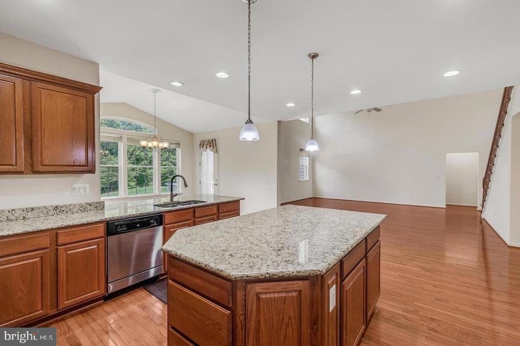 Discover a rare offering—only 3 of 294 homes in this community feature this coveted model with a main-level bedroom suite for easy, stair-free living. With 6 bedrooms, 3.5 baths, and 5,300+ finished sq ft across three levels, this home sits on .45+-acre lot backing to mature trees less than 2 miles to Quantico Marine Base. Inside, you’ll find hardwood floors, a gourmet kitchen with stainless steel appliances, granite countertops, cooktop, and double wall ovens, plus a sun-filled breakfast/sunroom and a dramatic two-story family room! The finished walkout lower level adds a large bedroom, full bath, generous rec room, workshop, storage, and a built-in vanity with plumbing—future wet bar ready. Outdoors, enjoy a fully fenced backyard for ultimate privacy. The main-level bath includes thoughtful accessibility features. Space, comfort, and location come together in a home that’s hard to find—don’t miss it!