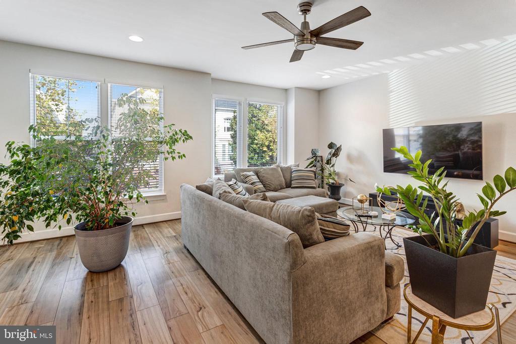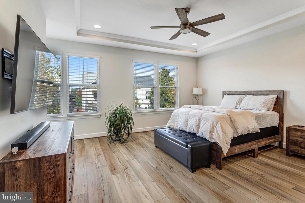 Welcome Home. Enjoy your lovely retreat in the vibrant community of Belmont Bay. 13717 Course View Way is an elevator townhome for the 55 + looking to live in comfort and style! This gorgeously maintained 3-level townhome offers Driftwood Polaris Plus Enhanced Vinyl Plank flooring throughout. The ideal blend of space, comfort, and low maintenance living. Enter the lower level to find a large foyer area, bedroom, full bath and recreation room. Up the Oak hardwood stairs with White painted risers including integrated bullnose and Scotia Molding, discover an open concept kitchen, living and dining room along with custom, cellar blinds with remote in the kitchen and plantation blinds throughout the home. The gourmet kitchen features elegant crown molding wood cabinets with Glendale Pull Satin Nickel hardware, Kohler Bellera Pull down Spray Polished Chrome Faucet, Pendant Lights, Spice drawer cabinet, Stainless Steel Appliances, Wall Oven, built in Microwave, 5 burner cooktop with vent hood outside, dishwasher, French Door Refrigerator, Quartz countertops, huge center island with room for bar chairs for extra eating space or guest, spacious Pantry, custom automatic blinds (with Remote) opening to your spacious terrace with gas hookup. While relaxing on the terrace use your Retractable Awning (with Remote) that automatically retracts in severe weather. Entertain with guests or just relax in the Living Room and Dining area with recessed lighting. The upper level features the primary bedroom with tray ceilings, ceiling fan, Recessed lighting, two walk in closet, and ensuite bathroom offering dual vanity sinks, frameless glass shower door with upgraded floor to ceiling Costar Calacatta Empire tile. Two additional bedrooms offer closets, ceiling fans and a full bath with tub shower combination. Laundry room with newly installed washer and dryer and linen closet. All rear windows offer a special UV Coating from the sun. WI-FI Extender Included. Drive into oversized Double Car Garage, featuring Lift master garage door opener wifi, battery backup and camera with extra storage space. The community offers walking trails, social events, golf and recreational activities designed for today’s active lifestyle. Minutes to VRE, I-95, RT 1, shopping, dining and entertainment.