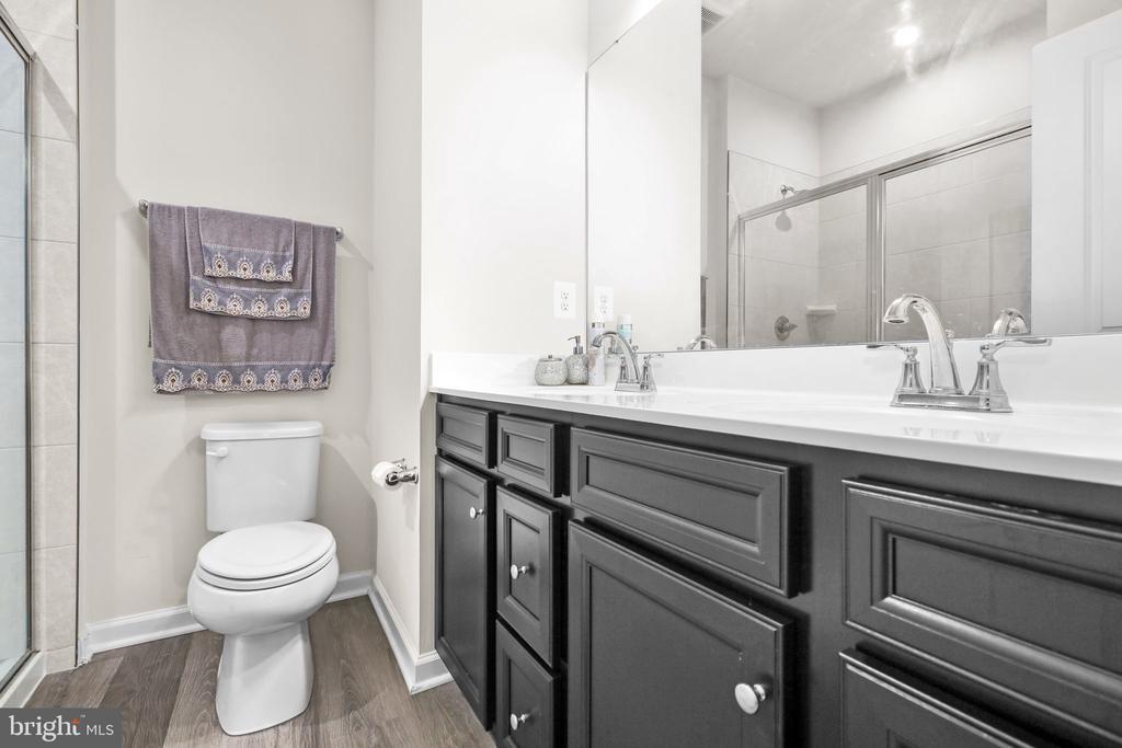 Modern townhome bliss that’s a stone’s throw from Quantico and so much more? It’s all right here at 18353 Reaper Hill Court! Constructed in 2022 and showing like-new, this three-level townhome includes three bedrooms, 3.5 baths and more than 1,700 square feet of living space. The residence is nestled in the Eagle Row community, which includes an intimate collection of approximately 40 residences, a playground, small park and dog park. Zooming in on the plot here, the residence is tucked in a quaint row of four townhomes. Front yard landscaping is done by the HOA – low-maintenance heaven, folks! For parking, there is a concrete driveway and one-car garage. And, for additional parking, there is ample street parking, visitor parking and, for a fee, permanent spots are purchasable. For quieter moments and escapes, the back yard space includes a composite deck. The townhome follows Ryan Homes’ Auburn model and includes lovely bricking, dark gray siding and darker gray shutters. Heading inside and on the lower level, you’ll find a bedroom with an attached full bath, complete with a single sink and tub/shower combo. Note the dark grey luxury vinyl plank flooring throughout this level (and the upper level, too)! Upstairs and to the main level, you’ll find a living room space with a massive window, ceiling fan and, on the wall, a hook-up for a primo TV set-up. The natural light is stunning! Additional highlights include a half bath, an eat-in dining space with deck access and the kitchen. The kitchen includes espresso cabinets, granite countertops, an island, GE stainless steel appliances and a big sink. Up a set of hardwood stairs, you’re greeted with the primarily carpeted upper level. This level includes two bedrooms and two full baths. The primary suite includes a big window, double-doored closet and ensuite bath with a stand-up shower, two sinks and vinyl flooring. The additional full bath upstairs has a tub/shower combo and single sink. Of the additional bedrooms, note one that has attic access for bonus storage. For laundry, there’s a closet upstairs with stackable machinery! For added comfort, the home is equipped with a Nest thermostat, air purifier/humidifier and the HVAC has been seasonally maintained. Quietly nestled off US-1, you’re within minutes of Quantico (and its VRE station), I-95 access (Triangle) and a number of grocery, shopping and dining destinations! The home is a perfect mid-point between D.C. and Fredericksburg, each within 30 miles. Seamless Quantico, Fredericksburg and D.C. commutes await with this stellar location... let alone all the memories to be made within its charming confines! Book your showing of 18353 Reaper Hill Court today!