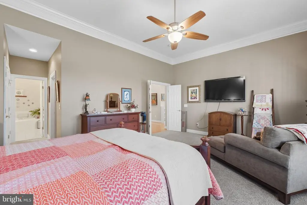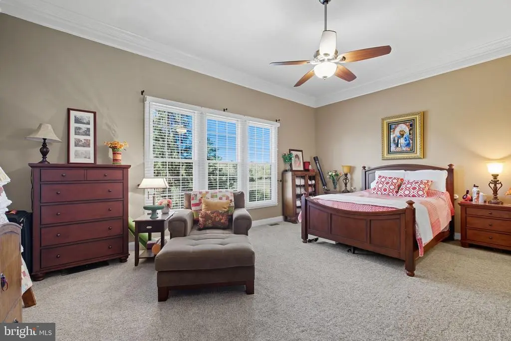 Ceiling Fan(s), Primary Bath(s), Bathroom - Tub Shower, Bathroom - Walk-In Shower, Built-Ins, Carpet, Crown Moldings, Entry Level Bedroom, Walk-in Closet(s), Window Treatments, Wood Floors