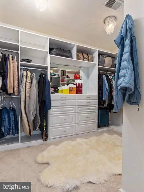 Additional Stairway, Attic, Bar, Bathroom - Soaking Tub, Bathroom - Tub Shower, Bathroom - Walk-In Shower, Built-Ins, Carpet, Ceiling Fan(s), Chair Railings, Crown Moldings, Formal/Separate Dining Room, Pantry, Primary Bath(s), Recessed Lighting, Upgraded Countertops, Wainscotting, Walk-in Closet(s), Wood Floors