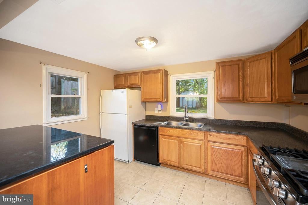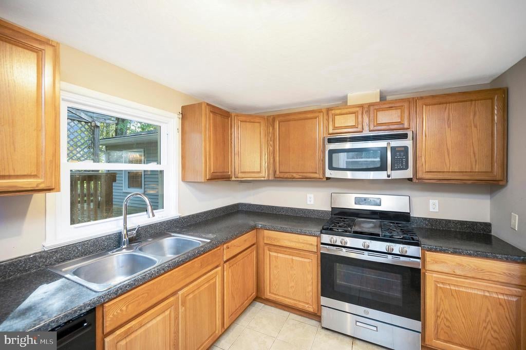 Beautiful home with sunroom extension! Kitchen with granite counter tops. 4 Bedrooms with ceiling fans. Bathrooms with ceramic tile. Hardwood floors in the dining room & entire upper level! New roof, windows, shutters and gutters. New kitchen plumbing and renovated lower bathroom and plumbing. New hot water heater. New carpet. New electric washer and dryer. Fantastic lot with deck, patio & shed. Fenced yard backs to trees. The home is close to lots of shopping and bus lines.