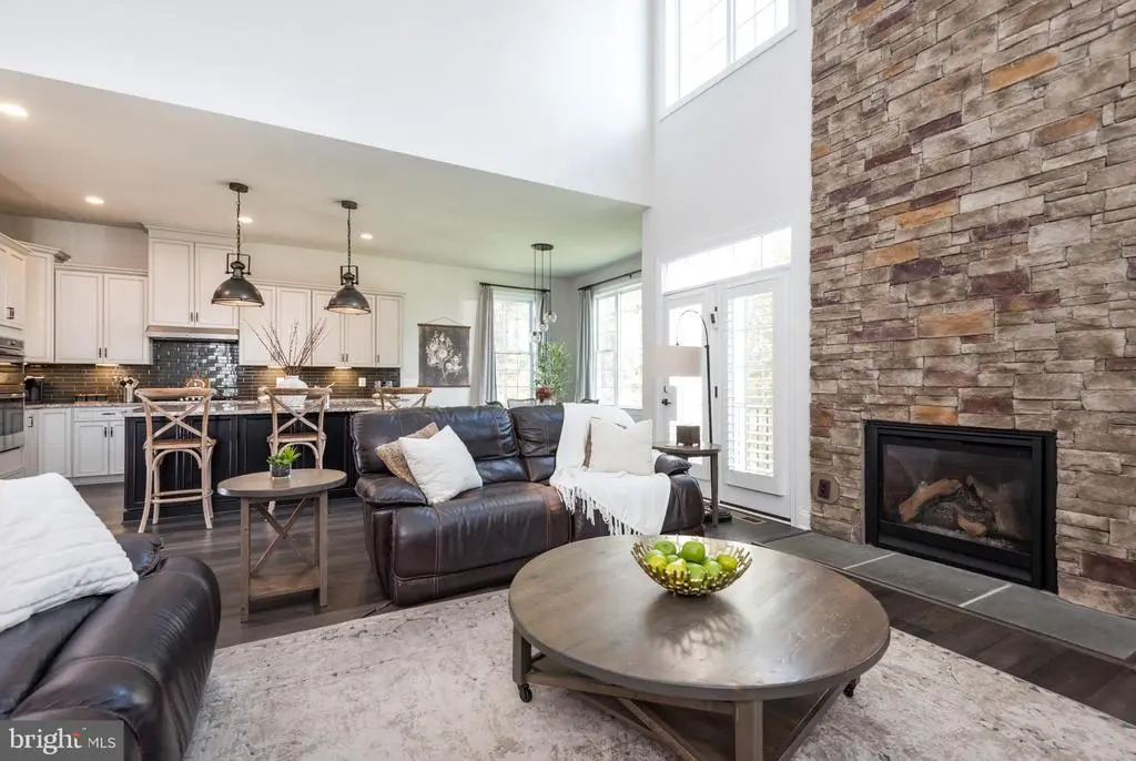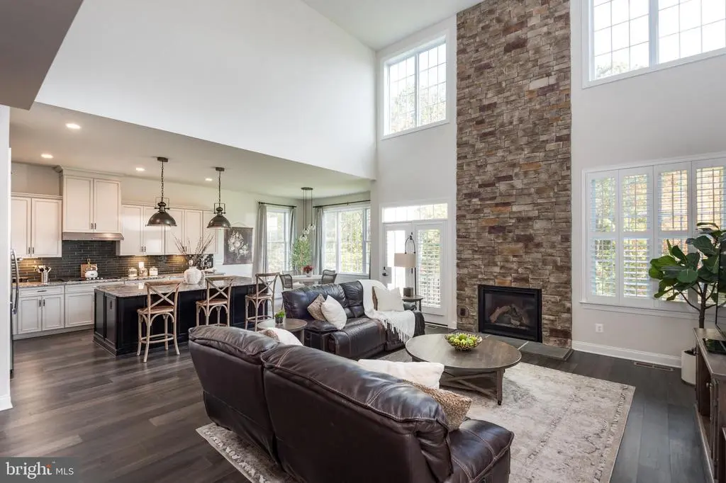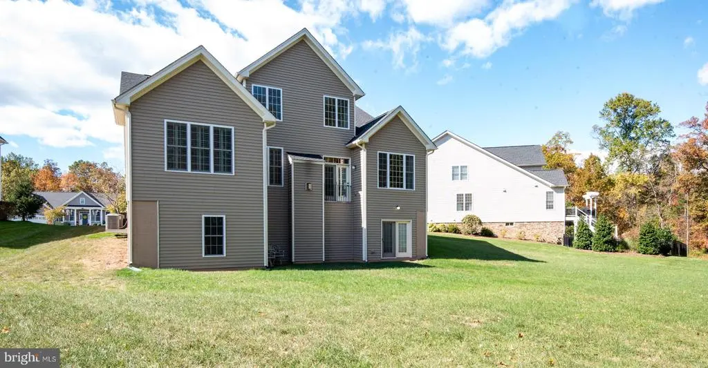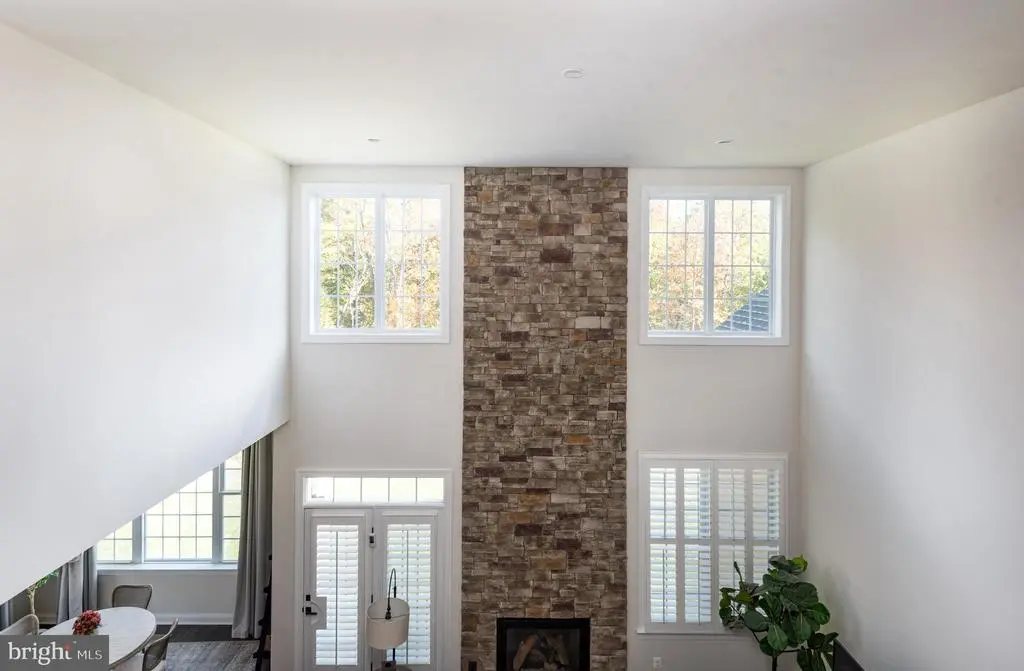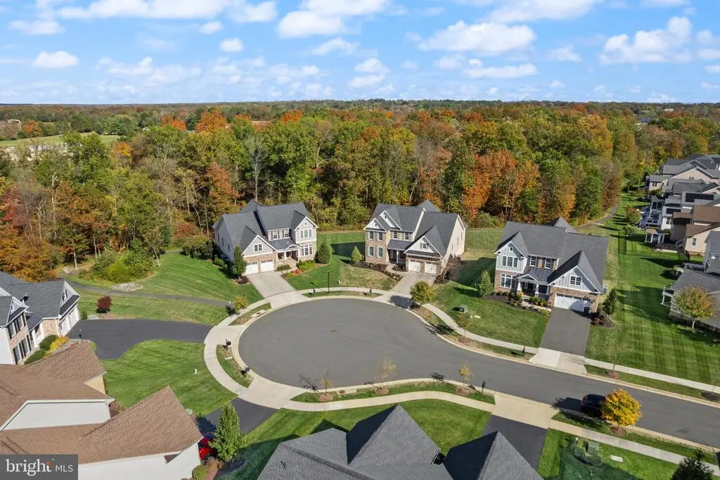 Unrivaled Lot in the Villas – Premium Cul-de-Sac Location with Scenic Views & Room to Breathe! Absolutely stunning and move-in ready Bridleridge model offering luxury, privacy, and modern finishes at every turn! Enjoy over 6,000 sq ft of elegant living space on a premium large lot backing to trees and walking paths. Curb appeal abounds with a stone-accented exterior, a welcoming covered porch, an upgraded paver driveway, and an expanded garage offering extra space for vehicles and storage. Step inside to an open, light-filled floor plan adorned with designer light fixtures and plantation shutters throughout and boasting 10+ ft ceilings throughout the main level. The two-story expanded family room features a jaw-dropping stone fireplace and walls of windows that fill the space with natural light. The chef’s kitchen is a dream come true — showcasing a huge island, dual-tone cabinetry, sleek countertops, top-of-the-line appliances, and a bright breakfast area that opens seamlessly to the family room. A formal dining room with tray ceiling provides the perfect setting for entertaining. The grand main-level primary suite impresses with a sitting room extension, two walk-in closets, and a luxurious spa-like bath with an expanded shower. The main level also includes a second bedroom with walk-in closet and a dedicated home office — ideal for today’s lifestyle. Upstairs, you’ll find two additional bedrooms and a versatile loft, offering flexible living options for guests, hobbies, or play. The finished walk-out lower level is equally impressive, featuring 9-ft ceilings, a full bath, a spacious recreation room, wet bar rough-in, and an unfinished area with a full-size window — perfectly suited for a future fifth bedroom or home gym. The flat, usable backyard backs to mature trees and walking paths, creating a serene outdoor retreat and privacy rarely found in Dominion Valley.