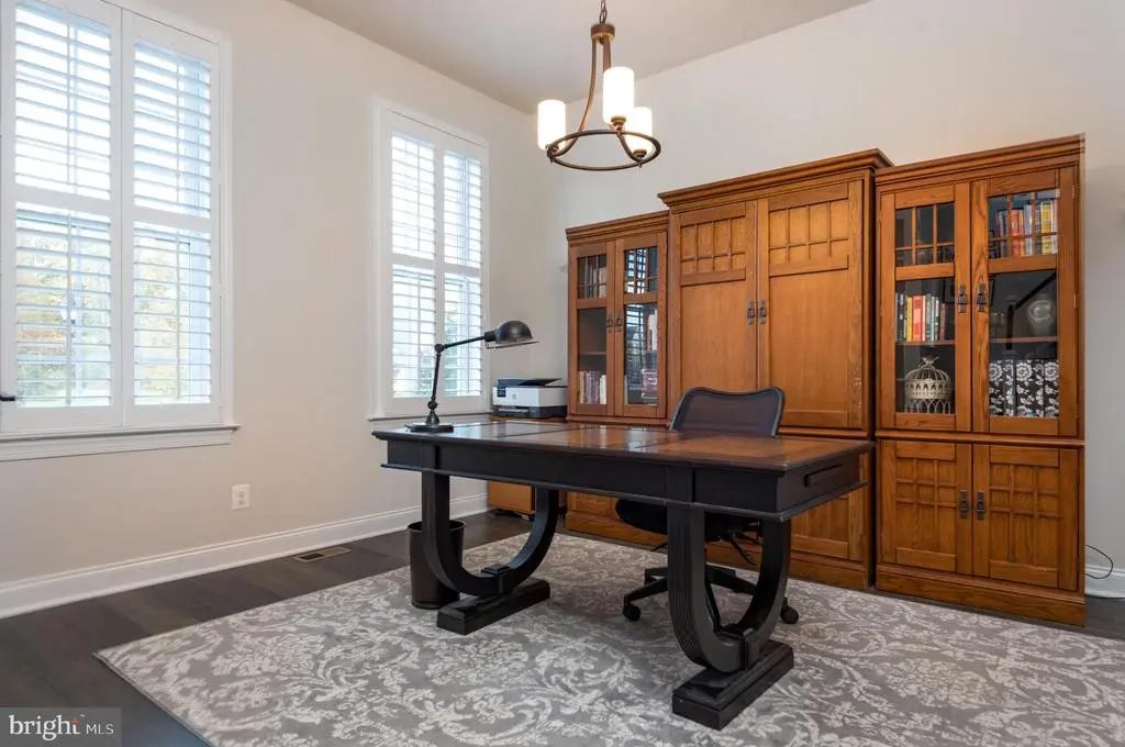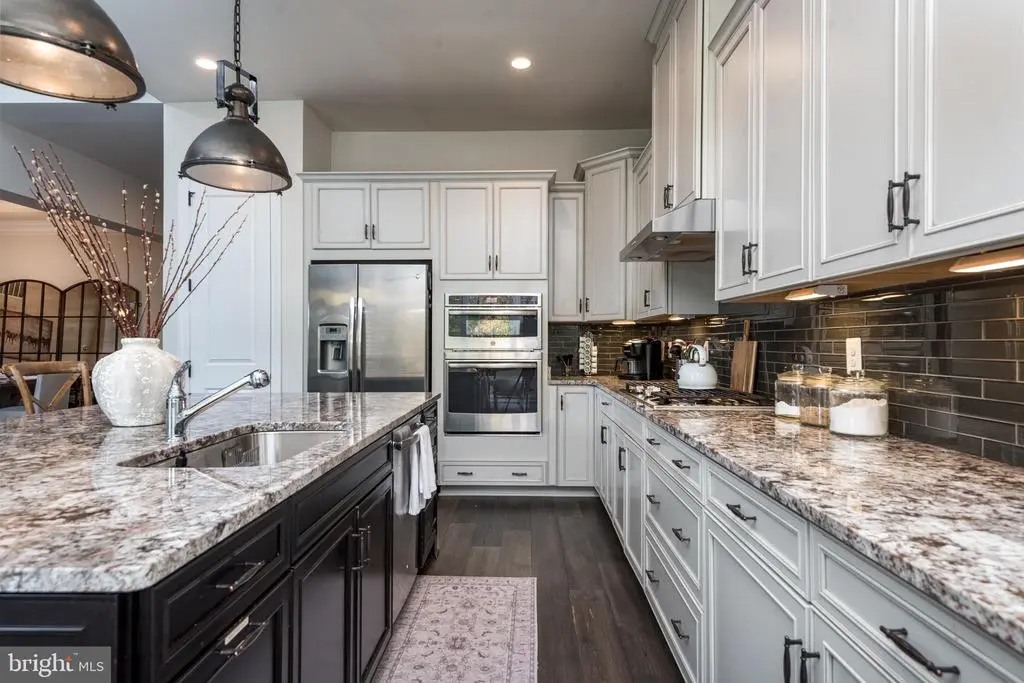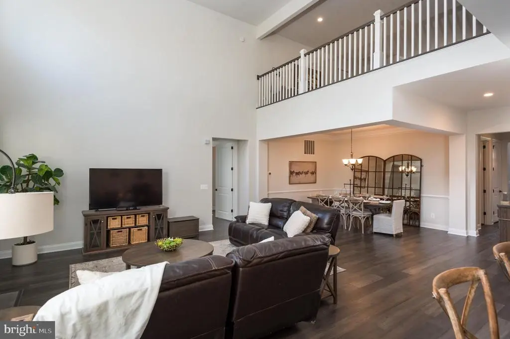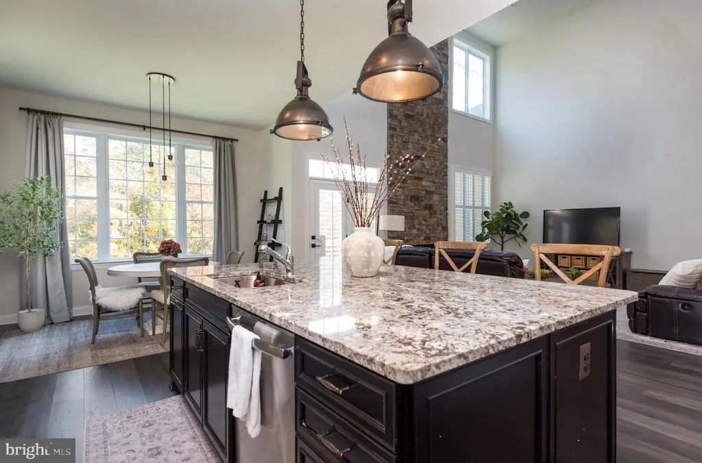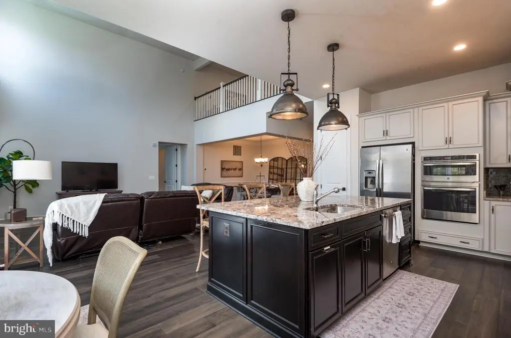 Unrivaled Lot in the Villas – Premium Cul-de-Sac Location with Scenic Views & Room to Breathe! Absolutely stunning and move-in ready Bridleridge model offering luxury, privacy, and modern finishes at every turn! Enjoy over 6,000 sq ft of elegant living space on a premium large lot backing to trees and walking paths. Curb appeal abounds with a stone-accented exterior, a welcoming covered porch, an upgraded paver driveway, and an expanded garage offering extra space for vehicles and storage. Step inside to an open, light-filled floor plan adorned with designer light fixtures and plantation shutters throughout and boasting 10+ ft ceilings throughout the main level. The two-story expanded family room features a jaw-dropping stone fireplace and walls of windows that fill the space with natural light. The chef’s kitchen is a dream come true — showcasing a huge island, dual-tone cabinetry, sleek countertops, top-of-the-line appliances, and a bright breakfast area that opens seamlessly to the family room. A formal dining room with tray ceiling provides the perfect setting for entertaining. The grand main-level primary suite impresses with a sitting room extension, two walk-in closets, and a luxurious spa-like bath with an expanded shower. The main level also includes a second bedroom with walk-in closet and a dedicated home office — ideal for today’s lifestyle. Upstairs, you’ll find two additional bedrooms and a versatile loft, offering flexible living options for guests, hobbies, or play. The finished walk-out lower level is equally impressive, featuring 9-ft ceilings, a full bath, a spacious recreation room, wet bar rough-in, and an unfinished area with a full-size window — perfectly suited for a future fifth bedroom or home gym. The flat, usable backyard backs to mature trees and walking paths, creating a serene outdoor retreat and privacy rarely found in Dominion Valley.