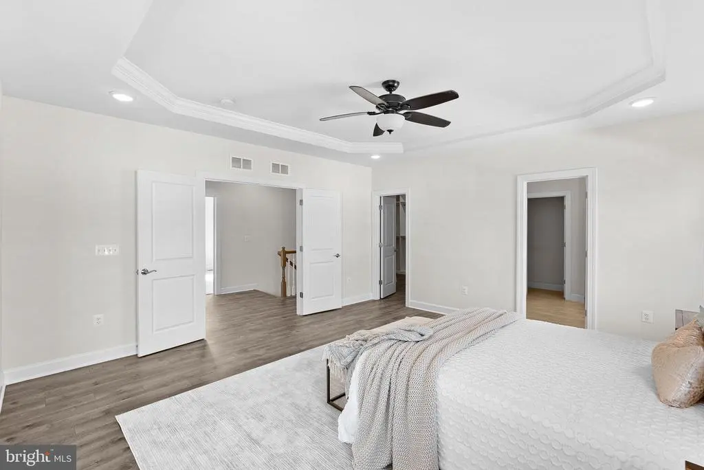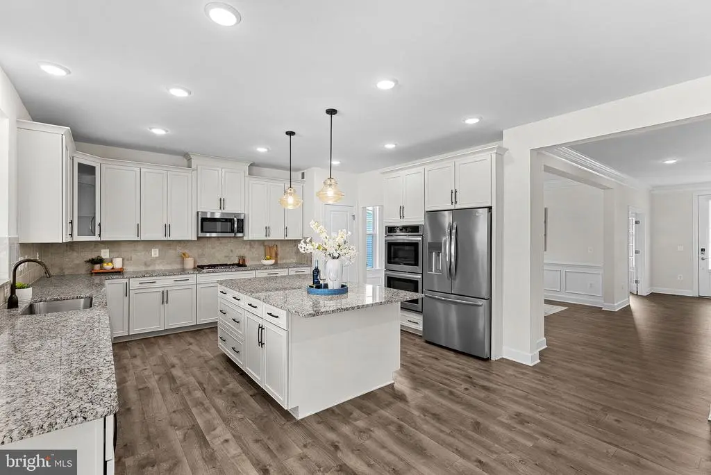 Welcome to 8682 Belle Grove Way — a beautifully curated home where thoughtful upgrades, refined finishes, and generous living spaces come together effortlessly. This 5-bedroom, 4.5-bath residence opens with a formal dining room enriched with crown molding, wainscoting, and a statement chandelier, along with a private office framed by French doors. The gourmet kitchen impresses with expansive counters, abundant cabinetry, double ovens, a gas range, upgraded island lighting, a French-door refrigerator, and a walk-in pantry, all flowing into a bright, open living area. The upper level hosts a standout primary suite with tray ceilings, a spa-inspired ensuite bath, and custom walk-in closets with upgraded built-ins. The finished lower level adds flexibility with a bedroom, full bath, theater/entertainment room, rough-in for a future bar, and walk-up access to the fenced backyard. Outdoor spaces include a deck and patio ideal for everyday enjoyment. Notable enhancements include window treatments throughout, ceiling fans in all bedrooms and the living room, two garage openers with a myQ system that conveys, a Tesla charger, a new refrigerator, an air scraper, VU air sanitizer, and integrated dehumidifiers within the AC system. Set in a convenient Manassas location, the home offers easy access to shopping, dining, parks, major commuter routes, the Prince William Parkway, VRE Manassas Station, historic Old Town Manassas, and local arts and recreation, creating a well-rounded living experience with everyday ease.