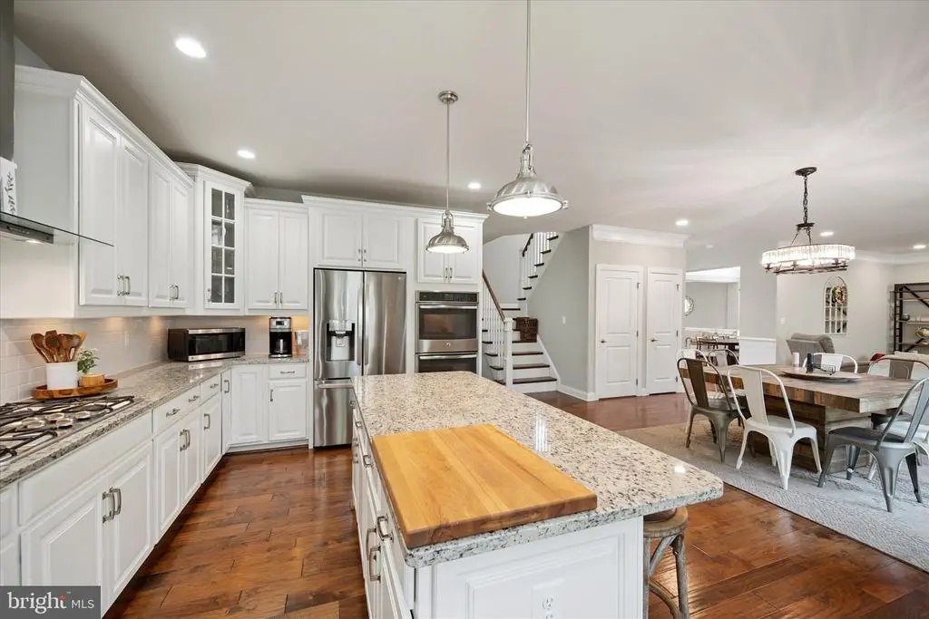 OPEN SATURDAY, 11/15 1:00-3:00 - Best value in Dominion Valley Country Club — this home offers the lowest price per square foot of all similar detached listings in DVCC. Beautifully built in 2016, this Craftsman-style home delivers approximately 5,180 finished square feet across three levels with 4 bedrooms, 4.5 baths, and a bright, open layout inside the community’s gated entrance. A covered front porch with stone accents welcomes you into a two-story foyer featuring hardwood floors, crown molding, and wainscoting. Formal living and dining rooms flow into the expansive gourmet kitchen, complete with white cabinetry, granite countertops, subway tile backsplash, stainless steel appliances, gas cooktop with vent hood, double wall ovens, a large island with seating, pendant lighting, and recessed lighting. The breakfast area overlooks the fenced backyard, and a sliding glass door opens to the stone patio for effortless indoor-outdoor living. Upstairs, the primary suite offers a sitting room, tray ceiling, new carpet, a large walk-in closet, and a luxurious bath with a soaking tub and frameless-glass shower. Bedrooms 2 and 3 share a Jack-and-Jill bathroom, while Bedroom 4 features vaulted ceilings, a walk-in closet, and its own private full bath. The finished walk-up basement adds tremendous versatility with a large recreation/media space, full bath, storage, and a 5th bedroom (NTC). Outdoor living shines with a fully fenced backyard, landscaped beds, and an expansive stone patio. A two-car front-entry garage and driveway provide ample parking. Residents enjoy resort-style amenities including an on-site golf course (membership available), indoor/outdoor pools, tennis and basketball courts, fitness center, tot lots/playgrounds, miles of jogging/biking trails, and gated entries. HOA services cover common area maintenance, recreational facility access, security, snow removal, and trash pickup. Everyday conveniences are minutes away—approximately 1.0 mile to Dominion Valley Market Square (Giant, Starbucks, dining, and services). Nearby recreation includes James S. Long Regional Park (≈1.2 mi) with sports fields, playgrounds, equestrian facilities, and wooded trails. Zoned for Samuel L. Gravely Jr. Elementary (≈0.4 mi), Ronald W. Reagan Middle (≈1.4 mi), and Battlefield High School (≈0.9 mi). Commuter routes, including US-15 and I-66, are easily accessible.