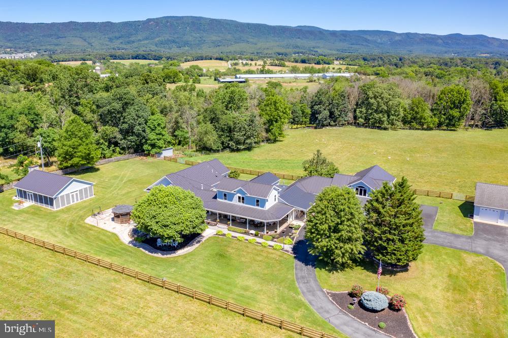 VIEWS & BEAUTY ABOUND! Luxurious comfort awaits on this spectacular farm in a beautiful location near Skyline Drive, Shenandoah National Park, Massanutten Resort, countless wineries and breweries, minutes from Harrisonburg! Extraordinary customization and attention to detail throughout this gorgeous home make this property truly exceptional, including quad-zoned HVAC, 4 separate fenced paddocks (with alleyway), outdoor storage sheds, a detached garage (with a lift and workbench), a beautiful horse barn, immaculate landscaping, gutter guards, & 30 amp RV outlet. The MASTER WING offers a wet bar, gas see-through fireplace, gas fireplace in bathroom, 2 large mounted TVs, 2 walk in closets, sauna, Jacuzzi, remarkable walk-in shower and exercise room. HORSE STABLE boasts 5 stalls, conditioned office, full bath, tack room, feed room, wash bay, shavings bay, hay storage in loft, fans, and music for the equine residents. The PAVILION is perfect for entertaining with full kitchen, stone wood-burning fireplace. So many possibilities here! Not only your perfect home and farm, but also incredible opportunity for a venue or short term rentals. This jaw-dropping home has it all! A more comprehensive list of special features has been uploaded in Bright.