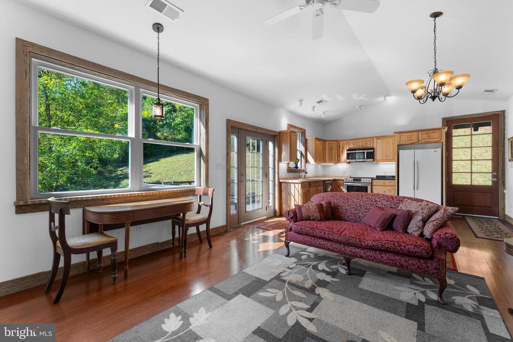 Do you dream of room to roam in the rolling foothills of Rappahannock County? Fox Hill is a dream come true in the heart of Virginia's Piedmont. Verdant pastures undulate and meet lush forest on the flanks of Mason Mountain. Take in the ever-present views of Piedmont hills, Blue Ridge Mountains and your own private, hidden oasis. This sprawling property is 75 acres in two tax map parcels. * Fox Hill prominently features a stunning 1800s timber frame bank barn, which was rebuilt on site in 2018. Built on a new, poured concrete foundation, the lower floor is a well-appointed horse stable with 8 stalls, wash stall, feed room, and a sunny tack room with a full bath and kitchenette. * The upper floor has a very comfortable 1-bedroom apartment at its southern end. It is thoughtfully designed with high ceilings and oversized windows to let in the light. There is a bath with heated slate floors, a generous walk-in closet, and details like antique barn wood trim. The structure has Hardiplank siding and a standing-seam metal roof, providing low maintenance and longevity. * In addition to the apartment, the upper floor of the barn has a breathtaking, 3-story unfinished space. With a striking modern glass wall and door at the entrance, and authentic pegged timber frame construction, possibilities abound. This could be a stunning expansion of the living space, an impressive event venue, or maybe a tasting room for a farm winery or brewery. A septic system for 5 bedrooms is already in place and allows for either building a separate home uphill of the barn, or converting the barn space. * Fox Hill has 5 separately fenced pastures, a large run-in shed for horses, automatic waterers, and cattle sorting and loading infrastructure. Additionally, there is a machine shop/shed with electricity and a woodstove-heated workspace. The property is in the heart of the Thornton Hill Hounds foxhunting territory and is a short drive to several other hunts. Historic Warrenton and Upperville horse show grounds are each around an hour's drive, as are many other training and show facilities. * Rappahannock and surrounding counties offer endless recreational possibilities. Nearby Shenandoah National Park is home to scenic Skyline Drive with its overlooks as well as many miles of trails. There are wineries and breweries, great restaurants and cafes, antique stores, farms and orchards, and much more. Looking for cultural activities? Visit one of the many art galleries, attend a play or a concert at one of the theaters, or visit the Rappahannock Historical Society’s museum. * Near Sperryville and “little” Washington, and convenient to Warrenton and Culpeper, Fox Hill is ideally situated for full-time residents or weekenders alike. Located less than two hours from Washington, DC, and just over an hour from Charlottesville, the property is within an easy driving distance for weekend getaways.