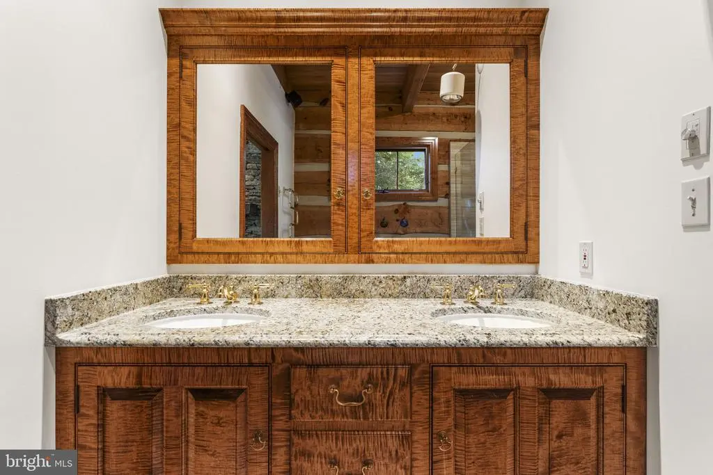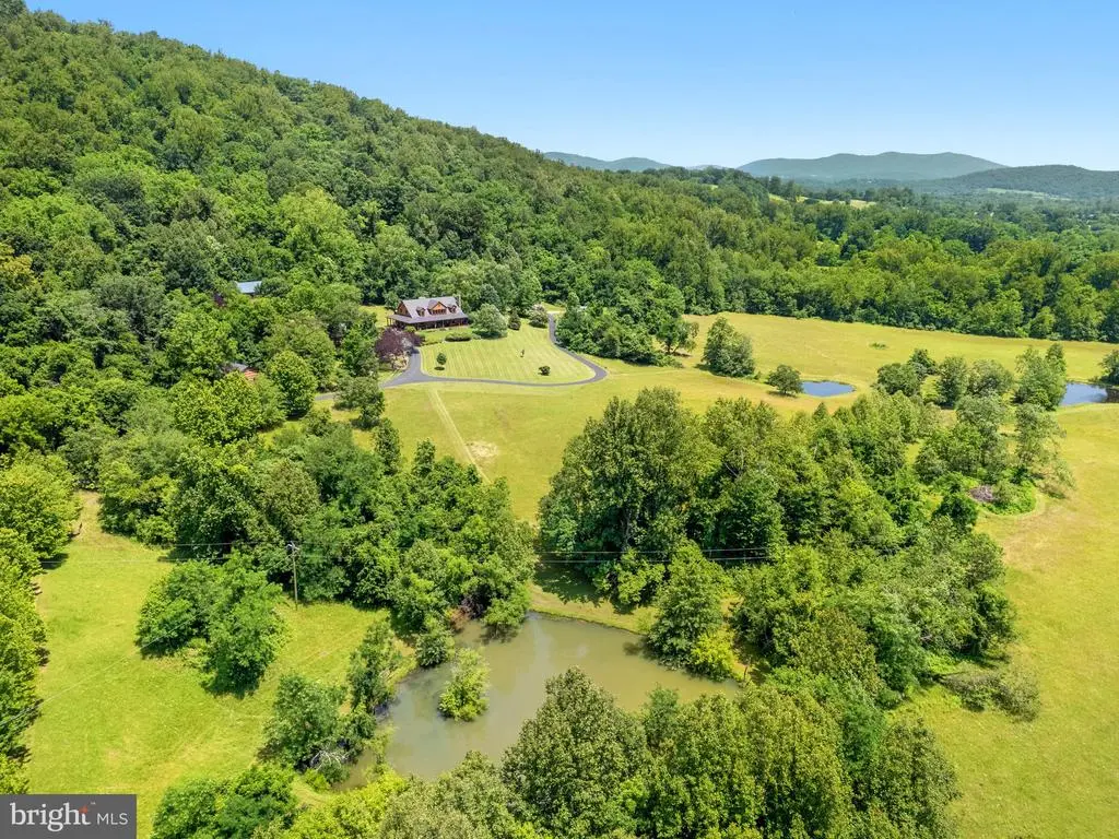 Handcrafted timber and log, accented with stone and pristine views, Bear Wallow Farm is a 42-acre enclave for family and friends with a main residence and two guest cabins in an unparalleled setting—proof you don’t need Montana when you have Rappahannock. This place is special. Sited on a gentle rise among pastures and ponds, wrapped in mountain views, this custom circa 2000 white pine log home of 5,750 sq. ft. stands apart in quality but was designed to complement the land, using nature’s materials- pine, cedar, cherry, maple, walnut, copper, granite, stone, and slate. The main house (2 bedrooms) and two guest cabins, built with the same level of detail and richness, provide 4 total bedrooms in this compound, located in a coveted region of Rappahannock. The main level breaths with its vaulted ceiling, natural light and a floor plan that naturally flows. French doors throughout connect easily to the outdoors, bringing in views, light, and fresh air. The living room features a 15-foot-wide stone fireplace opposite two stories of south-facing windows. Overhead, two single-length hand-hewn beams span 40 feet, one of the home’s best architectural details. The dining area and kitchen, complete with custom cabinetry, an oversized island, and Viking and Sub-Zero appliances, seamlessly join the space. The gracious library leads to the main-level primary suite that opens to a rear patio with spa. Renovated in 2023, the primary bath is premium with a clawfoot tub, glass-enclosed shower, brass fixtures, and rich tiger maple cabinetry. Radiant heat throughout the main level adds a subtle warmth, creating a comfortable home. The upper level offers stunning views and flexible spaces for workouts, reading, or home offices with Starlink internet. A large room, currently a bedroom, can serve as an art studio, study or more. (County-wide broadband is scheduled to be completed by Fall 2026.) A tavern-inspired space with a pressed tin ceiling and bar—ideal for gatherings and game nights surprises in the lower level. A wine room, home theater, spacious office, and coded safe room are also on this level. The two guest cabins have large bedrooms, a fireplace, full bath and a kitchenette (no stove) and allow guests to settle in and enjoy their own space and privacy. The pastoral setting of open hayfields offers possibilities— future equestrian facilities, gardens or hunting in both field and mountainside. The equipment barn (4 enclosed bays, 3 open) with concrete floor accommodates tractors, 4-wheelers, tools and equipment. Inside, a commercial kitchen, bathrooms, walk-in cooler and freezer. The large woodworking shop is a craftsman's dream--fully conditioned is ready for projects. Fun fact: the bar for Flint Hill’s beloved Griffin Tavern was crafted here. All just 20 minutes from Little Washington, home to the renowned Inn at Little Washington and Patty O’s Café and Sperryville, both offering restaurants, breweries, unique shops and more. 20 minutes to Front Royal, 30 minutes to Warrenton and 90 minutes to DC. Crafted over 20 years in harmony with the land, this one-of-a-kind property offers the essence of elevated Rappahannock living.