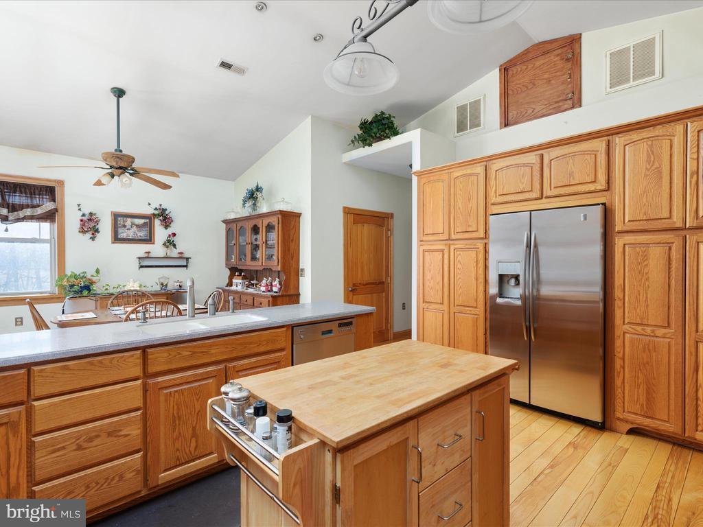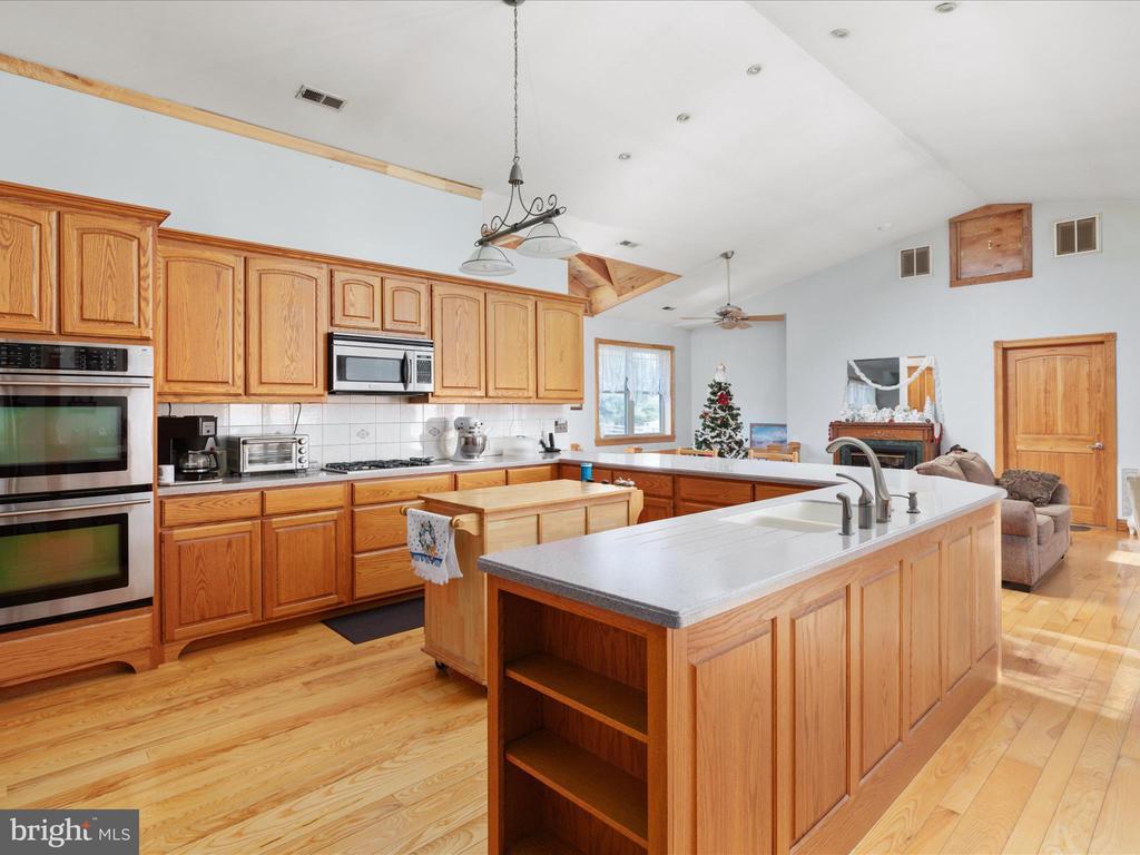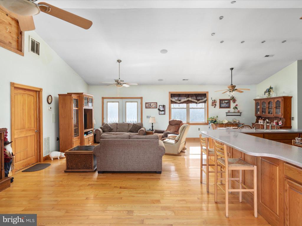 Price Reduced! Discover the charm of this custom-built, log-sided rancher, situated on 3.5 acres with access to the Shenandoah River. This well-crafted home offers 3 bedrooms, 3 full baths, and many practical and premium features for comfortable living. The heart of this home is the spacious kitchen, thoughtfully designed with custom oak cabinets featuring pull-out drawers, durable Corian countertops, a double oven, and a gas cooktop. The living area invites you to relax by a cozy gas fireplace, all set against the backdrop of soaring 10-foot ceilings and 36-inch wide doors, ensuring both elegance and accessibility. Convenience is key with a main-level laundry room, while the partially finished basement offers added flexibility, complete with a full bath and tubing in the floors ready for heated flooring installation. The home is equipped with three separate heating systems for ultimate comfort and efficiency: one for the main living areas (including the kitchen, living room, and primary bedroom), another for the two additional bedrooms and hall bath, and a third exclusively for the lower level, each with individual controls. This property is equipped with two 220-panel boxes and an attached one-car garage. Additionally, it features a detached 42x60 steel building with a 15-foot door, a 10-foot door, a half bath, and 400-amp electric service—perfect for a workshop, car enthusiasts, ample storage, or a variety of other uses. Take in the surrounding mountain views and enjoy the unique access to the Shenandoah River, perfect for outdoor activities or simply enjoying nature. This home blends rustic charm with practical design, offering a fantastic opportunity for those seeking space and functionality.