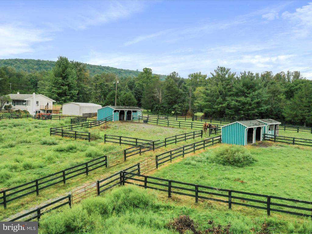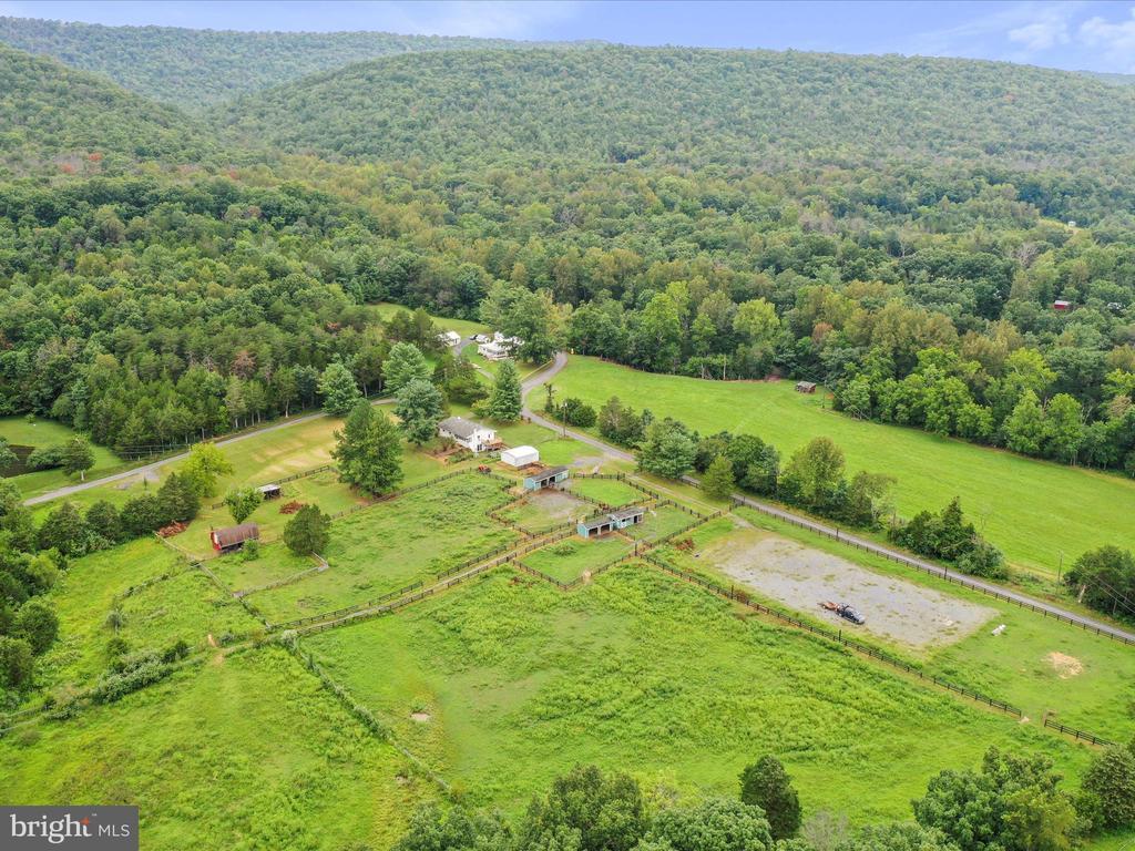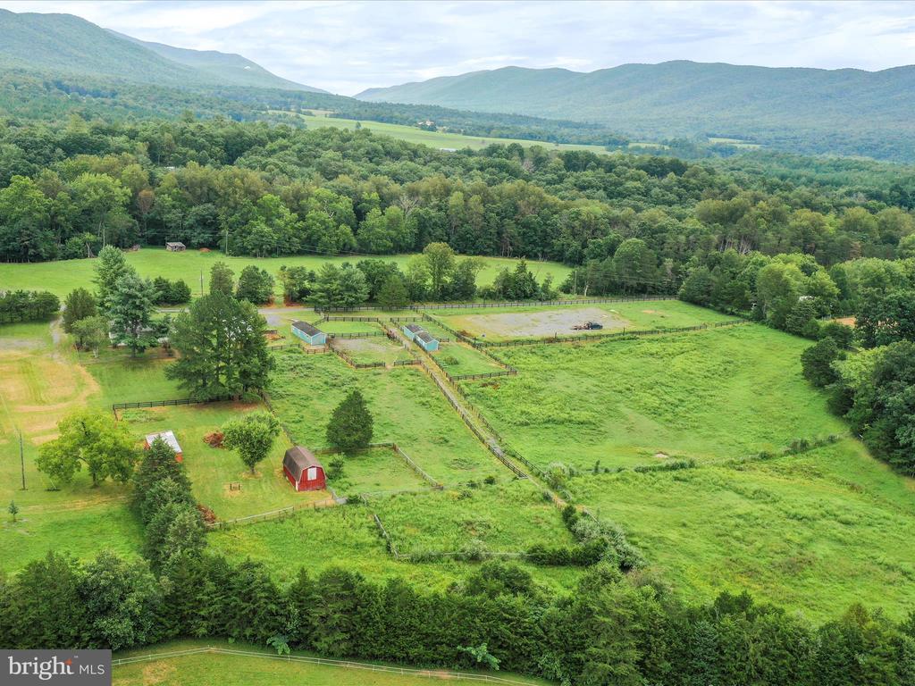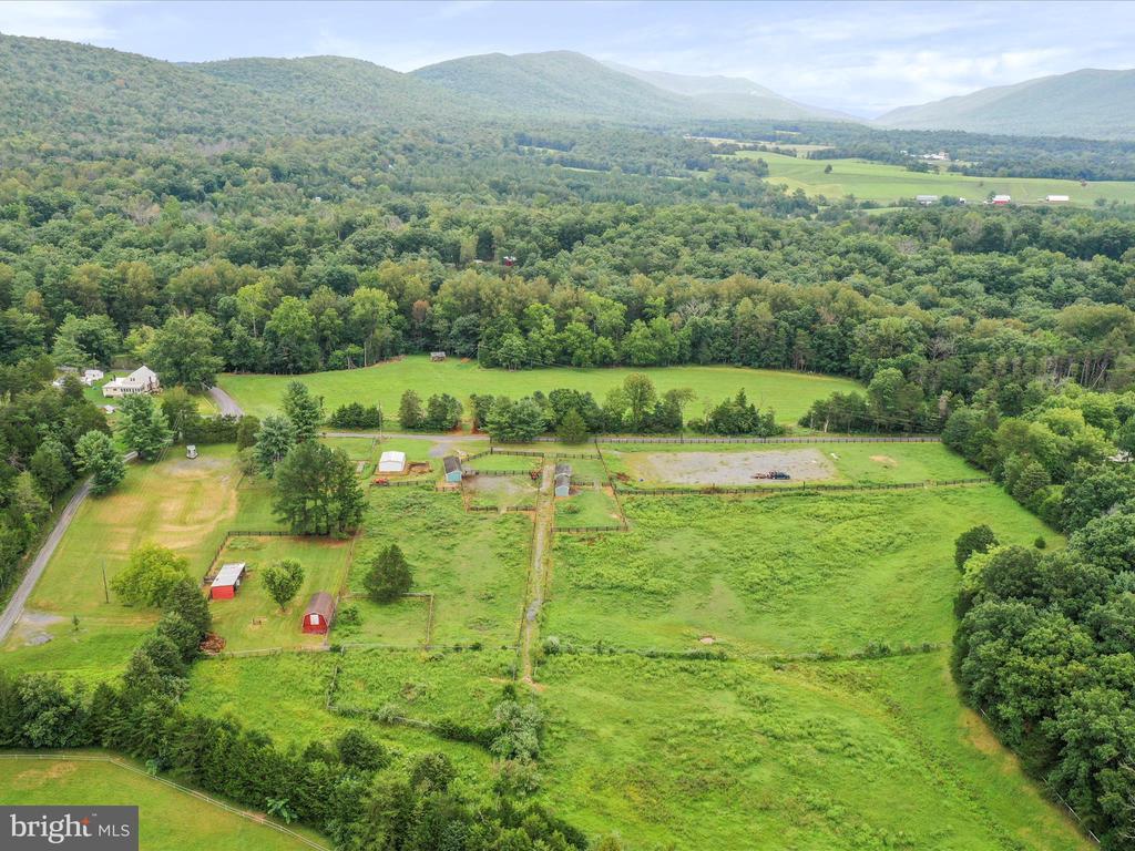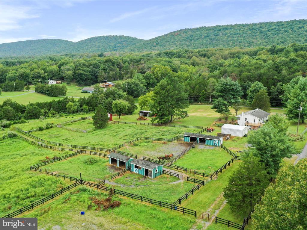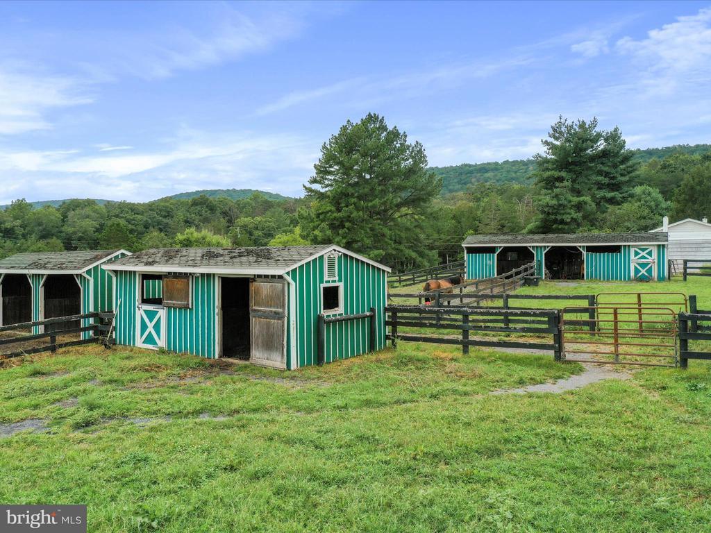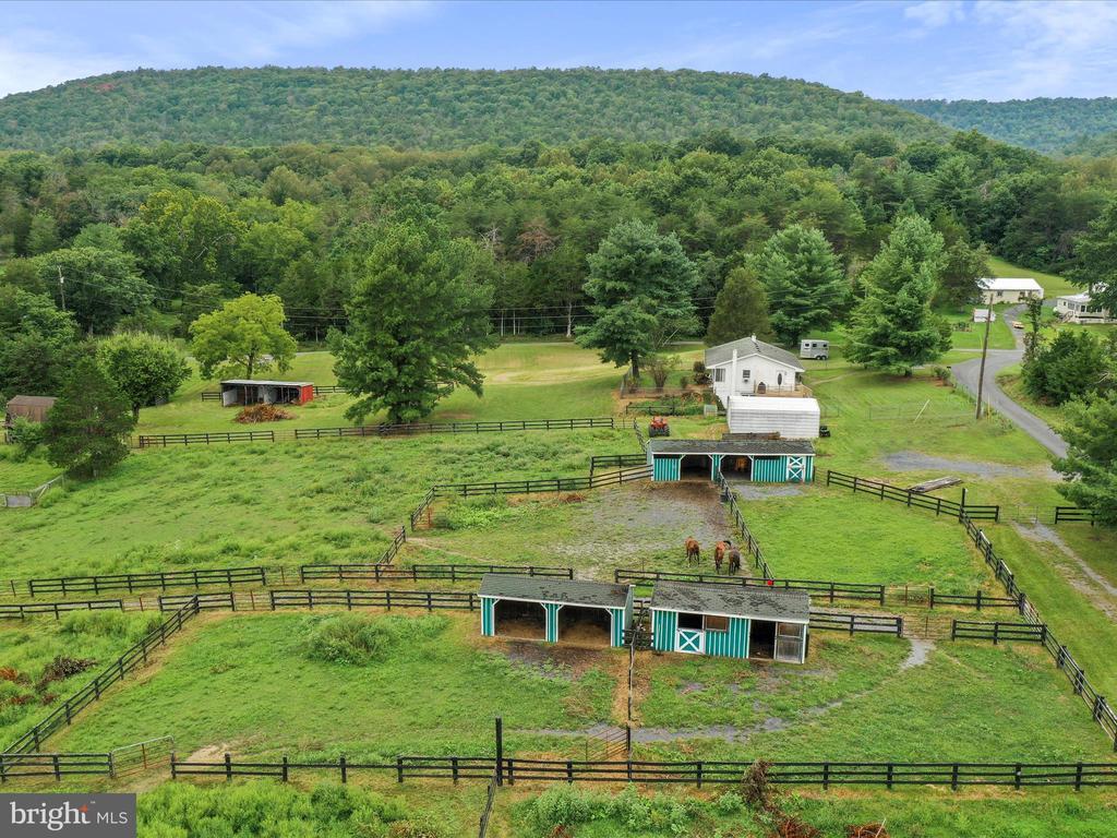 Hard to find horse property in Shenandoah County! This sweet farmette abutting the George Washington National Forest is private and peaceful with stunning mountain views. Two lots, totaling 11+/- acres of fenced pastures and a small wooded area. 5 barns with electricity, 120x225 outdoor arena, thoughtful fencing for dry lots and rotational grazing- everything you need to have horses or other livestock. Hiking, biking, riding, all from your front door. 3BR/2BA cottage with spacious basement, a star gazing deck, fenced yard for furry friends, vegetable garden and a detached 2 car garage. The property is offered AS IS. The foundation is there for incredible country living. No drive ins please.