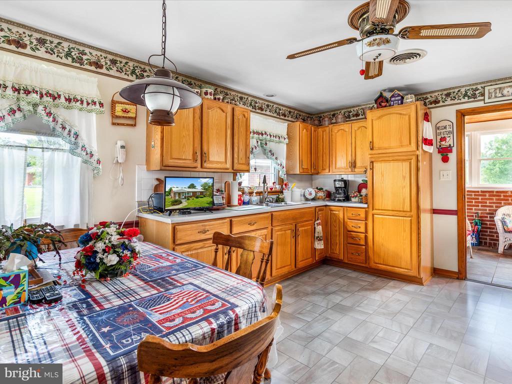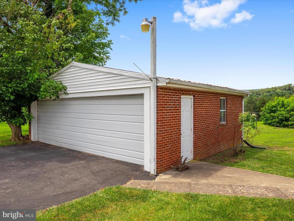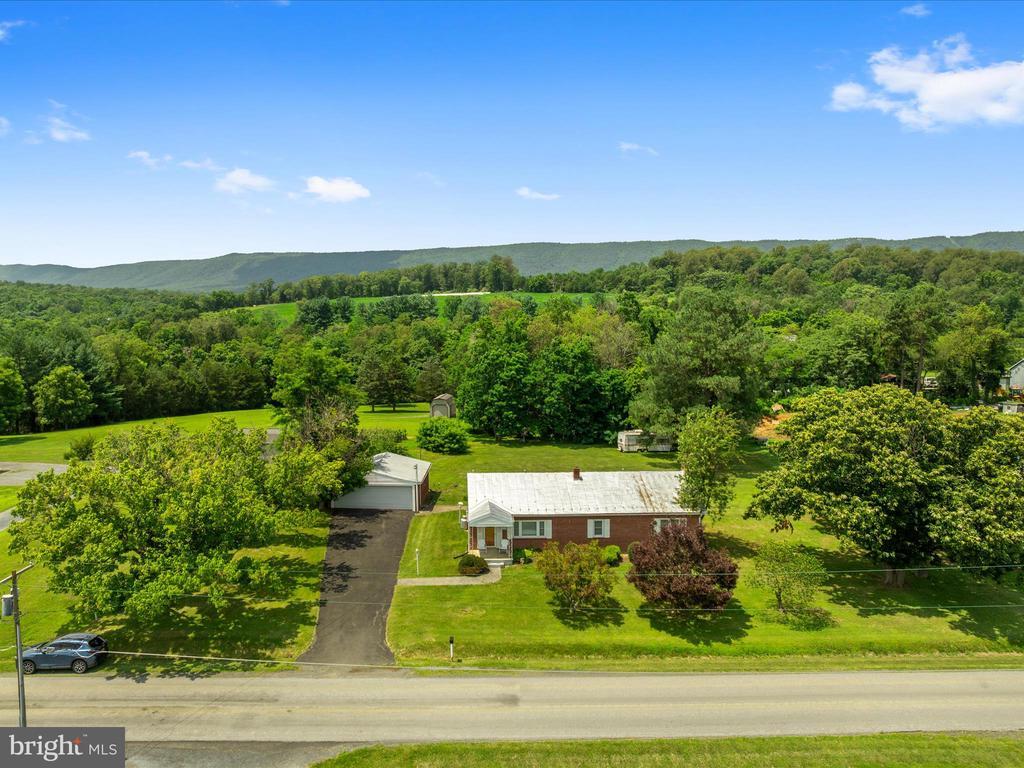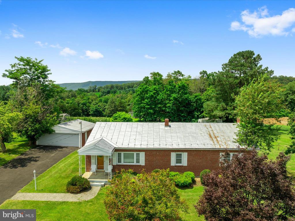 Well-built 1959 all-brick rancher with great potential! This one-level, 3-bedroom, 1-bath home offers 2470 sq ft (including the full unfinished basement) and sits on nearly an acre (.932 acres) of peaceful country land. Features include a metal roof, detached 2-car garage, enclosed back porch with ceramic tile, cabinets, and ceiling fan, plus a front porch perfect for taking in those gorgeous mountain views. Inside you'll find a central vacuum system, family room with a wood-burning fireplace, kitchen with stainless/black appliances, and hardwood floors in the living, dining, and 2 of the bedrooms. The unfinished basement offers laundry, utility sink, shelving, lots of storage and the enclosed back porch offers access to a rear wooden deck.