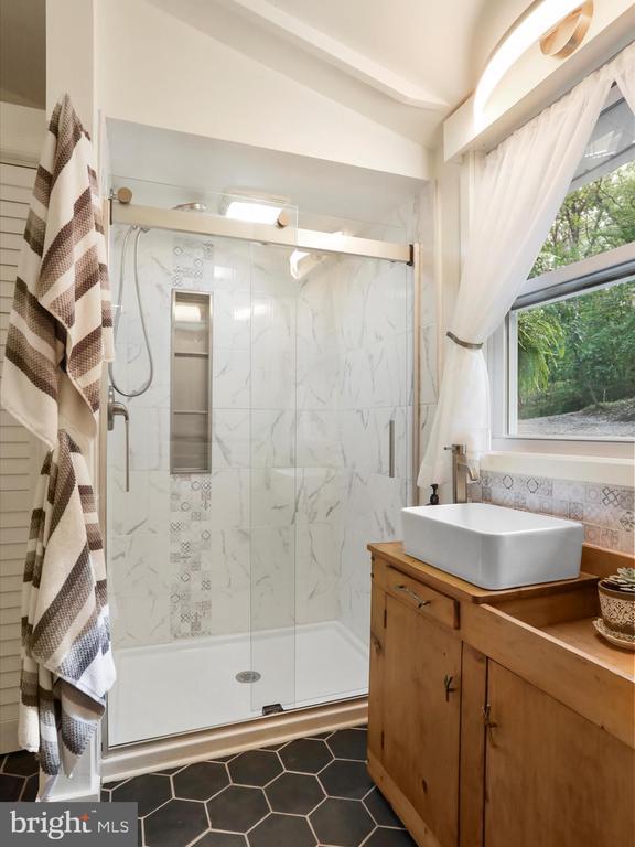 Bathroom - Walk-In Shower, CeilngFan(s), Entry Lvl BR, Exposed Beams, Master Bath(s)