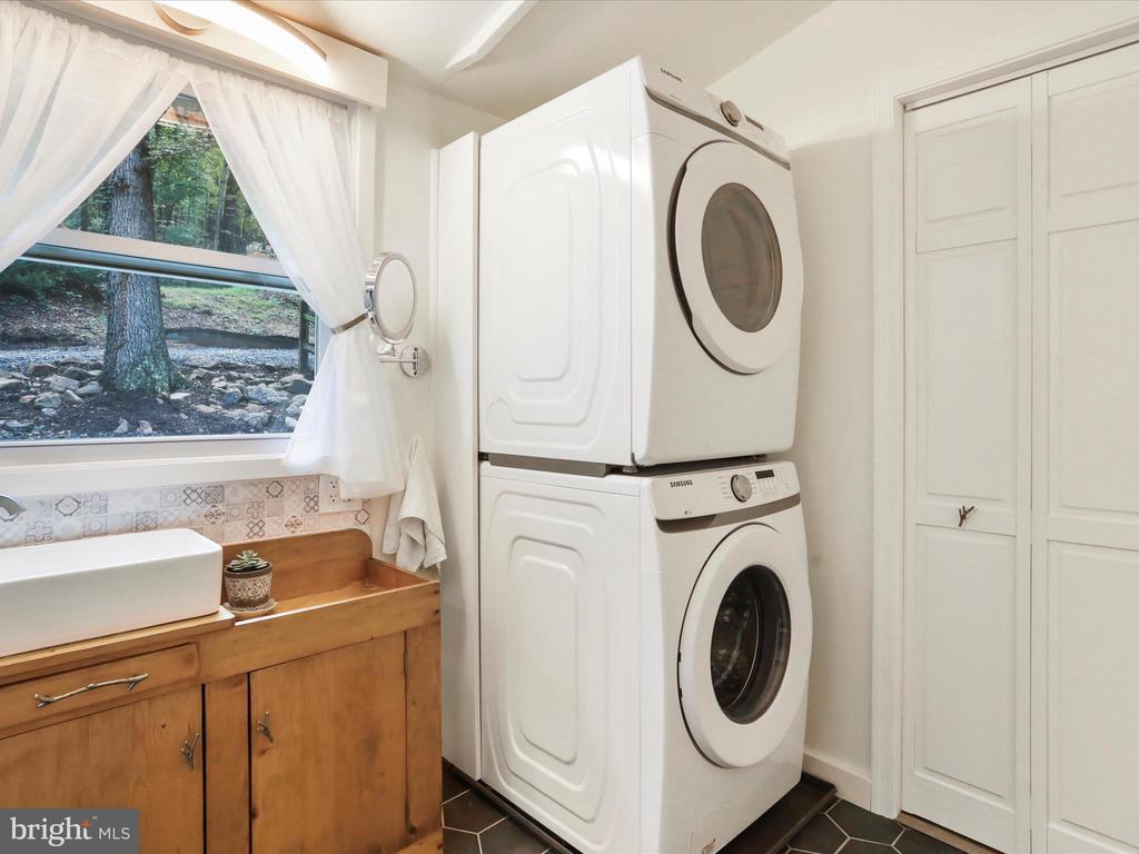 Refrigerator, Stove, Washer/Dryer Stacked, Stainless Steel Appliances