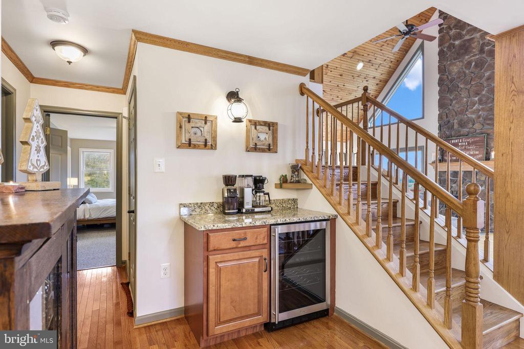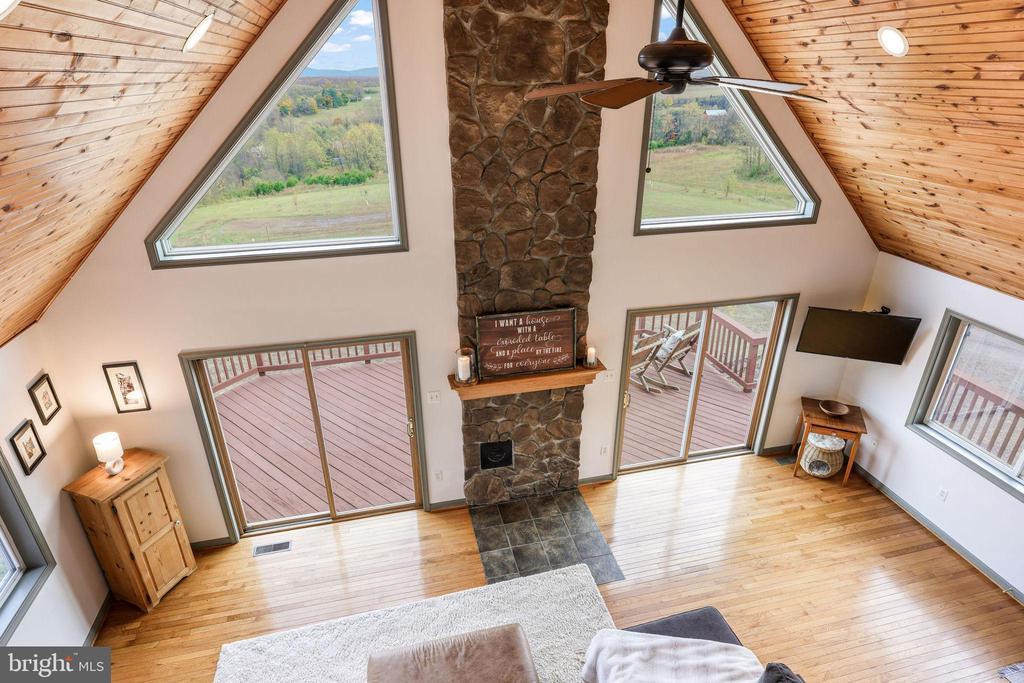 Wake to panoramic Shenandoah Valley views from this stunning chalet-style home on five private acres. Designed as an organic homestead, it features a thriving permaculture garden, orchard, and chicken coop for sustainable living. Enjoy immediate income from a fully furnished Airbnb/in-law suite that has generated steady revenue while giving guests their own private mountain retreat. Natural light pours through floor-to-ceiling windows, highlighting vaulted pine ceilings and gleaming hardwood floors. Step through double sliding doors onto a wraparound deck—perfect for entertaining or quiet mornings watching the sunrise. The remodeled chef’s kitchen features custom soft-close cabinetry by Shenandoah Woodworks, granite counters, stainless appliances, and walk-in pantry. The main-level primary suite offers a spa-like retreat with a jetted tub, walk-in closet, and mountain views. Upstairs are three additional bedrooms and a full bath, with abundant walk-in closets and storage throughout the home. The walk-out basement functions as a flexible in-law suite or proven Airbnb, earning nearly $18,000 in the past year. Sold fully furnished, it’s a turnkey opportunity for the next owner. This level also includes a beautifully designed art/pottery studio that could easily convert into another bedroom to boost rental potential. A two-car garage, level RV parking spot, and newly graveled driveway provide ample parking for residents and guests. High-speed fiber internet supports remote work, making this stunning property a combination of serene country living with modern comfort and accessibility. Recent updates include a new garden deer fence (2024), basement flooring and second kitchen (2023), 80-gallon commercial water heater (2021), gas furnace (2018), and 12x24 storage shed (2017).
