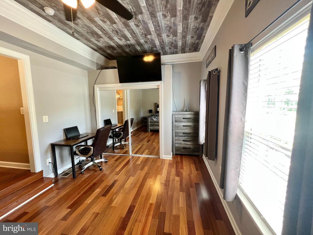 Butlers Pantry, Master Bath(s), Entry Lvl BR, Upgraded Countertops, Crown Molding, Shades/Blinds, Sauna, Wet Bar/Bar, Wood Floors