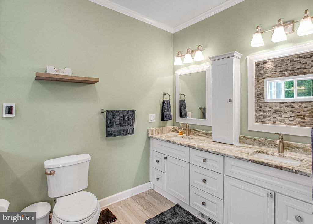 Welcome to this exceptional custom-built ranch/rambler in the desirable Fox Chase community of Spotsylvania. Situated on a beautifully landscaped private lot, this home offers the perfect blend of comfort, functionality, and thoughtful design. Step inside to find a spacious, light-filled main level featuring gleaming hardwood floors, vaulted ceilings with exposed wood beams, and elegant crown molding throughout. The heart of the home is the gourmet kitchen, complete with stainless steel appliances, granite countertops, a large center island, ceramic tile flooring, and gas cooking—ideal for home chefs and entertaining alike. The adjoining living and dining areas provide a seamless flow, enhanced by recessed lighting and architectural details. The luxurious primary suite is a true retreat, showcasing a spa-like bathroom with a soaking tub and walk-in tiled shower. Two additional main-level bedrooms offer flexibility for guests or office space, complemented by a beautifully updated full hall bath. The expansive walk-out lower level boasts a bright recreation room with a convenient kitchenette and a spacious additional bedroom—perfect for multigenerational living, an in-law suite, or an extended guest area. Step outside to your own wooded sanctuary and enjoy the tranquility of nature from the privacy of the rear patio. It’s the perfect spot for morning coffee or relaxing evenings surrounded by peaceful views. At the same time, this home offers exceptional convenience. Ideally located near Spotsylvania Courthouse Village, Cosner’s Corner, and Southpoint Plaza, you’ll have easy access to shopping, dining, and entertainment. Major commuter routes including I-95, Route 1, and Route 208 are just minutes away, making travel to Fredericksburg, Richmond, or Northern Virginia a breeze. This meticulously maintained and thoughtfully upgraded home is a rare opportunity to enjoy single-level living with the bonus of a finished walk-out basement in a peaceful, established neighborhood.