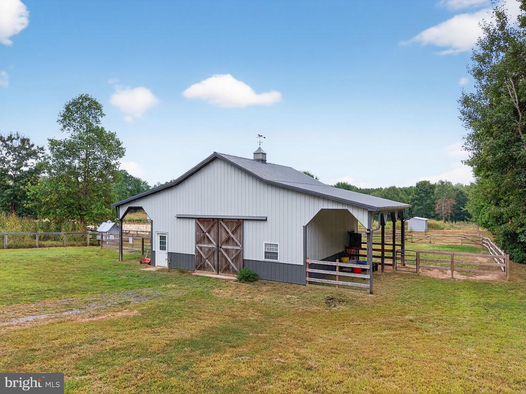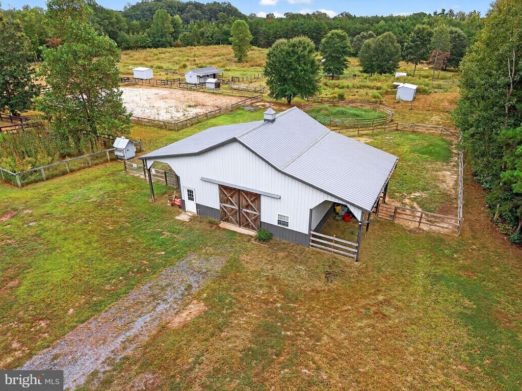 Bring your animals and settle right in—this 25-acre property is thoughtfully designed for equestrian and livestock living while offering all the comforts of a modern homestead. At the heart of the farm is a beautiful center-aisle barn featuring a custom concrete aisleway, four stalls with windows and overhangs on both sides, a hot/cold wash rack, a feed room, and a tack room with built-in lockers. Two additional small hay barns, a shavings storage building, and an equipment shed with attached workshop provide excellent storage and functionality. For added flexibility, the property also includes a three-stall shed row barn with feed room overhang, electric, and water. The 90x130 riding ring with sand footing and French drains ensures year-round usability, while the five fenced pastures with electric fencing that can be turned on/off, a fenced dry lot (previously used for mini horses), and three run-in sheds offer ample turnout and grazing options. Beyond the barns and paddocks, the property features adjacent woods with trails and open space, perfect for leisure riding, walking, or exploring nature. The custom-built 2012 Cape Cod style home offers a welcoming retreat after a day spent outdoors. The main level includes a primary suite with private access to the backyard outdoor shower, a cozy living room with fireplace, and a kitchen finished with granite countertops and solid wood cabinetry. Upstairs, a wide landing leads to two spacious bedrooms with abundant natural light and storage—ideal for family, guests, or a home office. Hardwood floors and natural stone tile flow throughout the home, adding warmth and durability. Step out onto the rear deck to enjoy sweeping views of your pastures and animals at play. With little to no ambient light, evenings bring spectacular stargazing right from your backyard. Although being sold in as-is condition, the property is well cared for with no known defects—a rare opportunity to own a turn-key farmstead so close to town.