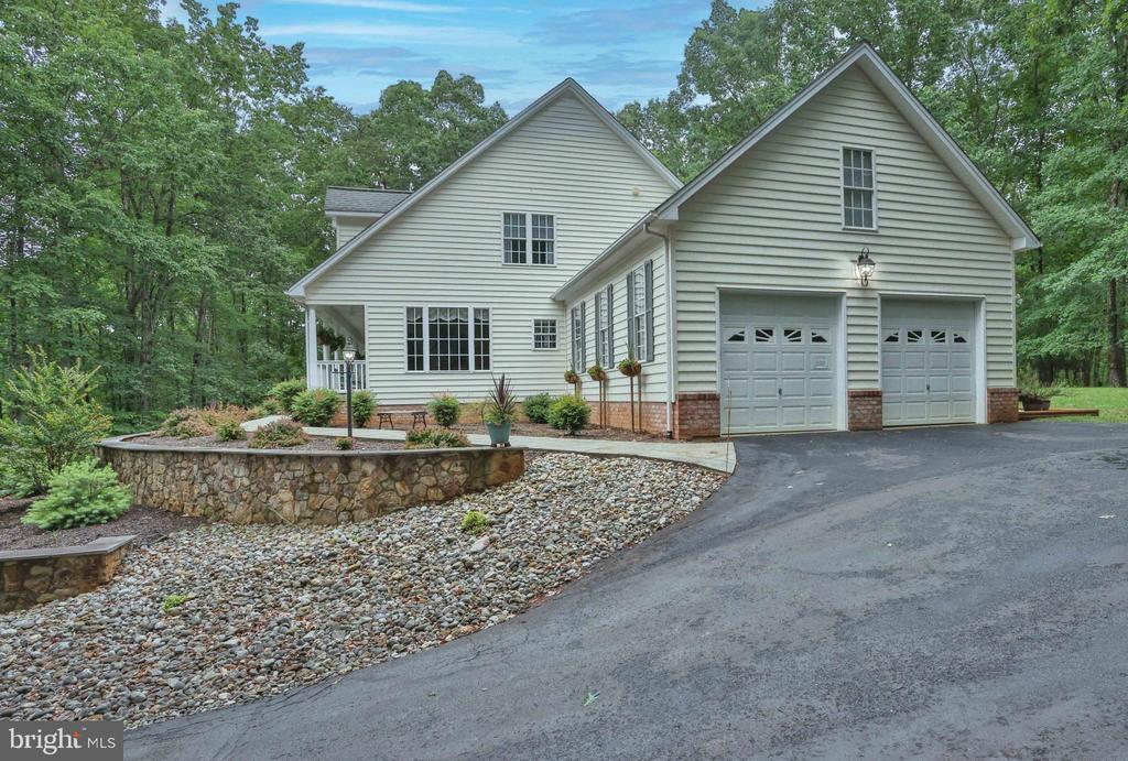 Off a quiet cul-de-sac, and invisible from the street, this Estates of Chancellorsville main-level living home is simply gorgeous, with over $80,000 in upgrades since 2020. The long, recently paved driveway welcomes you home, winding through almost 5 acres of mature hardwoods and wildlife habitat. The first impression is striking, with stone terraces and easy-care shrubs creating a welcoming, well-manicured entry. Step inside to discover the show-stopping family room with a 29’ vaulted ceiling, a wall of new triple-pane, energy-efficient windows, and a warm, natural gas fireplace. The spacious, primary suite opens onto a full-length, covered, rear porch and is complemented by a second main-level bedroom that is well-suited for a home office or guest room. The chef’s kitchen is both beautiful and functional, featuring granite countertops, twin wall ovens, a prep sink on the center island, and classic raised-panel hickory cabinets. Under-cabinet lighting adds a subtle touch of refinement. Upstairs, two en-suite bedrooms (each with a private bath) are connected by a cozy sitting area — perfect for watching TV, gaming, or just reading. Downstairs, a full-length, fully framed, 1,700 sq. ft, walkout basement offers endless possibilities — whether you're envisioning a rec room, workshop, home theater, or other future living space. The recent upgrades include all new carpet and paint, newly updated bathrooms, and tasteful finishes. Additional highlights include: a 50-year architectural roof, 16KW natural gas standby generator, and walk-in above-garage storage. This house is literally a true hidden gem — custom-built and beautifully maintained. If you're seeking privacy, character, and main-level living