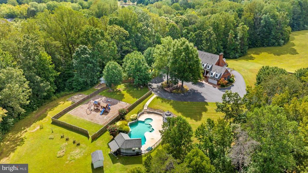 Nearly 24 acres in the heart of Fredericksburg… a rarity that simply does not exist on today’s market. Once historic farmland, this extraordinary estate blends unmatched acreage, equestrian potential, and nearly 9,000 square feet of refined living space—all just minutes from Route 3, shopping, dining, and Downtown Fredericksburg. Fenced paddocks already in place invite horses or livestock, and a massive detached building with running water and a half bath offers versatility as a workshop, RV/auto garage, or an easy conversion to a stable with stalls. The grounds are fully fenced with a decorative black security gate, tree-lined approach, and a circular drive anchored by a shaded gazebo—an arrival as grand as it is private. Rows of pear and holly trees line the entry, setting the stage for this remarkable estate. Outdoors, a resort-style 28,000-gallon saltwater pool with waterfall, Ultralock solid cover (installed 2024), and newer filter/pump (2023) anchors the backyard. An adjacent pool house with kitchenette and bath makes entertaining effortless. Next to the pool, a massive fenced playground area includes a whimsical miniature “dollhouse” and additional storage shed. Within the wooded half of the property, a gently trickling creek runs along the side of the home out to River Road—serenity at its finest. This home is as efficient as it is luxurious: powered by 40+ solar panels and backed by a 60kw whole-house generator on its own gas supply. Five HVAC systems (three recently updated) service the residence. Inside, charm meets scale: seven bedrooms, six baths, gleaming honey-colored hardwoods, and light-filled gathering spaces. The main level wows with a chef’s kitchen featuring granite counters, hardwood cabinetry, stainless appliances (including a double oven and flat cooktop), and a stone-draped fireplace. Off the kitchen, enjoy ample storage, laundry with utility sink, and an additional half bath. The lavish main-level primary suite showcases custom wallpaper, abundant light, large closets, and a spa-like ensuite with dual vanities, soaking tub, and walk-in shower. Flexibility abounds with a private suite over the garage (office/bedroom, hardwood floors, and its own HVAC system), four additional bedrooms and two full baths upstairs—including a Jack-and-Jill bath set-up—and two more bedrooms with another full bath on the top floor. A finished basement offers a large open living space, two generous storage rooms, and double doors that open to a quiet patio. This estate is more than a residence—it’s a once-in-a-lifetime opportunity to own a legacy property with acreage, equestrian infrastructure, and resort amenities, all in a location where land of this scale is nearly impossible to find. 12620 Chewning Lane is where luxury, history, and convenience converge.