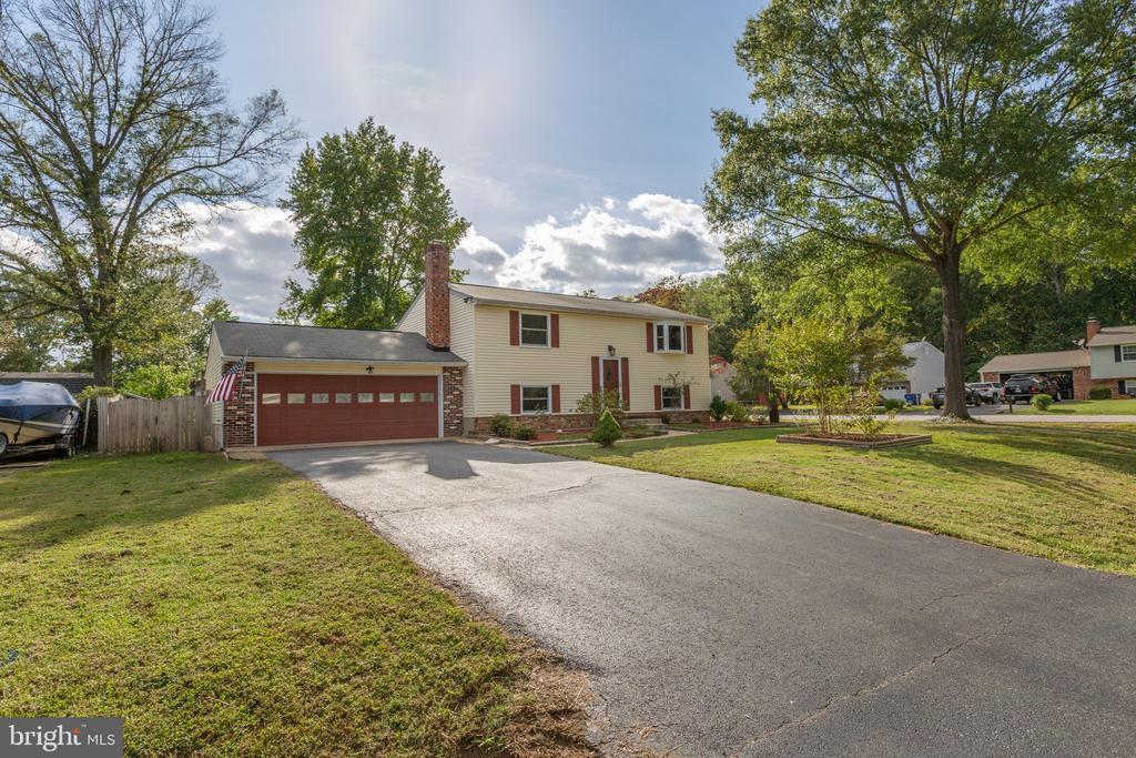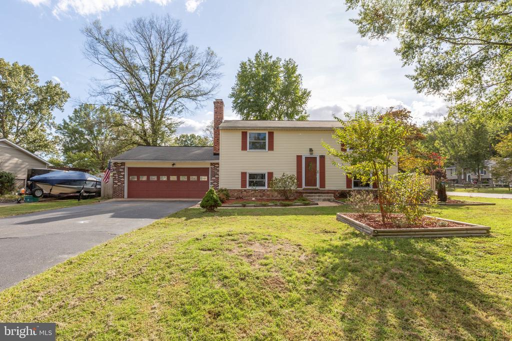 If living in a family-oriented neighborhood... enjoying oodles of recent upgrades... and being within seamless reach of so much Fredericksburg goodness all sound appealing, prepare to be dazzled by 5528 Tallow Street! Quietly nestled south of Leavells Road on a corner lot within the Oak Grove community, this split-level residence includes three bedrooms, two full baths and nearly 1,800 square feet of living space. It sits on a quarter-acre plus lot that is loaded with a lovely mix of mature and updated accents. Looking at the front yard, an asphalt driveway segues to a two-car garage. Within it, note the workbench and fridge (convey!), above-head storage space and automatic door (new garage door motor as of 2024). The front yard also includes three flower boxes, tasteful crepe myrtles and, along the side of the property, beautiful rose bushes. The back yard is fully fenced with two gates. The space is beautifully shaded by trees and includes a gigantic butterfly bush, firepit and paver stone patio with built-in storage. Above the patio is a screened-in deck for taking in the serene landscape! The home itself is a yellow hue with popping orange-red shutters. Heading inside the split-level residence, you’ll notice so many updated elements since 2020 – new windows, vinyl plank flooring, paint and more. Upstairs is the living room and kitchen. Note the kitchen was updated in 2021 and includes fresh cream and blue cabinets, quartz countertops, stainless steel and black appliances (note the hood vent plus a 6-month-old stove!), pot filler, deep sink, unique coffee bar and walk-in pantry with plenty of shelving – wow! We do have two carpeted bedrooms with ample closet space and a full bath (tub/shower combo) upstairs as well. Note that one of the bedrooms has a built-in Murphy bed. Heading down to the lower level you’ll find the extra-large, carpeted primary suite. It includes a massive walk-in closet (with its own chandelier... and the size of a bedroom itself!) and an updated ensuite bath with a walk-in shower and long vanity. Additional lower-level highlights include the den with a full brick wall accent and fireplace; under-stairs storage; garage/mudroom access; and the laundry/utility room. The HVAC system and hot water heater were updated in 2021, and the home is serviced by a water filtration system. Beyond the neighborhood here, multiple schools, parks and grocery/shopping/dining destinations are within minutes! Two I-95 exits (Route 3 and Massaponax) are within 10 minutes. Within 15 minutes, you can be to the heart of Downtown Fredericksburg, VRE stations (Spotsylvania and Fredericksburg), UMW, Mary Washington Hospital, Spotsylvania Regional Medical Center and so much more. This residence has strong bones, beautiful updates, corner lot allure and a magnificent location, folks! Book your showing of 5528 Tallow Street ASAP.