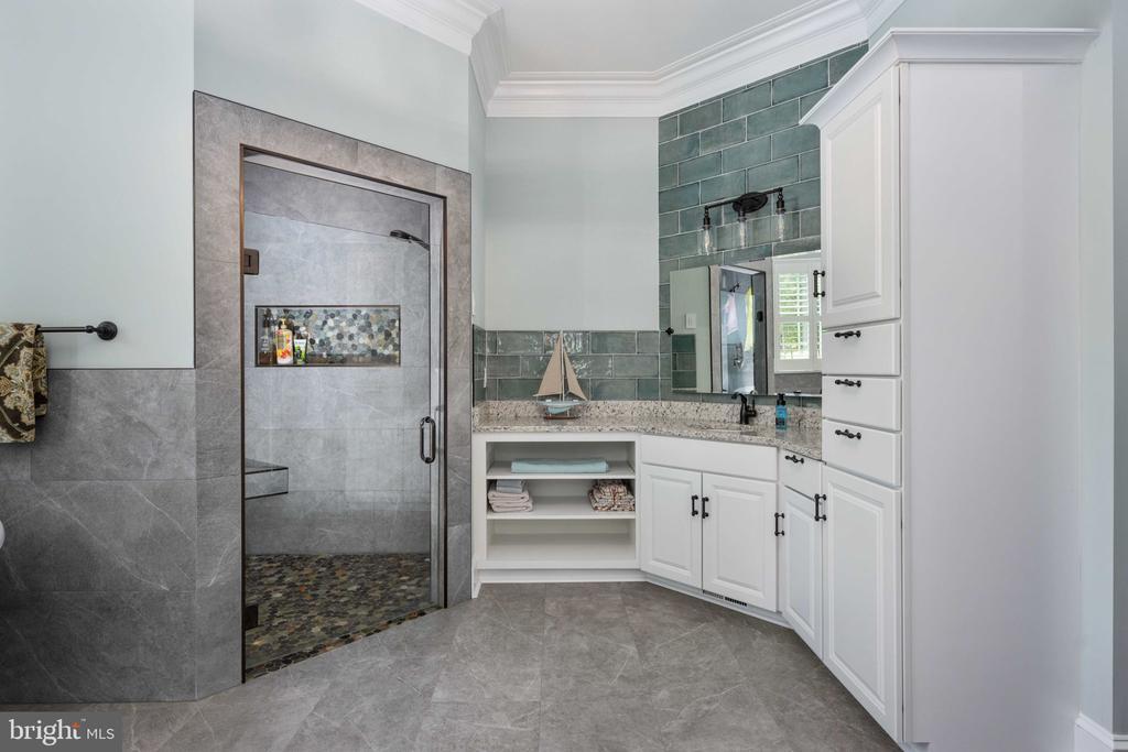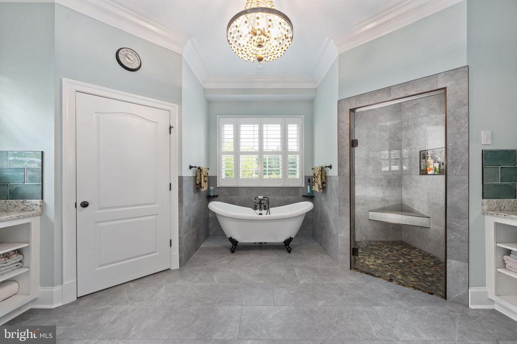 Bar, Built-Ins, Butlers Pantry, CeilngFan(s), Chair Railing, Crown Molding, Double/Dual Staircase, Entry Lvl BR, Exposed Beams, Master Bath(s), Recessed Lighting, Pantry, Upgraded Countertops, Wainscotting, Walk-in Closet(s), Wine Storage, Wood Floors, Additional Stairway, Air Filter System, Bathroom - Walk-In Shower, Tub Shower, Formal/Separate Dining Room, Wet Bar/Bar, Water Treat System