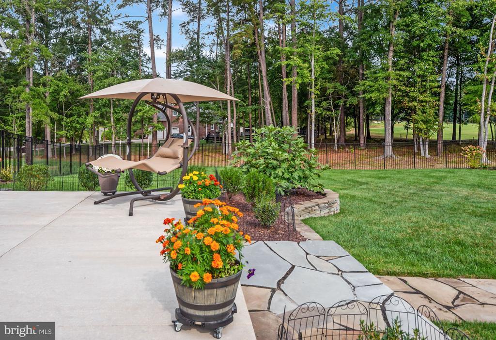 Extensive Hardscape, Awning(s), Bump-outs, Exterior Lighting, Udrgrd Lwn Sprnklr, Porch-wraparound, Porch(es), Patio, Fenced-Fully, Wrought Iron