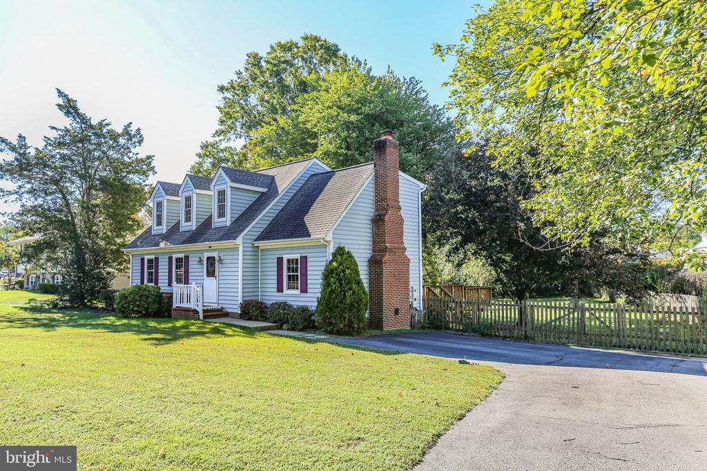 Charming Cape Cod with Private Backyard and neighborhood with no HOA! Welcome home to this delightful Cape Cod nestled on a spacious .40-acre partially wooded lot in a prime location close to I-95, shopping, dining, commuter lots, and area amenities. Enjoy the convenience of being within walking distance of the Salem Church Library and county practice soccer fields, all while living in a no-HOA community that offers freedom and flexibility. The home’s classic curb appeal shines with its dormer windows and welcoming brick stoop entry. Step inside to a center foyer with hardwood floors, setting the tone for a home filled with warmth and character. To the left, you’ll find a formal living room and adjoining dining room, perfect for entertaining or easily adaptable as a home office or playroom. The kitchen offers ample cabinet and prep space, with a sunny window overlooking the backyard and a cozy breakfast area ideal for casual dining. The family room invites relaxation with its brick wood-burning fireplace and hearth—perfect for cooler evenings—and French doors that open to a spacious two-tiered deck shaded by mature trees, creating a tranquil outdoor retreat. The laundry area is on the main level and features a stackable washer and dryer, the water heater, and additional storage space under the stairs. You can store your cleaning products and tools here and out of sight! Upstairs, discover three generously sized bedrooms, including a primary suite featuring a custom built-in bookshelf and a private ensuite bath. A full hall bath with a tub and shower combination serves the additional bedrooms. Freshly painted and newly carpeted, this home has been professionally staged to highlight its best features and help you envision your life here. Outside, the fenced backyard offers privacy and room to play, while the older storage shed—sold as is—is perfect for tools, toys, and equipment. The paved driveway with apron provides parking for up to four vehicles. Charming, move-in ready, and full of potential, this well-loved home is ready for its next chapter. Don’t miss your opportunity to make it yours.
