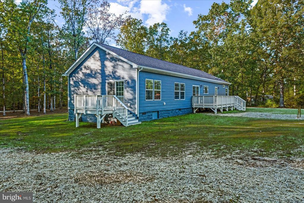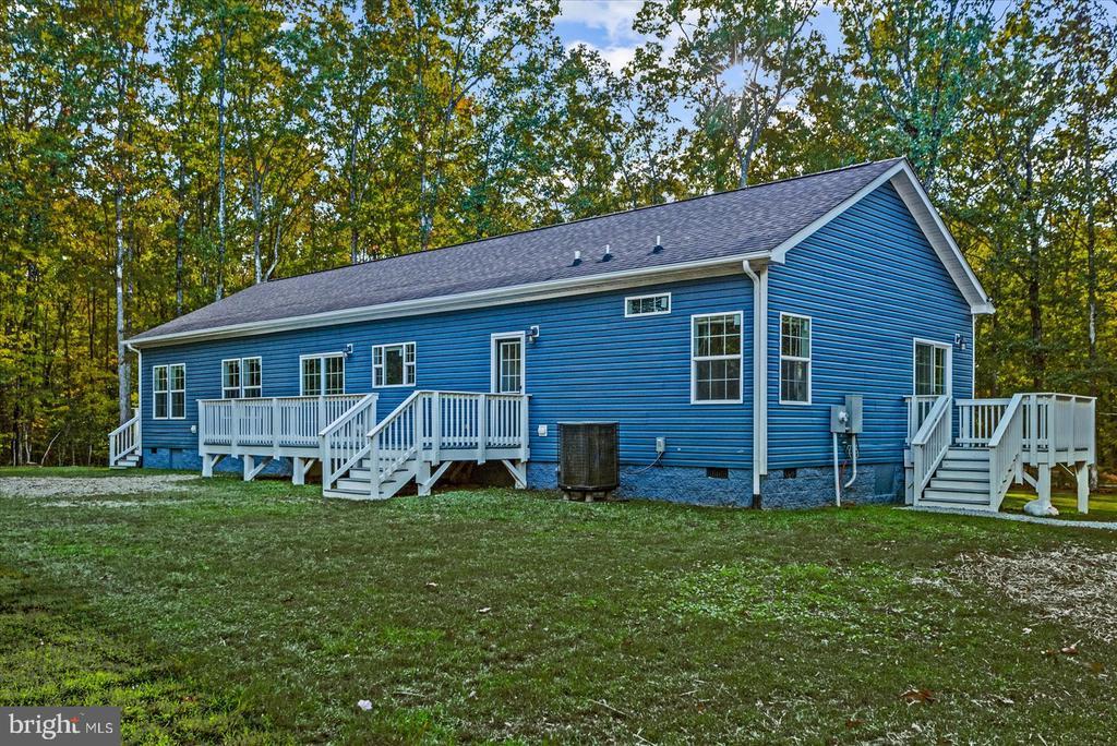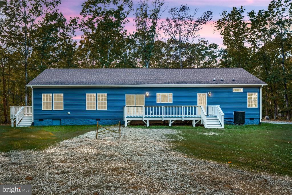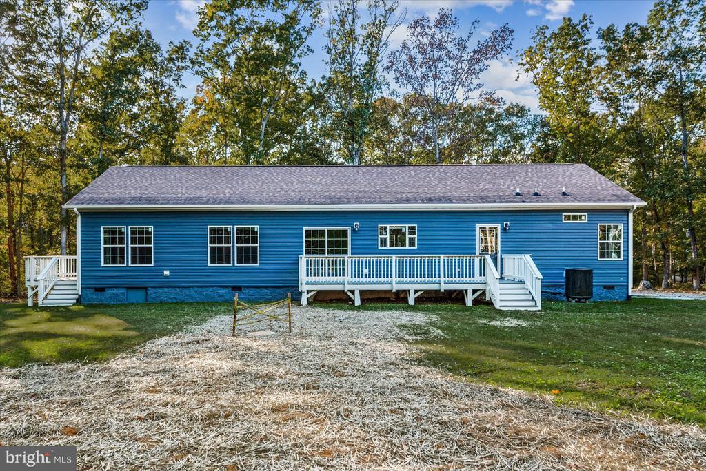Welcome to 14511 Antler Rd — a rare opportunity to own a beautifully updated, move-in ready home on 3 private acres in one of Fredericksburg’s most desirable locations. Nestled in the heart of the Riverbend High School district with no HOA, this spacious 4-bedroom, 2-bath home offers the best of both worlds: peaceful, private country living just minutes from shopping, dining, commuter routes, and all the conveniences of town. Built in 2017 and extensively upgraded in 2025, this home has been thoughtfully refreshed inside and out. A brand-new, fully permitted septic system gives peace of mind for years to come, while the exterior shines with new paint on the siding, foundation, and all four decks, new exterior doors, and professionally graded and landscaped grounds — creating a clean, crisp curb appeal that welcomes you home. Step inside to discover bright, open, and airy single-level living, featuring a modern open-concept layout filled with natural light. The heart of the home is a stylish kitchen with stainless steel appliances, abundant cabinetry, and a large center island perfect for entertaining or casual family meals. Durable luxury vinyl plank flooring flows throughout the main living spaces, offering a sleek, low-maintenance finish. The primary suite is a true retreat, complete with a walk-in shower, soaking tub, and private access to one of the freshly painted decks, perfect for sipping your morning coffee while taking in the surrounding nature. A second bedroom also features its own private deck access, making it an ideal guest suite or home office. Outside, the possibilities are endless — whether you’re dreaming of a garden, a fire pit, a playground, or simply relaxing under the stars, this property gives you the space and freedom to make it your own. With no HOA to limit your vision, you can truly embrace the rural lifestyle without sacrificing access to town amenities. This is more than a home — it’s a lifestyle. With modern updates, incredible privacy, and a prime location in a top school district, 14511 Antler Rd is the perfect place to put down roots. Don’t miss your chance to own a slice of serenity just minutes from everything. Schedule your showing today!