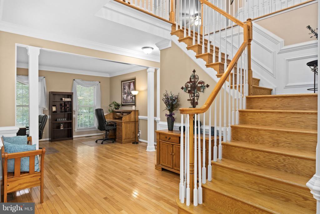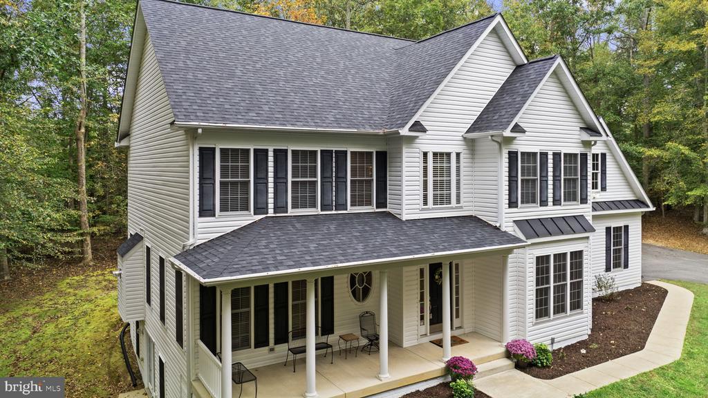 With peaceful & seasonal glimpses of the Ni River Reservoir and a setting that feels worlds away — yet just minutes from everything Fredericksburg has to offer — 10704 Whispering Way is a true hidden gem. This elegant five-bedroom, 3.5-bath home offers the rare combination of privacy, modern updates, and timeless style, nestled on two wooded acres in a quiet corner of Spotsylvania County. A long, winding driveway welcomes you through mature trees to a wide parking area and impressive three-car garage. The home’s classic white-siding-with-black-shutters exterior feels fresh and inviting, enhanced by a brand-new roof (2023), gutter guards, and recent pressure washing. Inside, the same level of care continues — from the light oak floors and graceful millwork to thoughtful upgrades throughout. The foyer opens to flexible front rooms ideal for a home office, library, or formal dining space, framed by elegant columns and crown molding. The open-concept main level flows seamlessly from the living room and breakfast nook to a bright, updated kitchen featuring granite countertops, light oak cabinetry, tile backsplash, center island, new stove, and under-cabinet lighting. A tiled mudroom, half bath, and generous pantry add everyday functionality. Upstairs, four bedrooms and two full baths include a serene primary suite with double walk-in closets and a spa-like bath with garden tub and tiled shower. A spacious bonus room above the garage offers built-in seating and endless versatility, while a double-vanity hall bath and laundry room (washer and dryer convey) add convenience. The finished, walk-out lower level provides a full-length recreation area with wood-look tile flooring, a large fifth bedroom, a beautifully tiled full bath with walk-in shower, and two storage rooms with built-in shelving. Outdoors, enjoy tranquil evenings by the firepit or coffee on the patio surrounded by the sights and sounds of nature — deer wandering through, birds in song, and seasonal views that stretch toward the reservoir. Despite its secluded feel, this property offers unmatched accessibility. Everyday conveniences — including groceries, dining, and shopping along Route 3 and Gordon Road — are within 10 minutes. I-95 access is just 20 minutes away via Route 3 or Massaponax, and historic Downtown Fredericksburg is less than 25 minutes from your doorstep. 10704 Whispering Way offers that rare balance of elegance, comfort, and connection — a thoughtfully updated, move-in-ready home wrapped in privacy, yet perfectly positioned near the best of Fredericksburg living.