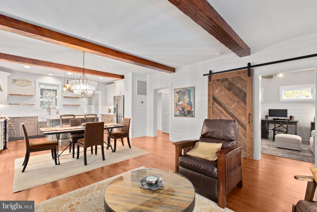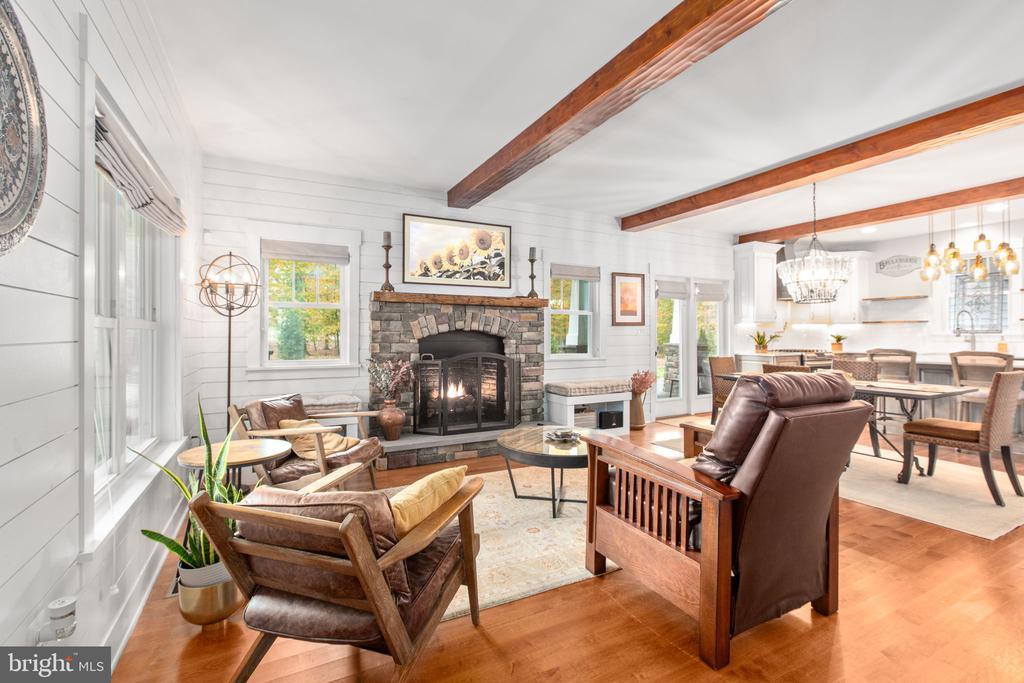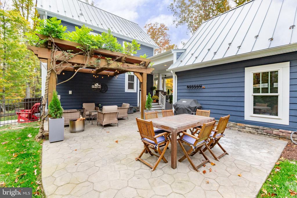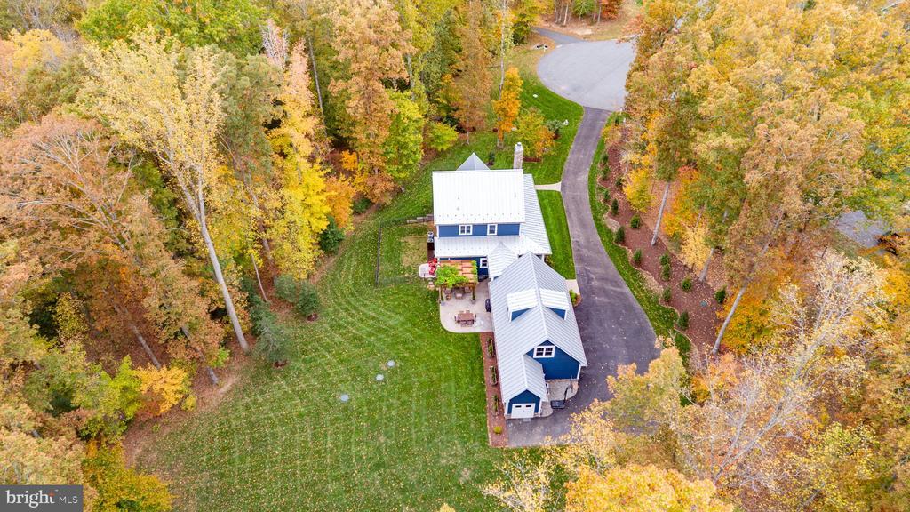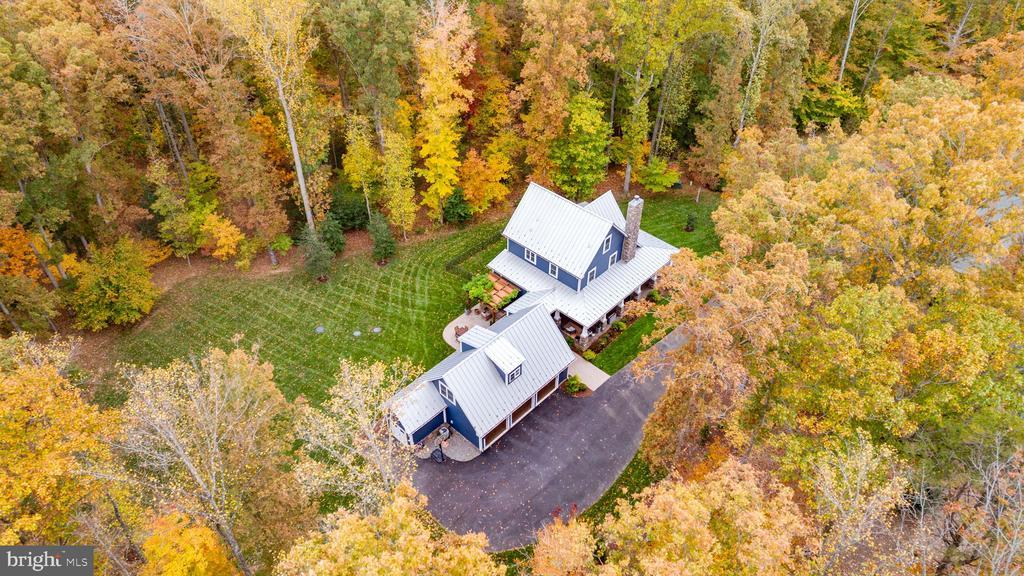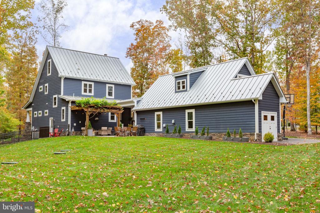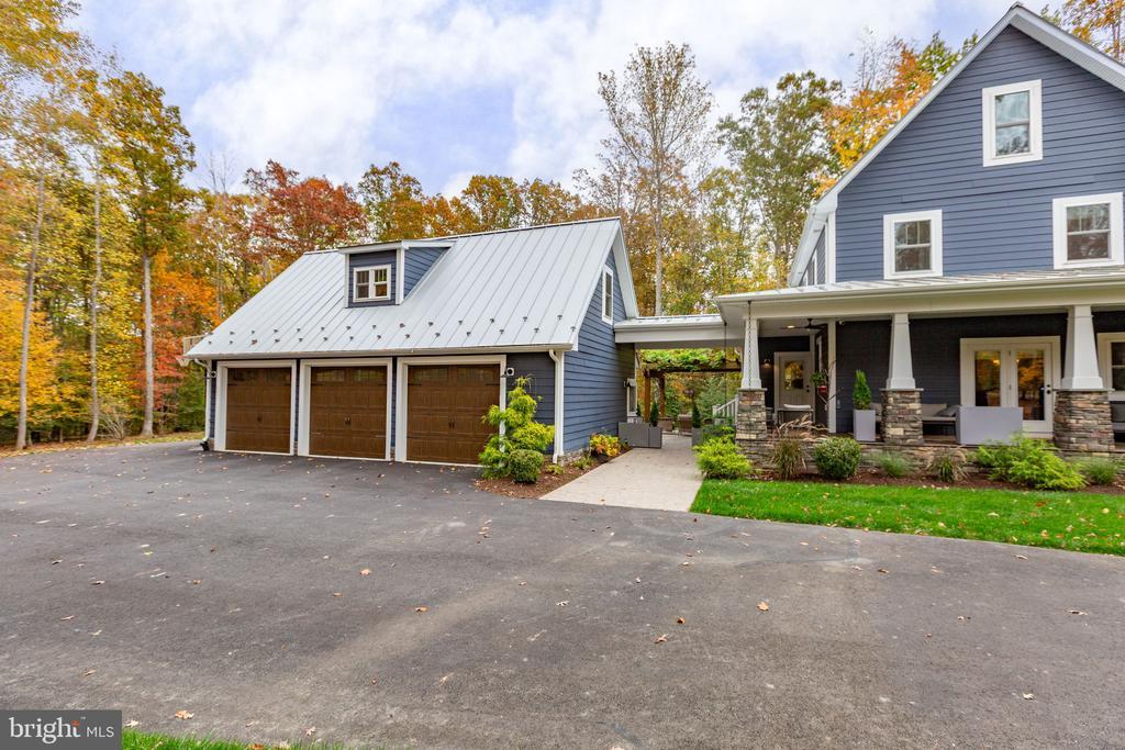 Nestled at the end of a quiet cul-de-sac in the River Glen Subdivision, this stunning custom craftsman farmhouse sits on a private, wooded 2.04-acre lot - offering peace, privacy, and natural beauty in every direction. Built in 2018 by Travilian Homes, this thoughtfully designed property blends timeless craftsman and farmhouse architecture with high-end modern finishes. The exterior features Hardie plank siding, a metal roof, and a custom pergola with stamped concrete patio - perfect for outdoor entertaining or quiet evenings surrounded by nature. The wraparound porch spans three sides of the home with breezeway leading to the detached 3-car garage featuring painted floors and a spacious finished bonus room above. Inside, the home showcases maple wood floors, wood beams, and shiplap accents throughout. The open-concept main level includes a gas fireplace with stone surround and mantel, a custom sliding barn door to the main level guest suite, and an inviting kitchen that’s a chef’s dream—complete with reclaimed wood floating shelves, custom cabinetry, island seating, farm sink, copper range hood, pot filler, and wine fridge. The primary suite features a vaulted ceiling with exposed beams and a stylish accent wall, while the bathrooms and laundry room are finished with designer tile and high-end fixtures. Additional highlights include a third-floor bonus bedroom, large unfinished basement, and partially fenced yard with a 16-zone irrigation system. This smart home is equipped with Nest cameras, thermostats, and smart lighting, plus a security system, tankless water heater, water treatment system, and three HVAC zones for comfort and efficiency. The garage includes a Tesla Level 2 220v wall charger, making it EV-ready. Enjoy easy access to downtown Fredericksburg and I-95 and explore nearby Motts Run Reservoir, known for its mountain bike trails and outdoor recreation opportunities. If you’ve been searching for a private retreat that balances luxury, technology, and natural beauty, this River Glen craftsman farmhouse is the perfect place to call home.