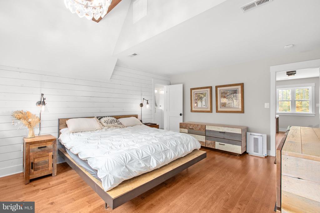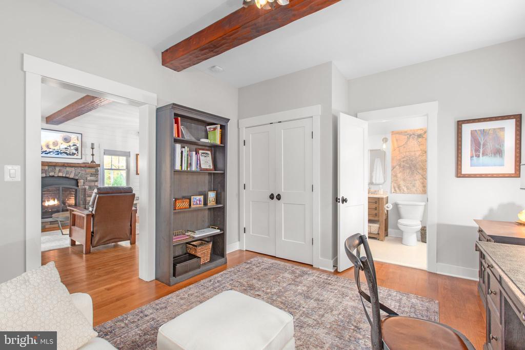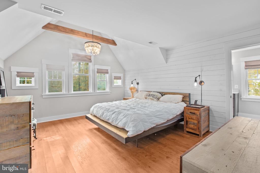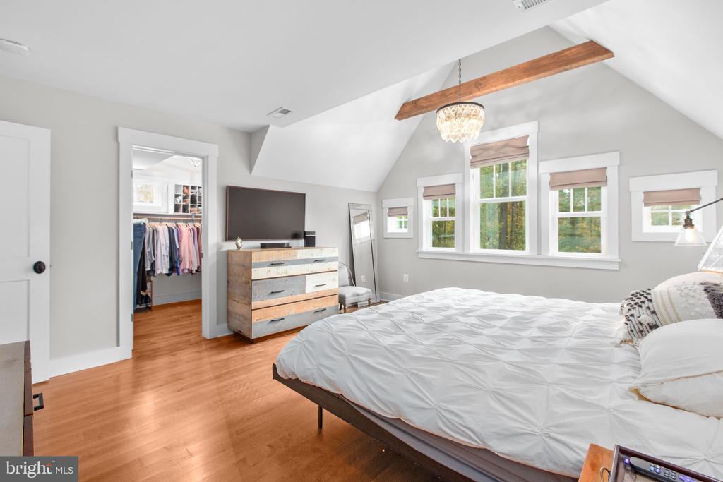 Bathroom - Walk-In Shower, Built-Ins, CeilngFan(s), Entry Lvl BR, Exposed Beams, Recessed Lighting, Upgraded Countertops, Wainscotting, Walk-in Closet(s), Water Treat System, Wood Floors