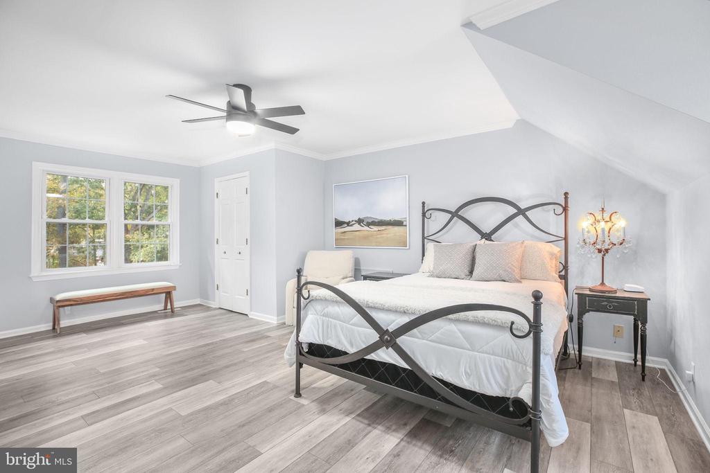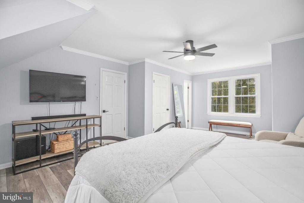 Entry Lvl BR, Crown Molding, Master Bath(s), Skylight(s), Walk-in Closet(s), Shades/Blinds, Wood Floors