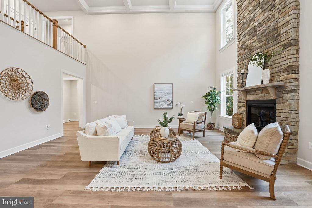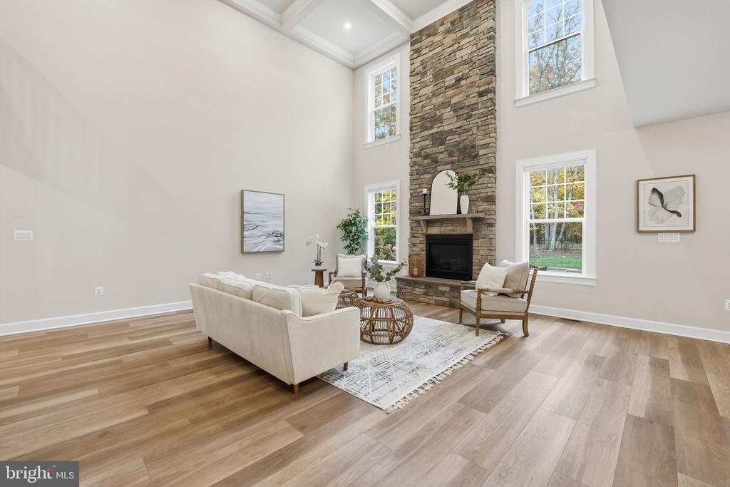 Spectacular Dream Home in one of the most prestigious addresses in the Fredericksburg area. Located within the gates of Fawn Lake, this nearly new residence spans an impressive 7,300+ sq ft on three levels of well-appointed living space with premium amenities in a beautiful setting. Featuring a modern, elegant and flowing interior with upgraded finishes designed for both luxurious daily living and impressive entertaining. Exquisite finishes such as 10 FT ceilings, tall windows, custom tile, and wide plank wood floors elevate the voluminous spaces throughout this gorgeous home. The impressive facade with stacked stone combined with shake siding, create a modern aesthetic that leaves a lasting impression. The welcoming front porch leads to an inviting Foyer, which is flanked by a Formal Living Room, and a fabulous Dining Room with a stylish Butlers Pantry right around the corner. A soaring two-story Great Room with a dramatic stacked stone fireplace, coffered ceiling, and a spectacular wall of windows overlooking the wooded back yard, is perfect for both intimate family living and grand-scale entertaining. An amazing gourmet Chef's Kitchen is equipped with an abundance of upgraded Cabinetry and Quartz countertops, a massive center island, tile backsplash, upgraded stainless appliances and a large walk-in pantry. The adjacent breakfast area with large windows boasts views of nature and offers access to the inviting Screened Porch and the incredible backyard. A gracious main level Bedroom Suite with a private bath and walk-in closet is perfect for guests. A large Mud Room with a convenient drop zone completes the main floor. The wide staircase leads to the upper level bedrooms. A perfect sanctuary, the fabulous Owner's Suite with sitting area, features a luxury Spa Bath with tile shower and double vanities, plus an amazing walk-in closet! Three Generous en-suite Bedrooms with Full Baths and walk-in closets offer ample space for the whole family. The large laundry room with a utility sink is conveniently located on the upper level. A long balcony overlooks the luxurious space below. The finished basement continues to impress. Designed with abundant comforts and features to entertain, it features a huge Recreation Room, lounge, Gym, Full Bath, and an amazing Bar with beverage fridge, sink and dishwasher. Outdoor living is equally impressive, an inviting screened porch features a striking stacked stone gas fireplace and TV mount, for watching your favorite shows and games! The highlight of the backyard is an expansive stone patio with integrated ambient lighting anchored by a spectacular wood-burning fireplace! A sweeping lawn and professionally designed grounds are accented with Limelight Hydrangeas, white roses, boxwoods, landscape lighting, and a variety of ornamental trees. The fenced backyard retreat is bordered by majestic mature hardwood trees providing a wall of privacy and a spectacular color show! Providing a perfect backdrop for creating lasting memories! Whether entertaining on a grand scale or enjoying quiet, everyday moments, this extraordinary residence offers an incredible opportunity to embrace the magic of peaceful country life and the ultimate lifestyle at Fawn Lake! You will live with ease in this luxuriously designed turn-key dream home built in 2023! Equipped with a built-in generator, in-ground irrigation system and motorized window shaeds! Located within walking distance to the Fawn Lake Sports Park, where you can enjoy Pickleball, basketball, soccer and ball fields, plus a large playground. Don't miss this incredible opportunity to own a newer Home in one of the most prestigious addresses in the Fredericksburg area! The Fawn Lake Community offers amazing amenities such as a boating recreational lake, beach, golf course, tennis, pickleball, and volleyball courts, baseball and soccer fields, dog park, trails, ClubHouse, marina, fitness center, restaurants, Country Club and much more!