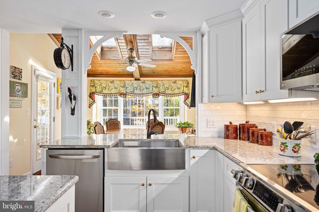 I am excited to share the details on this welcoming, three-level home is privately tucked away on a cul-de-sac, yet it's literally seconds from everything you need. The extensive hardscaping, mature trees, and lush foliage enhance the sense of privacy. This residence, which features a custom floor plan by Tom Sagun, offers a traditional layout with exceptional touches. You'll find beamed and vaulted wood ceilings, hardwood flooring, exquisite moldings, built-in bookshelves, several bay windows, skylights, and a real brick fireplace with an insert. The stunning kitchen boasts custom cabinetry, top-of-the-line appliances, and a beautiful island enhanced with custom skin panels. Upon entering the foyer, a private study (currently used as an office) with ample built-in bookshelves is to your right. To your left, you'll find a formal living room with floor-to-ceiling windows and stunning moldings. The family room offers a sense of peace and warmth, with amazing, colorful views of the rear yard. The kitchen features a perfect table space in front of a large picture window and is open to the recently renovated kitchen. Through classic arches, you'll discover a window-filled sunroom with a single French door leading to a spacious deck overlooking a stunning rear yard, positioned just above a stamped concrete patio. The second level includes large bedrooms, including the primary bedroom with a gorgeously renovated primary bathroom. Numerous renovations and upgrades have been made throughout this home, and pride of ownership is evident. One of the most unique features is that the recreation room is located on the third level, rather than a basement! This is a must-see home—you will fall in love! Please feel free to reach out if you have any questions or would like to schedule a visit.