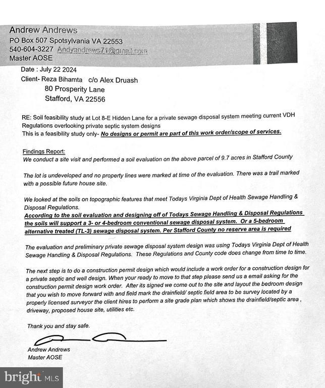 Vacant land suitable for building. Size 9.752 acres. Enter through easement off Hidden Lane. No HOA. Recent PERC for 4 BR, or 5 capable.