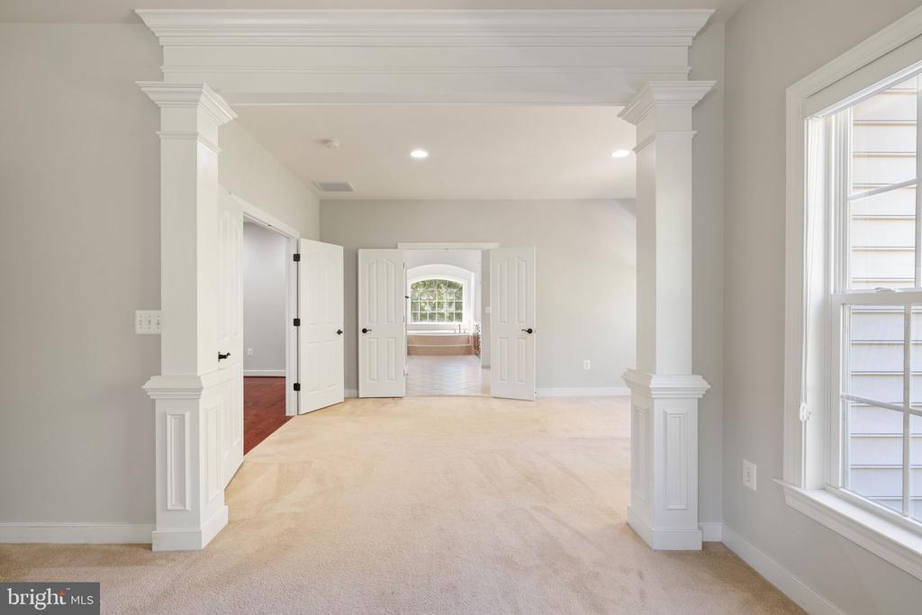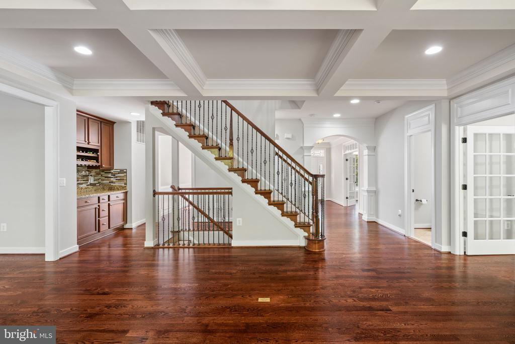 Bar, Soaking Tub, Tub Shower, Butlers Pantry, Carpet, CeilngFan(s), Crown Molding, Entry Lvl BR, Formal/Separate Dining Room, Pantry, Upgraded Countertops, Walk-in Closet(s), Wet Bar/Bar, Wpool Jets, Wood Floors
