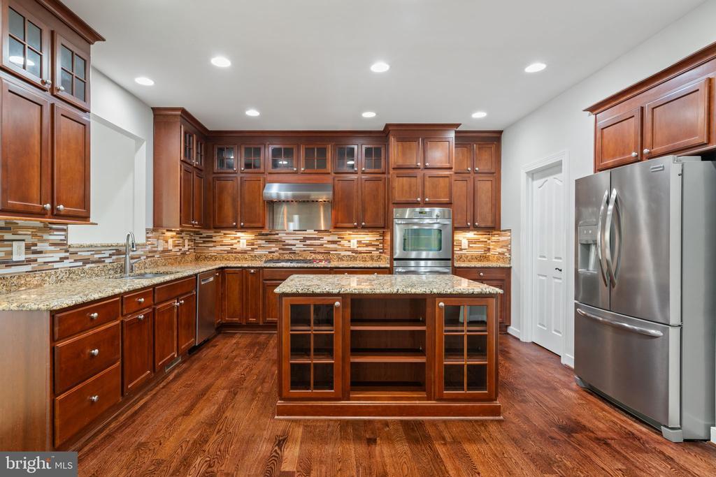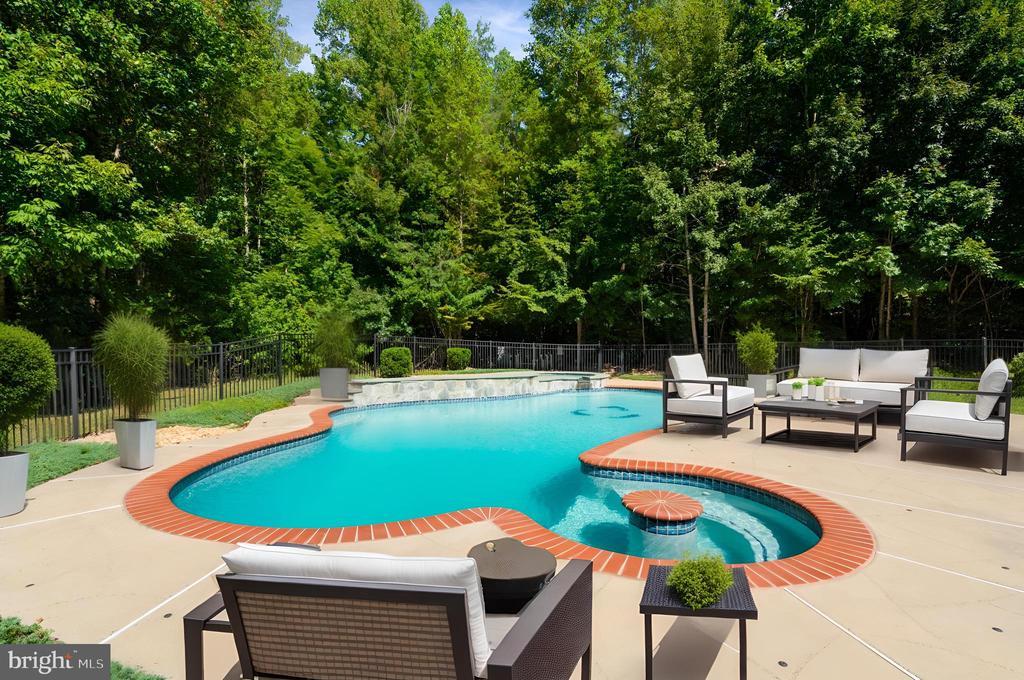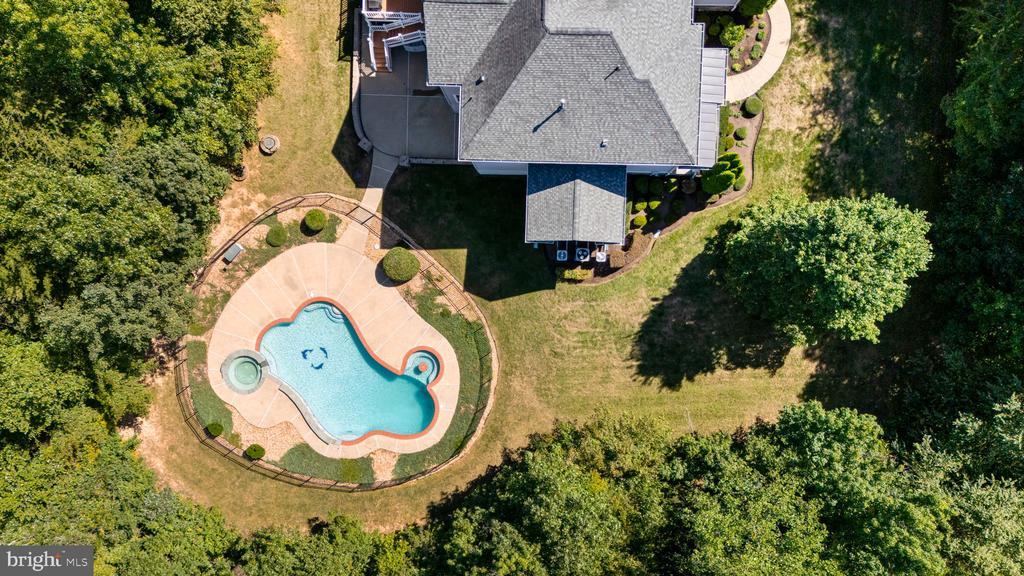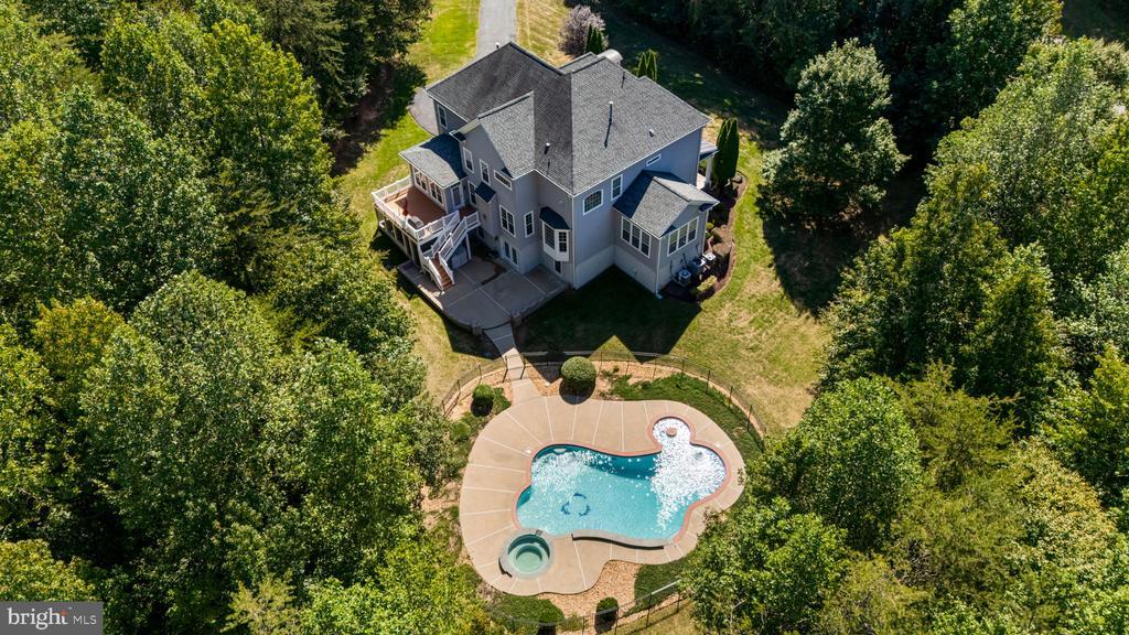Set on 3.45 private acres in The Glens, one of Stafford’s most sought-after estate communities, this custom stone-and-brick Colonial blends timeless architecture with modern comfort across more than 7,000 finished square feet. Designed for those who appreciate fine craftsmanship, thoughtful design, and outdoor living at its best, every element of this residence speaks to refined quality. A welcoming covered front porch leads into a grand interior with hardwood floors, crown molding, and architectural detail throughout. The main level offers elegant formal spaces, including a living room with bay windows, a formal dining room with chair rail and crown molding, and a private study ideal for work or quiet reflection. The gourmet kitchen is the centerpiece of the home, featuring granite countertops, slow-close maple cabinetry to the ceiling, double wall ovens, gas cooktop, stainless-steel appliances, butler’s pantry, tile backsplash, and a large island with seating. The sunroom opens directly to the composite deck, creating an easy indoor-outdoor flow. The family room showcases a stone gas fireplace rising to the ceiling, coffered ceiling, and crown molding, offering an inviting space for gathering. Upstairs, the primary suite provides a tranquil retreat with a tray ceiling, sitting area, and two walk-in closets. The luxury bath includes dual vanities, a soaking tub, and a Roman shower with dual shower heads and tiled archway. Three additional bedrooms include one ensuite and a Jack-and-Jill configuration, all with generous closets. The fully finished walk-out lower level extends the home’s versatility with a recreation room, media room with built-in stereo, exercise area, and a custom wet bar/kitchenette featuring granite counters, backsplash, dishwasher, and refrigerator. A full bath and open layout make this level ideal for entertaining or long-term guests. Outdoors, experience your own private resort style oasis with a screened and covered patio, deck and in-ground pool with waterfall edge and hot tub, all surrounded by vinyl fencing, irrigation system, and mature landscaping. Located just minutes from I-95, shopping, and dining, this remarkable property offers the best of luxury country living in The Glens—where privacy, craftsmanship, and comfort come together seamlessly.