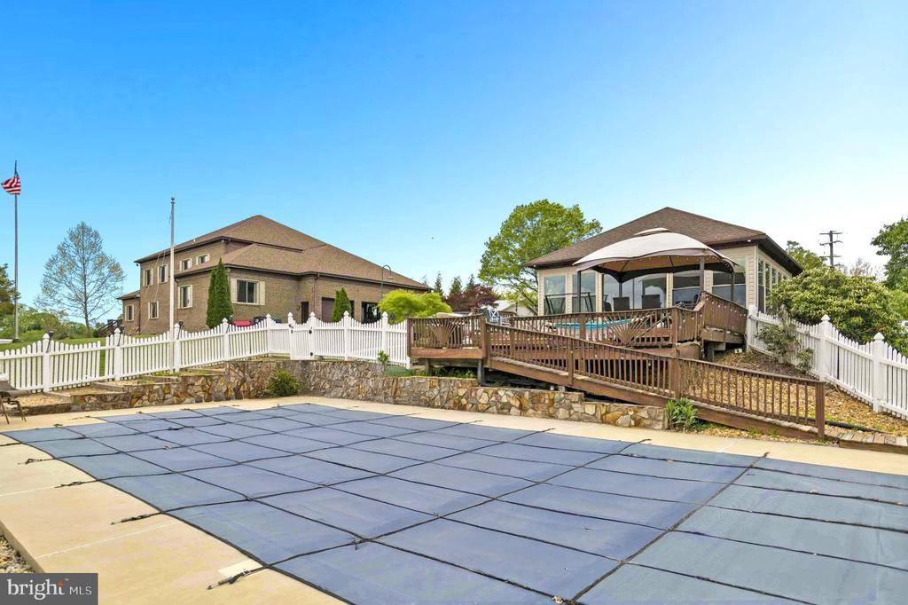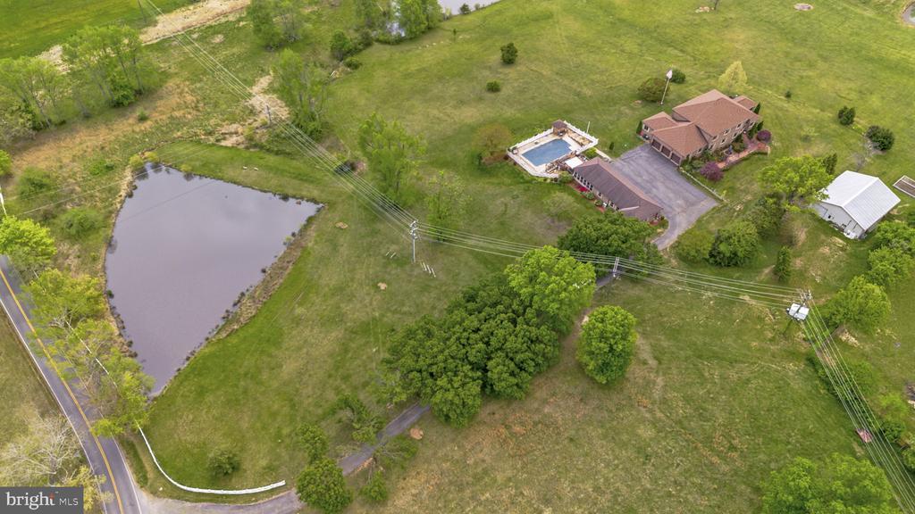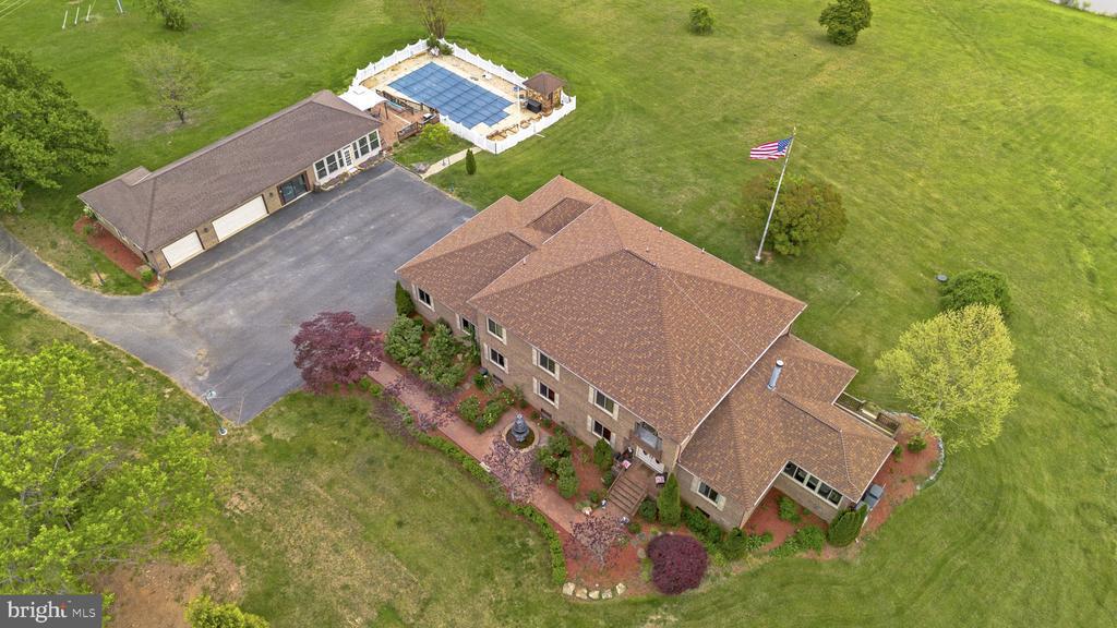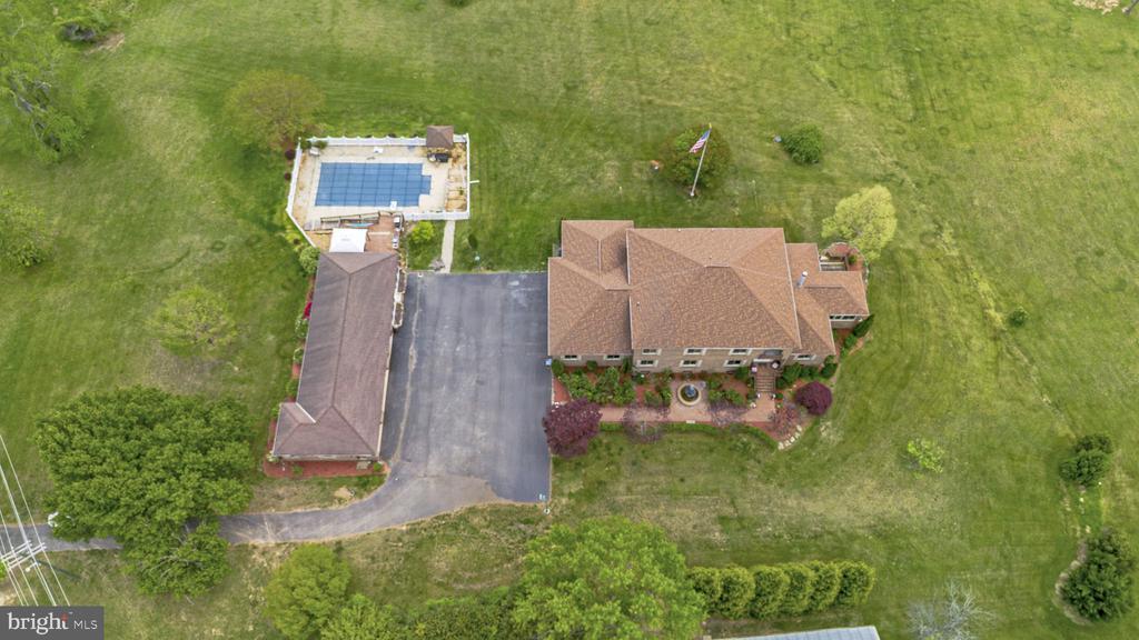 Property is located on 12.4 acres of land and consists of: • 5,700 square foot all brick home – 2 story with full basement • Detached, oversized, 4 car garage and party room • In ground pool • 2000 square foot shop Main Home: Ready to occupy. Brand new 50 year warranty roof. Dual zone HVAC with heat pump and electric aux heat upstairs and a heat pump with gas aux heat for the first floor and basement. Dual water heaters (one gas and one electric) Top floor 4 bedrooms and 3 full baths. Upstairs floors are all carpeted except for bathrooms, which are ceramic tile. All 3 full baths have granite counters. 3 Bedrooms are average size and master bedroom suite is very large with 2 walk in closets. Main floor – all 9 foot ceilings with crown molding throughout Huge kitchen with large walk-in pantry, eat in kitchen area and separate coffee/breakfast nook. Kitchen has all cherry cabinets, granite counters, and hardwood floors. All stainless finish appliances new in 2016 Huge dining room with hardwood floors Carpeted living room with gas fireplace (gas fireplace is located on inner wall and is visible from both the living room and den) Large den with wet bar and adjacent full bath. Den has hardwood floors. Large sunroom with southern exposure and lots of windows (overlooks large pond). Sunroom has ceramic floors and double sliding glass doors that open onto a 16 foot by 14 foot deck 2 story foyer with “widow’s walk” that overlooks the front yard. Foyer and main hallway are hardwood floors. Main hallway has exit with 4 steps down into attached oversize 3 car garage bath off the main hallway with granite counter and ceramic floor Huge laundry room with deep sink. Laundry room has ceramic floors and has a granite counter Additional Room for a photo studio. Room has a 10 foot ceiling, lots of windows and an access door to the garage. This could be a bedroom, albeit without a closet. Basement foyer accesses large room that could be a bedroom (no closet) but would also be an ideal in-home theater. Room is carpeted. Large full eat-in kitchen with granite counters, ceramic floor and full complement of appliances (including dishwasher) Equipment room that includes 1st Floor HVAC equipment, water heaters, deep sink, and washer/dryer hook-up. Large game room with ceramic floor and attached gym (gym is large enough for my bowflex and Jane’s treadmill) Large guest suite with huge walk in closet and carpeted floor. Full bath (shower only – no tub) and ceramic floor Main hallway that has ceramic floor and exits with 5 steps up into the garage Party room: Large party room has HVAC . Party room is all ceramic floor Full kitchen with all appliances (including dishwasher) and water heater Full bath with tub and shower. Sliding glass doors that open onto 24 foot by 30 foot deck. Deck overlooks swimming pool. Swimming pool has separate building that houses the pump and filter. the pump runs 24/7 during the swimming season, there is a timer that allows you to turn it on and off. Concrete floor, insulated metal building Hot water and half bath and full HVAC. Installed 80 gallon air compressor. Loads of electrical outlets and separate electric meter. 12 foot ceiling in main bay with hydraulic lift. Workshop: Miscellaneous: Property has 2 very deep wells. One well provides water to the main house and the other provides water to the shop and party room. Property has 2 septic tanks. One tank is for the main house and party room and the second is for the shop. 5 zone underground sprinkler system waters the front yard, all the plant beds around the house, and the vegetable garden. Dedicated garden location is enclosed in landscape block wall. House has an emergency transfer switch that allows you to connect a generator (minimum 8kw) to a receptacle in the garage for emergency