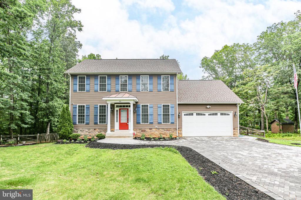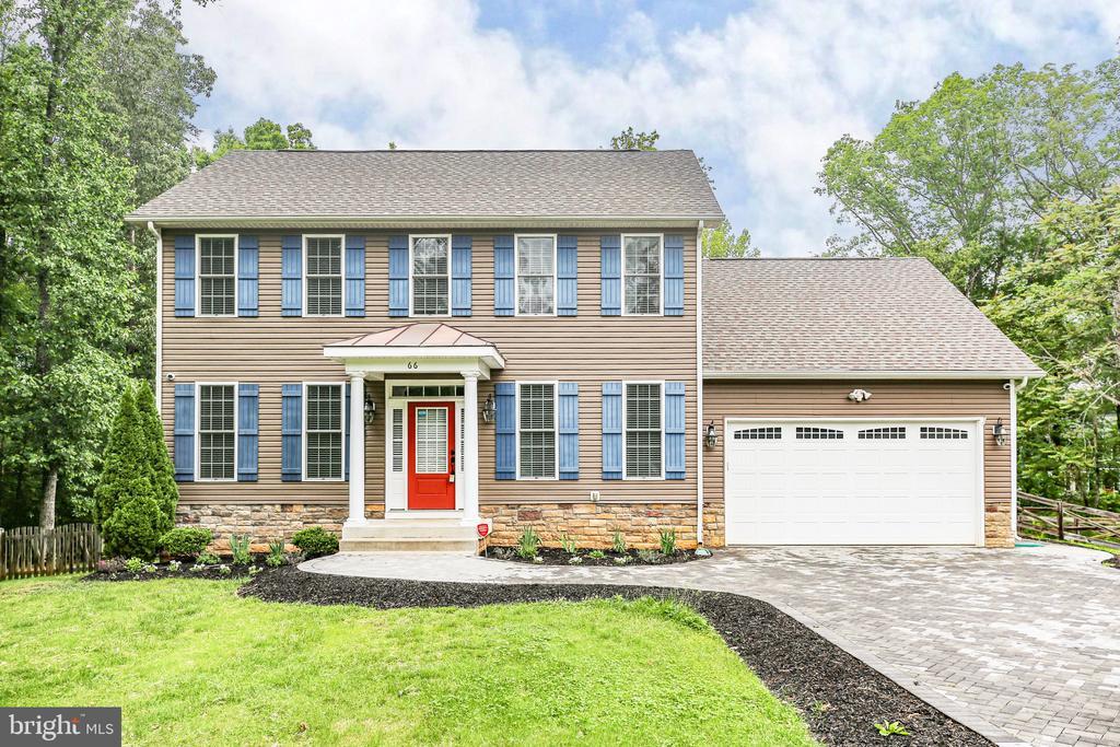 It’s here: Your serene country oasis... on a beautifully-tucked, acre-plus lot in Stafford... anchored by a modern colonial residence! Introducing 66 Marsh Road! Constructed in 2016, this modern colonial includes four bedrooms, 3.5 baths, plus a finished basement!. It sits on a no-HOA, 1.22-acre lot in western Stafford County. The residence is quietly nestled just south of Route 17 – with this location, a number of grocery, dining and shopping options are within 10 minutes; I-95 access is within 10 minutes (Route 17 exit); and the heart of Downtown Fredericksburg is just 20 minutes southeast. So much recreation is in between, with the Gauntlet Golf Club, Curtis Park and more within 10 minutes, too! Zooming in on the acreage here, note the new brick paver driveway segueing to the two-car garage – there is more than 2,500 square feet of parking space here, folks! The front yard includes a large tree, two planting beds and a flagpole for added charm. Out back, the terrain is lightly hilled with a composite deck for taking in the serene vibes. Note the half-shed/half-greenhouse for all of your storage and green thumb needs – such a cool feature! Worth noting, the residence has a whole home generator on the side of the house and is equipped with a second electrical panel, should you need a car charger. The home itself is a soft brown with blue shutters and a popping red door. Heading inside you’ll find naturally lit spaces, 9-foot ceilings, lovely molding accents and gleaming hardwood floors. Main level rooms include the office with two big windows and chair rail molding; dining area with chandelier; and the open kitchen. The kitchen includes a granite-topped breakfast bar/island with double sink, stainless steel appliances and 42-inch medium brown cabinetry. Off the kitchen is the family room with three large bay windows and a gas fireplace; a breakfast nook with a double-door to the deck; and access to the pantry, half bath, laundry room and garage. Upstairs are three carpeted bedrooms and two full baths. The primary suite includes a walk-in closet with built-ins and a routed security monitoring set-up; and ensuite bath complete with a deep tub with designer tile surrounds, glass-enclosed shower, double- vanity and linen closet. Of the two additional bedrooms upstairs, one has modern decorative shelving that conveys and the other has attic access. The final full bath (note the extensive tiling like the primary bath!), includes a tub/shower combo and single sink. Before heading back downstairs, note the large landing area with windows – there’s an area that’s primed for a reading nook here! We have a finished basement here, too, with sleek LVP flooring! It includes a large living room with a walk-up exit to the back yard – the living room may easily house a mini-kitchen, should your heart desire! Additional lower-level components include a bedroom, full bath (large walk-in shower!), utility area and unfinished storage space. Of so many things to love at 66 Marsh Road, its current owners will miss the nature and quiet... all while being close to all the Fredericksburg action. Come experience all that this home has to offer!