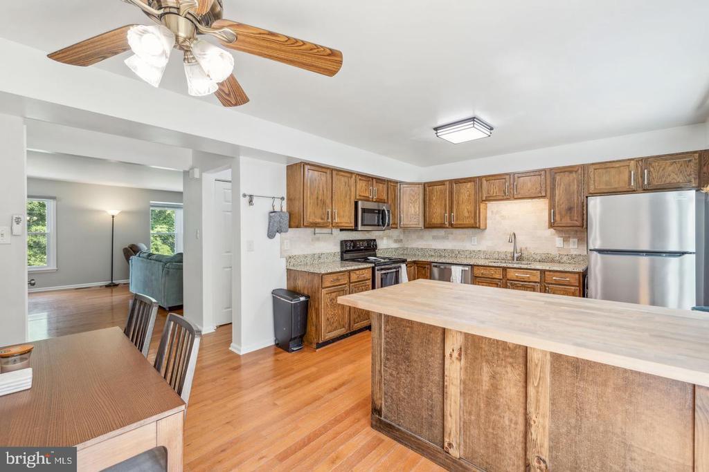 Solar panels are paid for and will convey! Welcome to the Perfect Blend of Comfort, Style, and Location Step into this beautifully maintained 3-bedroom, 2.5-bath home where thoughtful upgrades and timeless charm come together effortlessly. From the moment you arrive, the stately brick front and inviting curb appeal set the tone for what’s inside. Enjoy a finished lower level complete with a dedicated laundry area, ideal for everyday convenience. Upstairs, you'll find refinished hardwood floors throughout the second level and brand-new carpet in select areas, providing the perfect balance of elegance and comfort. The kitchen is a true showstopper—featuring granite countertops, refreshed cabinetry, and a newly installed butcher block peninsula that adds warmth and functionality to the heart of the home. Step outside to a fully fenced backyard, offering a private oasis for relaxing, entertaining, or playing. Eco-conscious living is made easy with recently installed solar panels, delivering both energy efficiency and long-term savings. Ideally located just 2 miles from I-95 and close to shopping, dining, and everyday essentials, this home offers unmatched convenience for commuters and families alike. Don't miss this incredible opportunity to own a home that truly has it all—schedule your private showing today!
