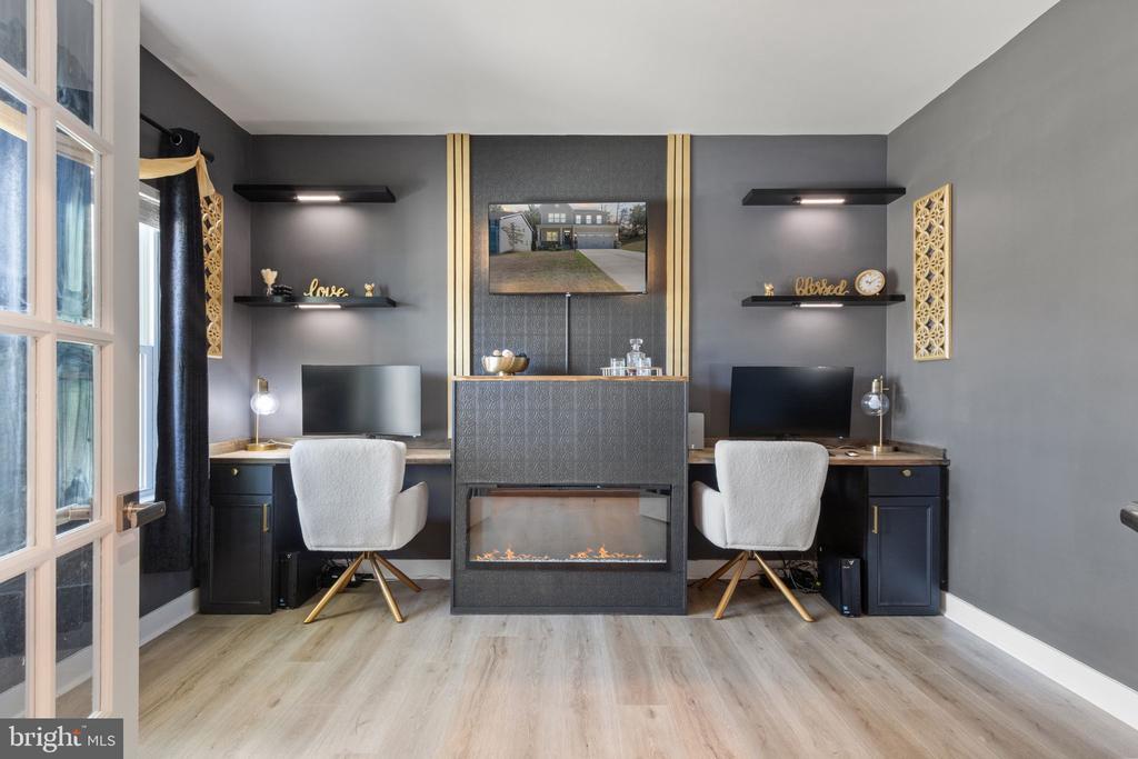 Modern comfort and timeless style- you’ll love the bright, open feel of this LIKE NEW home in Big Spring Estates. With 4 bedrooms and 3.5 bathrooms you’ll have all the space you’ve dreamed of. Built in 2022 and located just minutes from major commuter routes, shopping, dining, and the VRE, 483 Vandegrift Road offers the space, style, and convenience you're looking for. A charming covered front porch welcomes you inside, where luxury vinyl plank flooring runs throughout the main level. The layout includes a formal living room and separate dining room, while the home office features an electric fireplace for added warmth and character. The kitchen is both beautiful & functional, with crisp white cabinetry, sleek quartz countertops, stainless steel appliances, a large island with seating for four, a pantry, and casual dining space. It flows into the bright and open family room with a floor-to-ceiling stone electric fireplace—perfect for cozy evenings or sophisticated entertaining. Upstairs, all four bedrooms are carpeted and generously sized. The primary suite includes a walk-in closet and a spacious spa-like en suite bath with a soaking tub, tiled walk-in shower, and dual sinks. The additional bedrooms share a full hall bath with a tub. The finished lower level adds a huge rec room, plus another full bathroom—ideal for guests, game nights, or relaxing movie marathons. Outside, enjoy the covered composite deck with a ceiling fan—a great space to unwind while overlooking the backyard. All of this in a peaceful community less than 10 minutes from the Brooke VRE Station, 2 minutes to Route 1, and just 5 minutes to I-95 and Embrey Mill Towne Center. This modern home blends thoughtful design with everyday comfort in a location that makes life easy. Schedule a tour today!