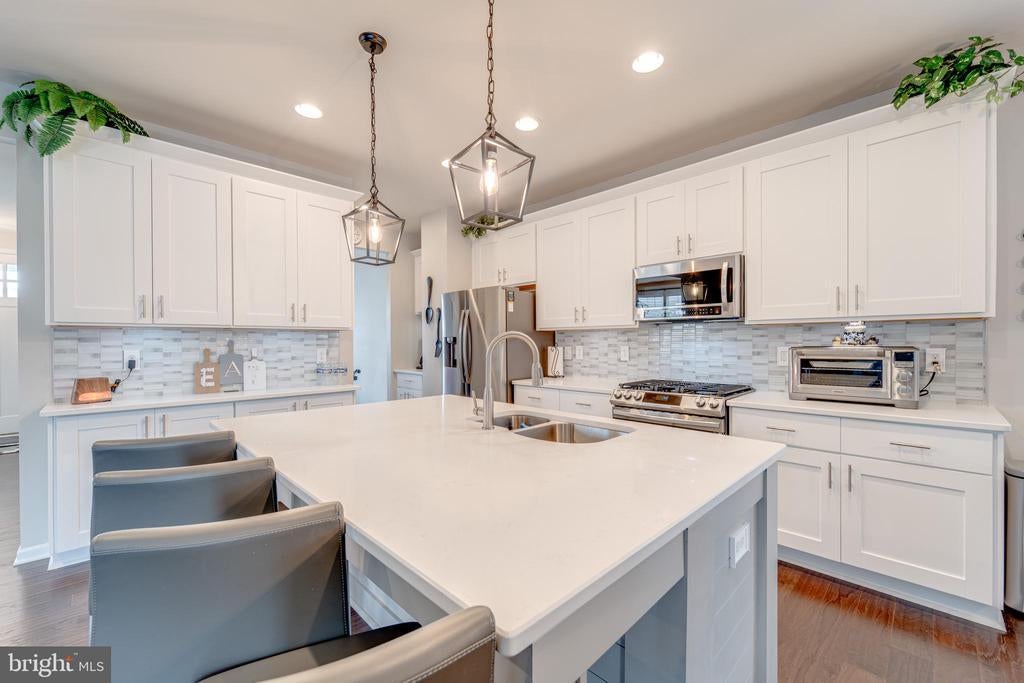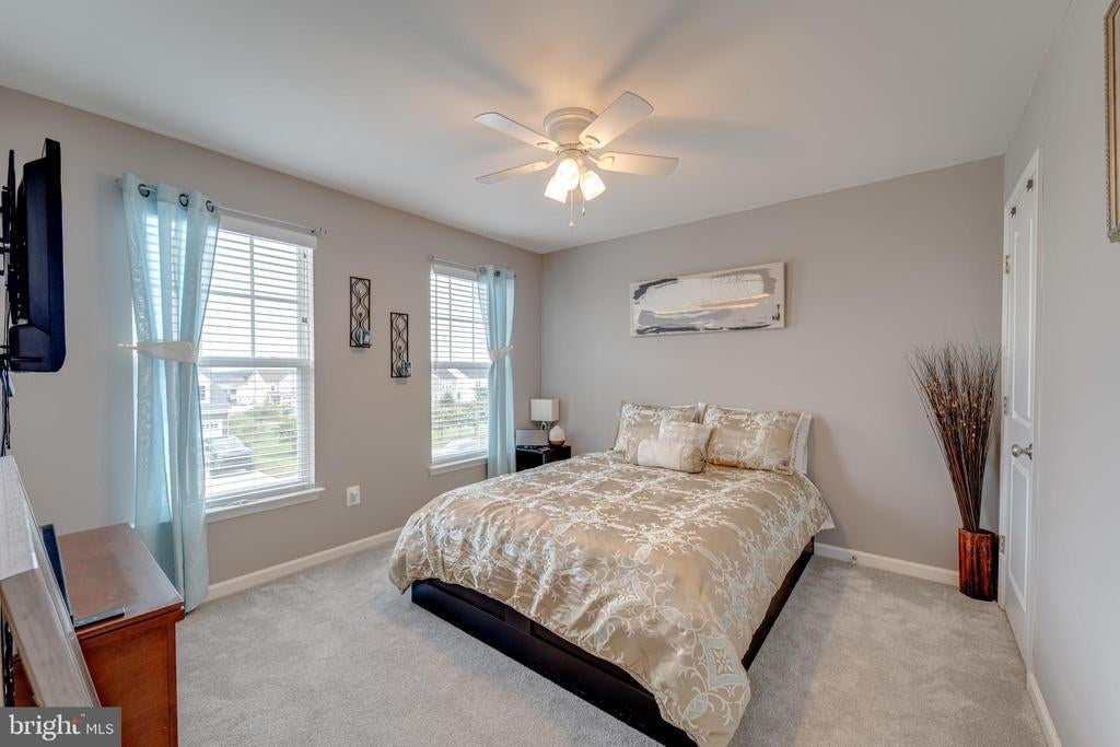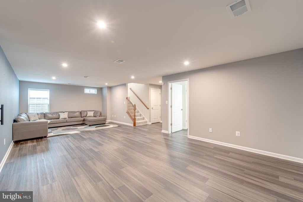 Welcome to Embrey Mill, a highly sought-after community offering resort-style amenities right at your doorstep. This home has a VA assumable loan available to qualified veterans, featuring a highly desirable 2.75% interest rate! Solar panels are paid off and pay virtually nothing on electric bill!! Immaculate 4-bedroom, 3.5-bath home is move-in ready and filled with thoughtful upgrades throughout. Step inside to find beautiful engineered hardwood flooring flowing across the open-concept main level, which includes a spacious dining area and a versatile flex space—ideal for a home office. The gourmet kitchen is a chef’s dream, featuring newer shaker-style cabinetry, quartz countertops, an extended island, and a full suite of Samsung smart appliances—including a range with built-in air fryer functionality. The fully finished basement offers luxury vinyl plank flooring, a large recreation room, a separate media room, a full bathroom, and plenty of storage, including a bonus space tucked behind a stylish sliding barn door. Upstairs, three generously sized secondary bedrooms accompany a luxurious primary suite that serves as your private retreat. The primary bedroom features custom closet shelving and an en suite bath with dual vanities and a walk-in shower. A convenient second-floor laundry room adds to the home's functionality. Additional highlights include a well-maintained yard with a newer PVC privacy fence and solar panels that dramatically reduce your electric bills. The home is also equipped with a Vivint smart alarm system, which includes a Smart Hub panel, rear outdoor camera, doorbell camera, smart door lock, window sensors on the main and basement levels, and two rear door sensors—providing peace of mind and modern convenience. Don’t miss your opportunity to own this beautiful and energy-efficient home in one of Stafford’s most desirable neighborhoods!
