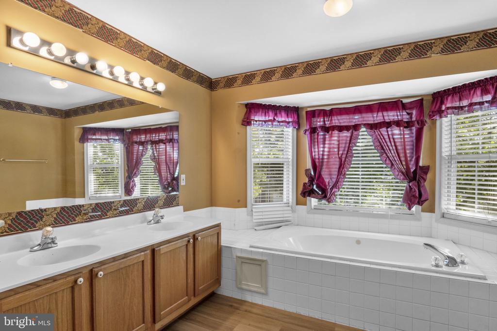 Come add your touch to this spacious, beautiful light filled home! Situated on a professionally landscaped corner lot, in the well established Park Ridge community. It boasts perennials and mature trees, as well as a 6 zone in ground sprinkler system. The home has everything it needs to make a wonderful life in a great community. A large kitchen with a bright breakfast nook and glass doors to the deck, where you can enjoy your morning coffee and the outdoors. The spacious family room has a marble fireplace, and is open to the kitchen. The master has vaulted ceiling, his and her walk in closets, a spacious master bathroom with a large jacuzzi tub and separate shower, with a double vanity. The flooring in the kitchen, master bathroom and upstairs full bathroom have all just been refreshed with luxury vinyl plank flooring. The carpet in the home has just been professionally cleaned. The walkout basement is fully finished with the convenience of an additional full bathroom, and a generous amount of storage throughout the home. This home is close to schools, and is also convenient to the military bases. Its location is less than 5 miles from the commuter lot, which makes a DC commute much easier. Come join this thriving, tight knit community and make it home.