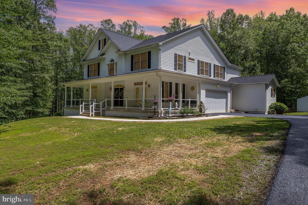 Your private & peaceful retreat nestled on 11.4 acres of pristine land is waiting for you! This spacious and updated home offers the perfect blend of modern comfort and timeless country charm. Step onto the expansive, country-style front porch, ideal for enjoying your morning coffee with serene views. Inside, the open entryway welcomes you with a grand staircase and gleaming hardwood floors throughout the main level. The heart of the home—your updated kitchen—features brand-new quartz countertops, custom tile backsplash, and an eat-in dining nook surrounded by large, sun-drenched windows. Unwind in the cozy living room with a gas fireplace, arched windows, and elegant columns, or entertain guests across the formal living and dining rooms—each with atrium doors that open to the front or back porch. The main level also includes a bedroom with full bath, perfect for guests or multigenerational living, plus a dedicated home office. Enjoy summer gatherings on the 3-tier deck overlooking your fenced-in backyard. Upstairs, you'll find 3 generously sized bedrooms plus 2 other rooms with brand-new carpet, a spacious loft, and a luxurious primary suite with a fireplace, spa-like bathroom, and dual walk-in closets. The fully finished walk-out basement offers even more versatility, complete with a full bath, flexible living areas, and ample storage. Car enthusiasts and hobbyists will love the 48’x40’ detached garage/workshop with a car lift, plus a 2-car attached garage. A new roof (2024) adds peace of mind. Just under an hour from Washington, D.C. Don’t miss your chance to own this haven! Don’t miss your chance to own this haven!