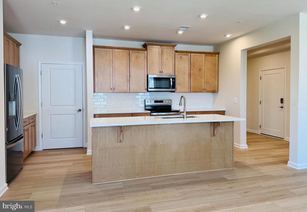 Step into refined, single-level living with this exceptional condo in the sought-after Embrey Mill community. Located in a private, secure building with smart video intercom access and individual unit entries, this home offers the perfect blend of comfort, style, and modern convenience. Enjoy the ease of private garages, driveways, and elevator access, along with well-lit storage spaces. Inside, a grand foyer with tray ceiling leads to an open-concept living area featuring a sun-filled family room, high ceilings, and a private balcony. The gourmet kitchen is a chef’s dream, complete with Whirlpool stainless steel appliances, granite countertops, designer tile backsplash, oversized island, walk-in pantry, and smart pull-out shelving. The luxurious primary suite includes a massive walk-in closet and private balcony with hose bib, ideal for potted plants or personal gardening. The spa-inspired primary bath features a double vanity, ceramic tile, and a frameless glass shower. A spacious secondary bedroom, pocket office, large laundry room, and luxury vinyl plank flooring throughout complete this thoughtfully designed home. Enjoy peace of mind with fire suppression systems, and experience seamless living with integrated DreeSmart technology. Embrey Mill offers resort-style amenities, including a clubhouse, fitness center, yoga studio, pickleball courts, fire pits, outdoor games, and an on-site activities director—all just minutes from I-95, Route 1, top shopping, dining, and the new Publix. This is elevated condo living at its finest.