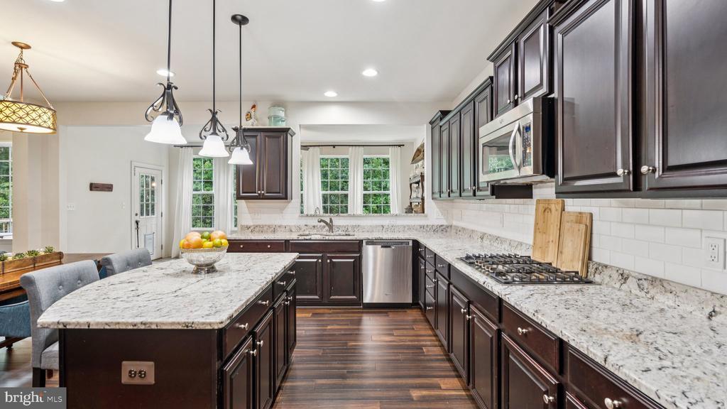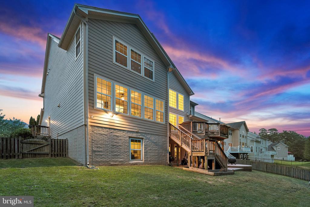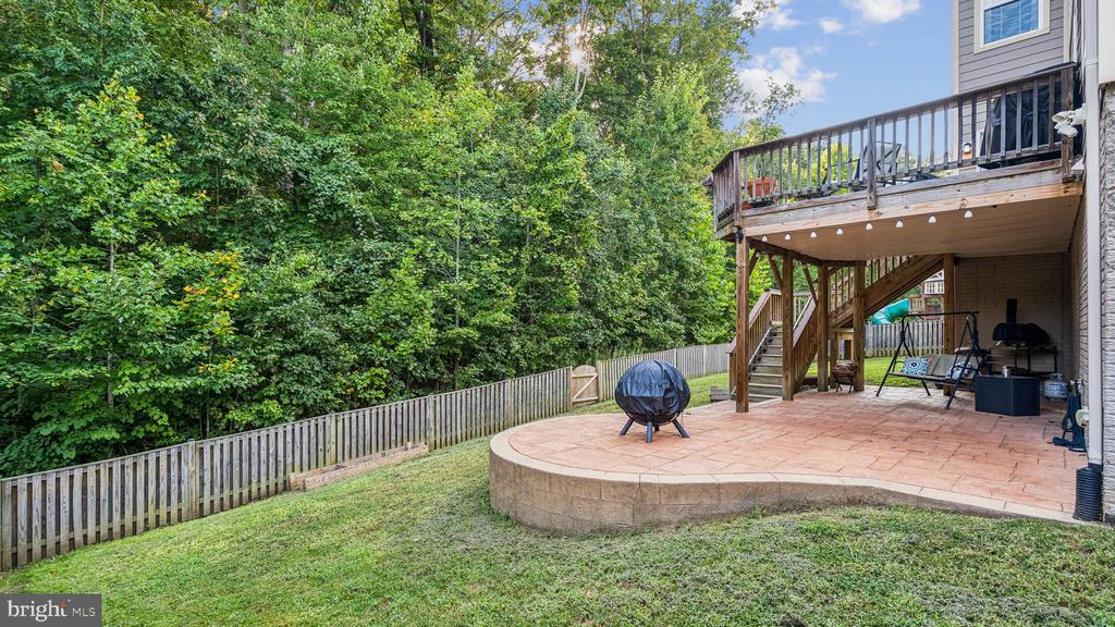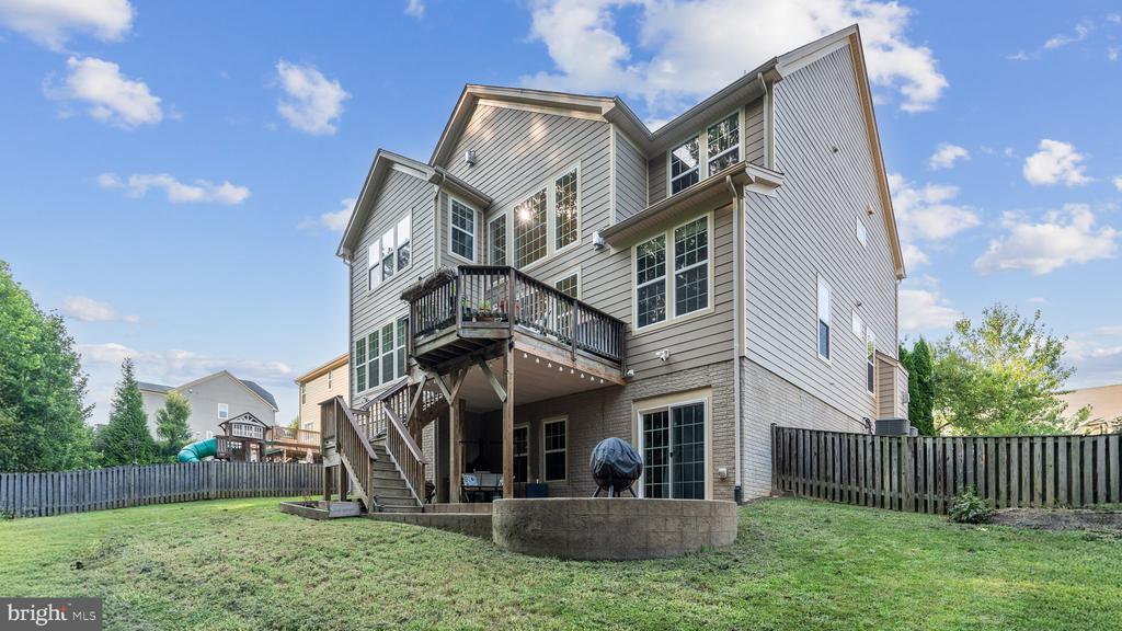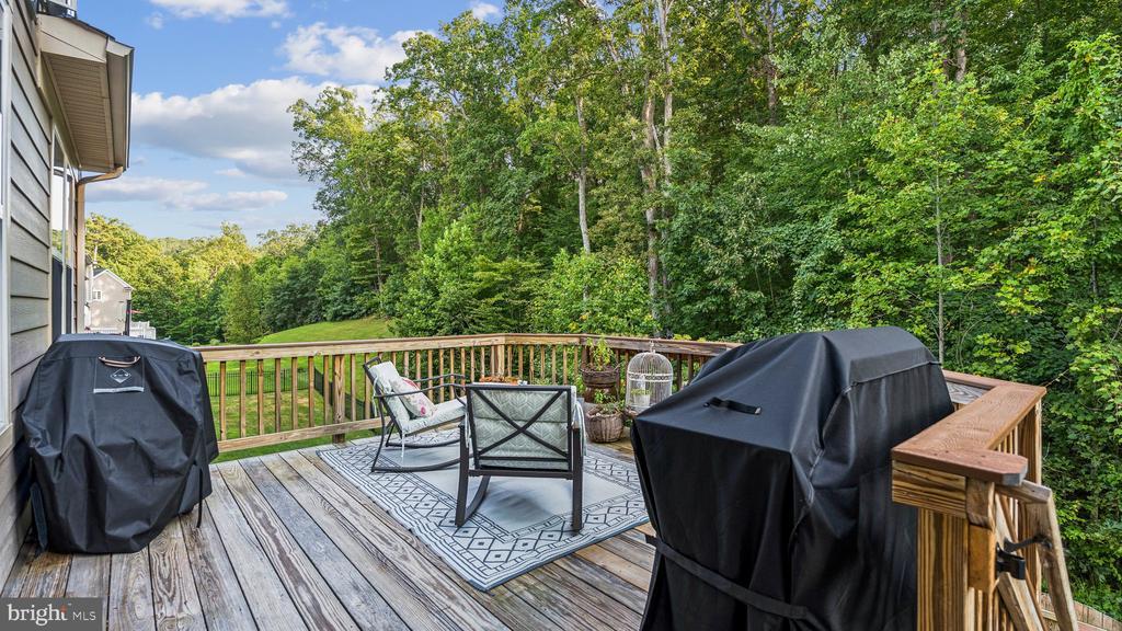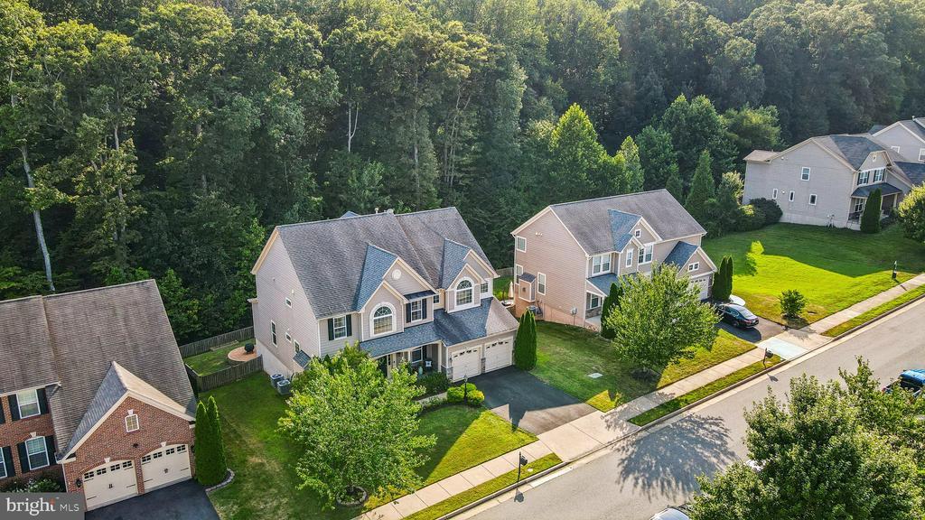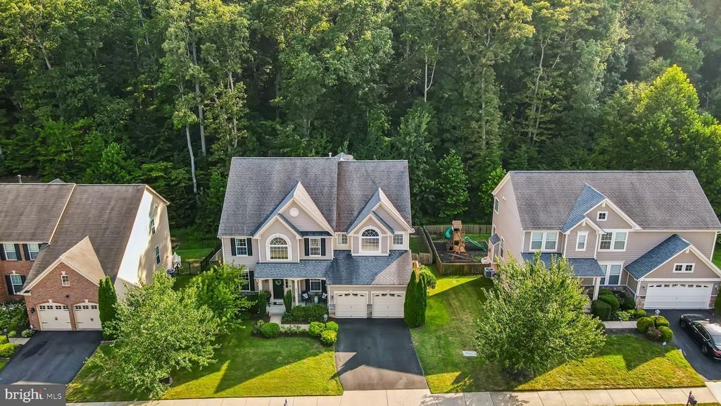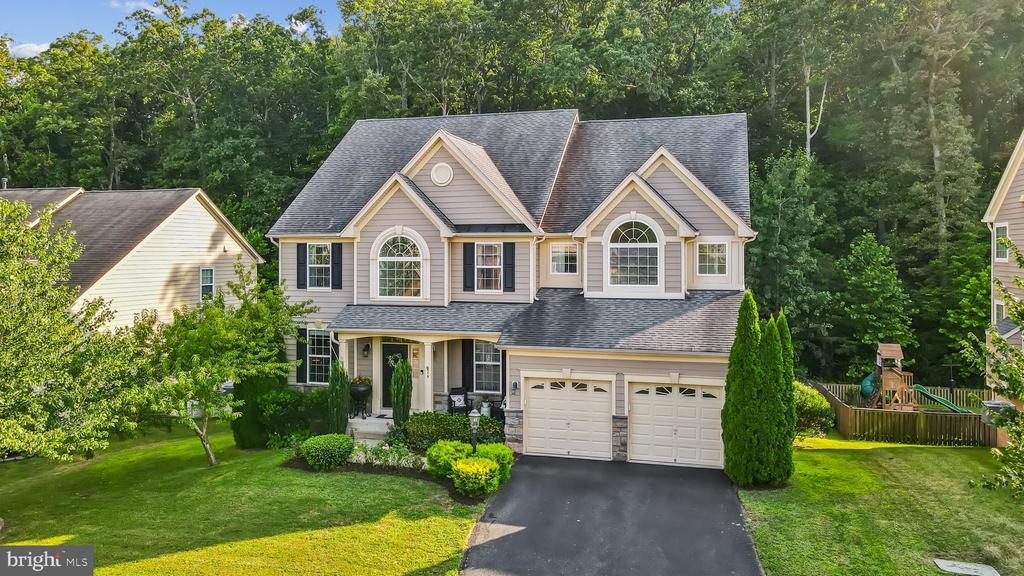 Elegant 6-Bedroom Colonial with almost 6000 Finished Sq Ft on a Private Wooded Lot! Welcome to this absolutely stunning colonial home, beautifully situated on a premium lot that backs to mature trees offering a serene and private setting. With striking curb appeal, this home features Hardy Plank siding and stone accents, a charming front porch perfect for relaxing, and a 2-car garage. The fully fenced backyard includes a stamped concrete patio and a spacious deck—ideal for outdoor entertaining or quiet evenings surrounded by nature. As you step inside, you are greeted by beautiful hardwood flooring that flows throughout the entire main level. A spacious foyer with detailed crown molding and shadow boxing opens to a formal living area, full of natural light and upgraded lighting fixtures. Just off the foyer, French doors lead to a private ensuite/in-law suite—a rare find on the main level—complete with a living space, cozy fireplace and mantel, full bedroom and bath, and ample closet space. This is perfect for multi-generational living, a home office, or guest quarters. The main living area features a bright and open family room with a gas fireplace, mantel, and floor-to-ceiling windows that frame the tranquil wooded views. The gourmet kitchen is a chef’s dream with granite countertops, stainless steel appliances, a gas cooktop, double wall ovens, built-in microwave, pendant and recessed lighting, a dedicated coffee bar area, and a large center island. Off the kitchen, the butler’s pantry offers additional cabinetry and storage, and leads to a walk-in pantry with custom built-ins, a mudroom/catch-all area, garage access, and an additional door to the side yard. A sun-drenched morning room off the kitchen is ideal for casual dining, reading, or a peaceful retreat, and leads out to the deck that overlooks the private, fully fenced backyard. Upstairs, retreat to the luxurious primary suite, complete with vaulted ceilings, a spacious sitting room with its own fireplace, and large walk-in closets. The spa-like primary bath features vaulted ceilings, a large soaking tub beneath a Palladian window, an oversized walk-in shower with built-in bench and custom tile, dual vanities with abundant counter space and cabinetry, and ceramic tile flooring. Three additional generously sized bedrooms are located on the upper level. Bedroom 2 features its own full ensuite bath, while Bedrooms 3 and 4 share a full hall bath with a tub/shower combo and ceramic tile. The upper-level laundry room is large, bright, and centrally located—offering both convenience and function. The fully finished walk-out basement offers even more living space, with a large rec room perfect for a media or play area, a designated theater room, a gym/game space, and a spacious 6th bedroom. There is also a half bath on this level and a large unfinished storage room. Step outside from the lower level onto the stamped concrete patio, and enjoy the quiet of the private backyard—ideal for relaxing, playing, or entertaining. Additional Features Include: Three gas fireplaces Custom crown molding and trim work throughout Stylish pendant and recessed lighting Ceiling fans in multiple rooms Fresh paint and neutral tones throughout Ample storage across all three levels Thoughtful layout for everyday living and entertaining Prime location with easy access to I-95, Route 1, Quantico, commuter lots, shopping, dining, schools, and more This beautiful home combines classic colonial charm with modern upgrades and exceptional space—inside and out. Schedule your private tour today—this one has it all!