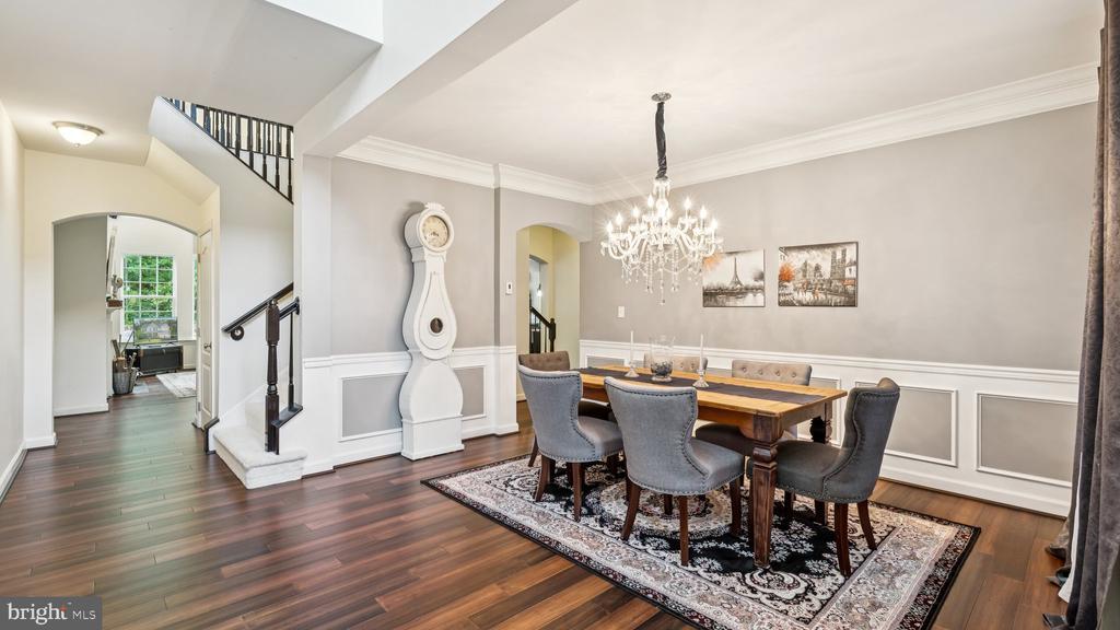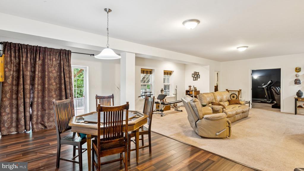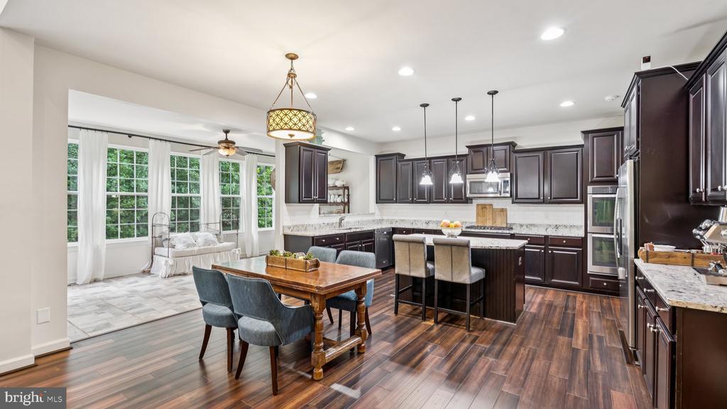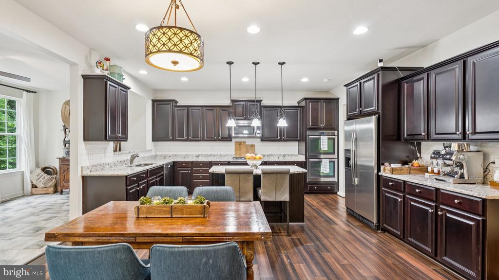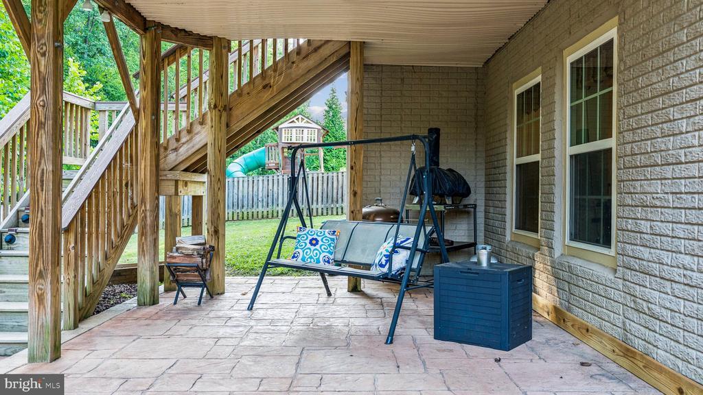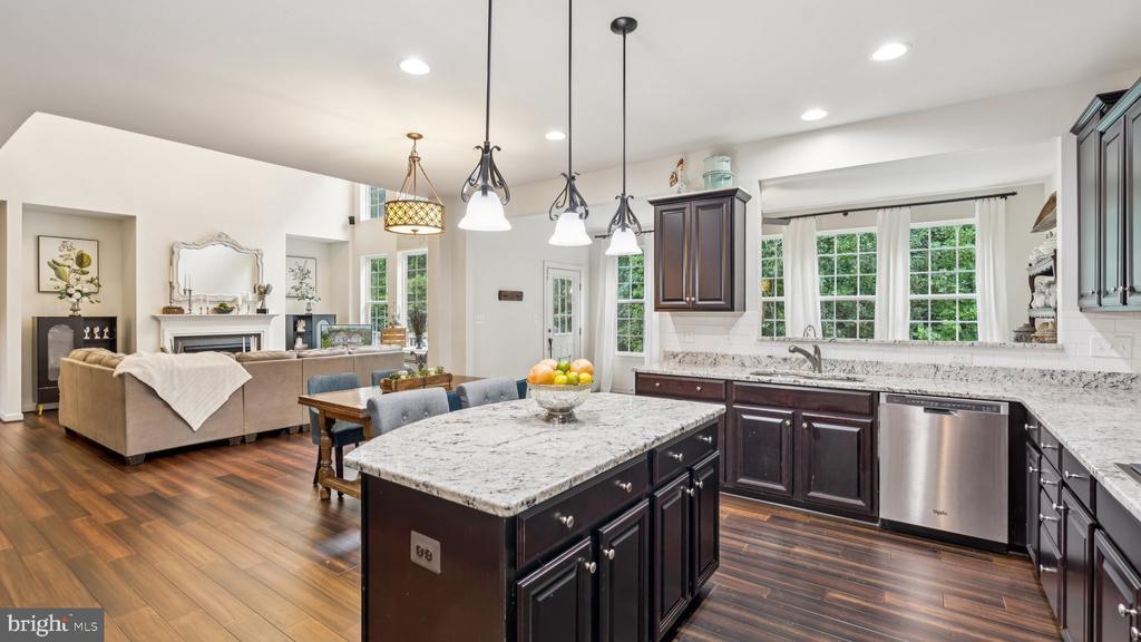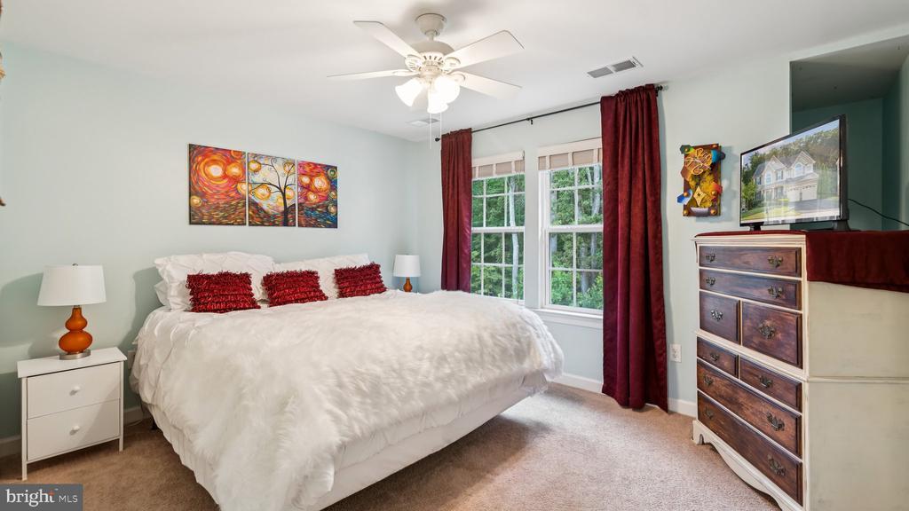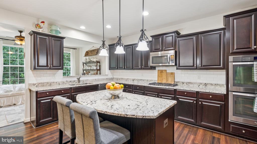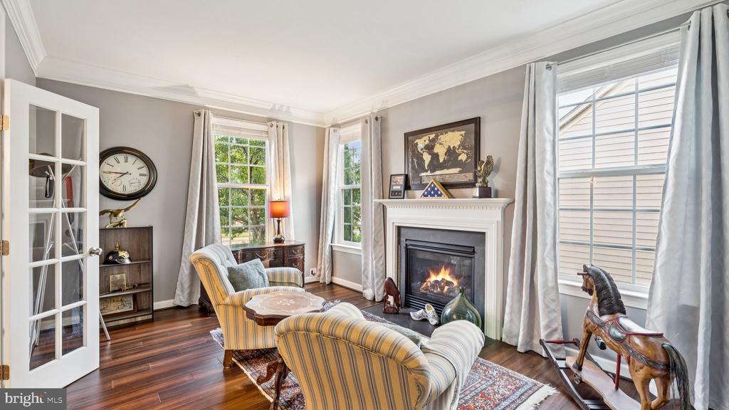 Elegant 6-Bedroom Colonial with almost 6000 Finished Sq Ft on a Private Wooded Lot! Welcome to this absolutely stunning colonial home, beautifully situated on a premium lot that backs to mature trees offering a serene and private setting. With striking curb appeal, this home features Hardy Plank siding and stone accents, a charming front porch perfect for relaxing, and a 2-car garage. The fully fenced backyard includes a stamped concrete patio and a spacious deck—ideal for outdoor entertaining or quiet evenings surrounded by nature. As you step inside, you are greeted by beautiful hardwood flooring that flows throughout the entire main level. A spacious foyer with detailed crown molding and shadow boxing opens to a formal living area, full of natural light and upgraded lighting fixtures. Just off the foyer, French doors lead to a private ensuite/in-law suite—a rare find on the main level—complete with a living space, cozy fireplace and mantel, full bedroom and bath, and ample closet space. This is perfect for multi-generational living, a home office, or guest quarters. The main living area features a bright and open family room with a gas fireplace, mantel, and floor-to-ceiling windows that frame the tranquil wooded views. The gourmet kitchen is a chef’s dream with granite countertops, stainless steel appliances, a gas cooktop, double wall ovens, built-in microwave, pendant and recessed lighting, a dedicated coffee bar area, and a large center island. Off the kitchen, the butler’s pantry offers additional cabinetry and storage, and leads to a walk-in pantry with custom built-ins, a mudroom/catch-all area, garage access, and an additional door to the side yard. A sun-drenched morning room off the kitchen is ideal for casual dining, reading, or a peaceful retreat, and leads out to the deck that overlooks the private, fully fenced backyard. Upstairs, retreat to the luxurious primary suite, complete with vaulted ceilings, a spacious sitting room with its own fireplace, and large walk-in closets. The spa-like primary bath features vaulted ceilings, a large soaking tub beneath a Palladian window, an oversized walk-in shower with built-in bench and custom tile, dual vanities with abundant counter space and cabinetry, and ceramic tile flooring. Three additional generously sized bedrooms are located on the upper level. Bedroom 2 features its own full ensuite bath, while Bedrooms 3 and 4 share a full hall bath with a tub/shower combo and ceramic tile. The upper-level laundry room is large, bright, and centrally located—offering both convenience and function. The fully finished walk-out basement offers even more living space, with a large rec room perfect for a media or play area, a designated theater room, a gym/game space, and a spacious 6th bedroom. There is also a half bath on this level and a large unfinished storage room. Step outside from the lower level onto the stamped concrete patio, and enjoy the quiet of the private backyard—ideal for relaxing, playing, or entertaining. Additional Features Include: Three gas fireplaces Custom crown molding and trim work throughout Stylish pendant and recessed lighting Ceiling fans in multiple rooms Fresh paint and neutral tones throughout Ample storage across all three levels Thoughtful layout for everyday living and entertaining Prime location with easy access to I-95, Route 1, Quantico, commuter lots, shopping, dining, schools, and more This beautiful home combines classic colonial charm with modern upgrades and exceptional space—inside and out. Schedule your private tour today—this one has it all!