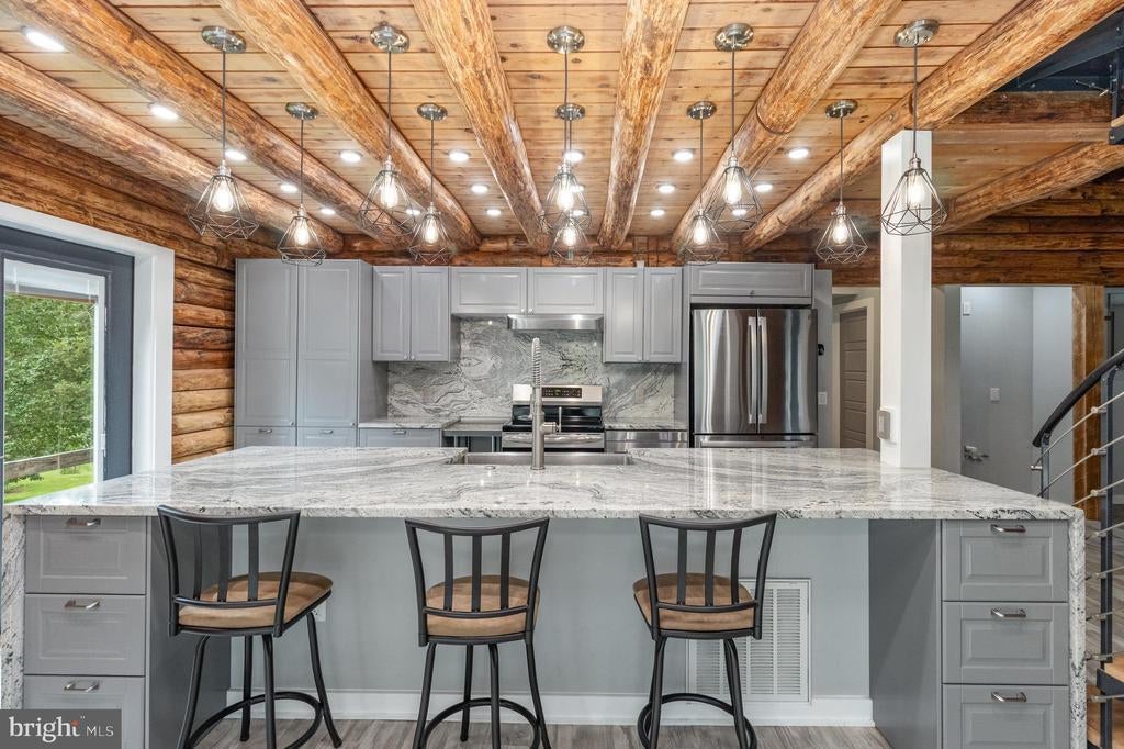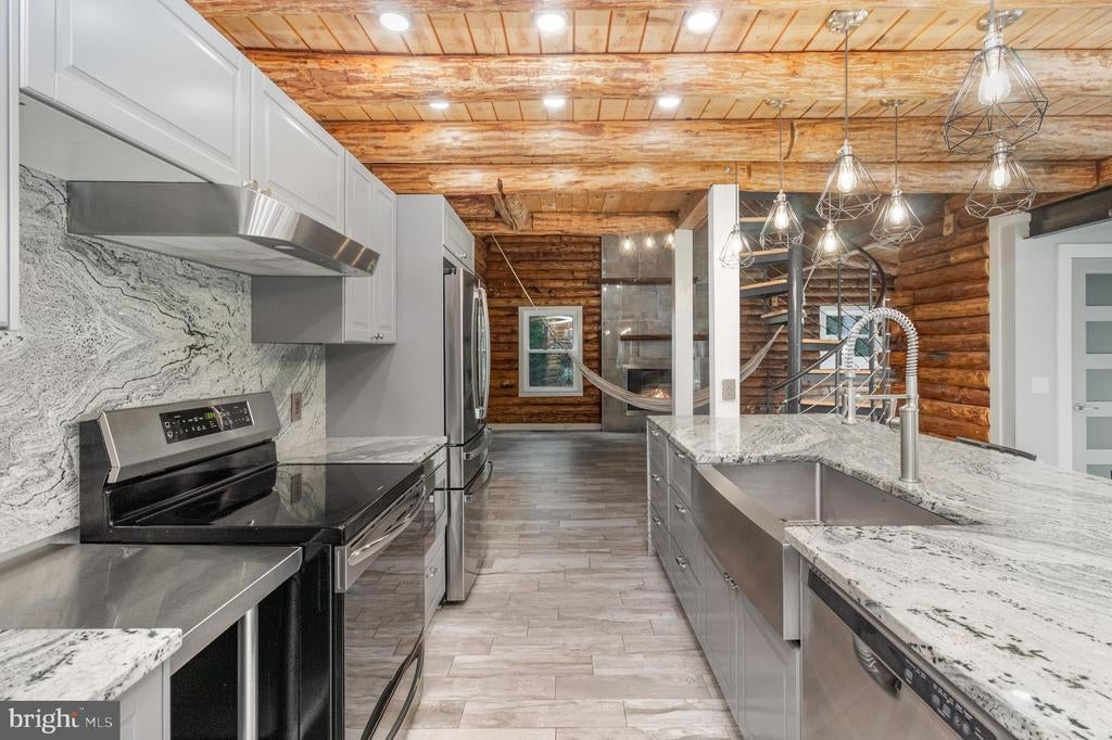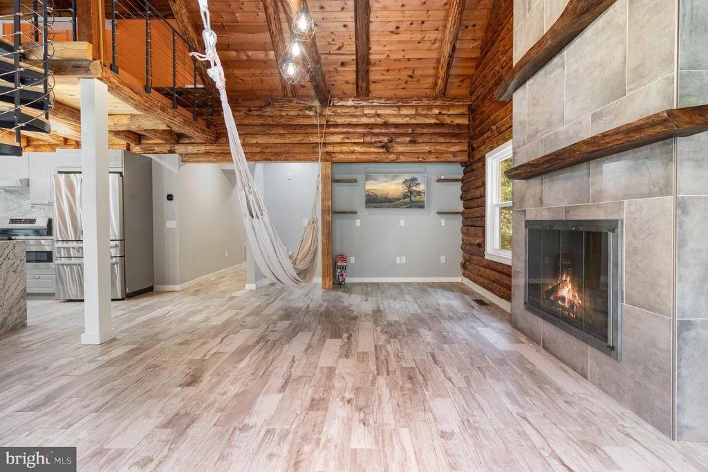 Escape to your private haven in this renovated, high-end cabin nestled on 3 serene acres along a quiet road in sought-after Fredericksburg (22406). A rare blend of rustic charm and modern luxury, this 4-bedroom, 3-bathroom masterpiece is the perfect full-time residence with rentable apartment or in law suite. With very close proximity to i95, shopping and downtown Fredericksburg, this is the perfect place to call home. Step inside to discover porcelain floors flowing throughout a thoughtfully designed open floor plan. The gourmet kitchen features gleaming granite countertops, a waterfall island, premium slow close cabinetry, stainless steel appliances, farm sink, built in microwave, induction oven and granite backsplash. And for extra bonus points a swinging hammock gently rocks you in front of the wood burning fireplace for the ultimate lap of luxury and comfort. A spiral staircase leads you up to a spacious loft overlooking the main living area, offering a cozy retreat, or extra bedroom. Down the hall, you can find a dedicated laundry room, office space and two more bedrooms, and bathrooms. The floors are heated throughout the hall and bedrooms for a little extra warmth on cold days. The primary bedroom features floor to ceiling windows overlooking the woods behind the house, where you sit above the tree line making you feel like you're in a fancy tree house. The primary bedroom also features, a huge walk in closet with built in storage compartments for all of your belongings, including special jewelry drawers. In the primary bathroom, you can find his and hers sinks with granite backsplash, a large soaking tub, and a DTV Plus 12 head walk in shower monitored by control panel. Unwind outdoors with a book or a glass of wine on one of two decks surrounded by towering trees and the sounds of nature. With 3 private acres, there’s space to explore, entertain, or simply enjoy the peace and privacy that’s increasingly hard to find. A large portion of cleared yard is fenced in for your favorite four legged friend. This home also sits on a dead end road, meaning it's quiet year round! And there is a creek in the back that you can see more as winter approaches. Follow the wooden path around to the back of the house with dedicated night time lighting, to find the in law suite or rentable apartment. This apartment has its own dedicated entrance, featuring a large exterior deck, and a screened in porch. Inside you can find an open concept living and kitchen area with butcher block countertops. A larger bedroom with dedicated laundry and full bathroom with walk in shower finish off the space. This home features newer roof, HVAC, water heaters, washer/dryers and gutters. So it really is move in ready!! This unique property is a rare opportunity to own a turnkey luxury cabin with timeless character — just minutes from downtown Fredericksburg, yet worlds away from the hustle.